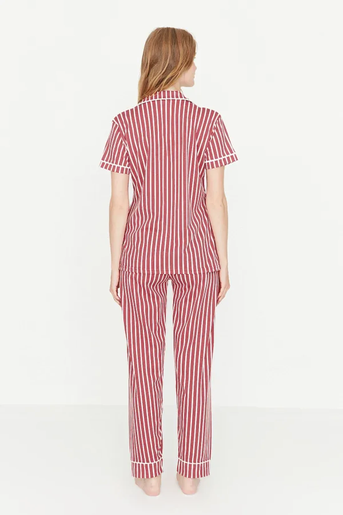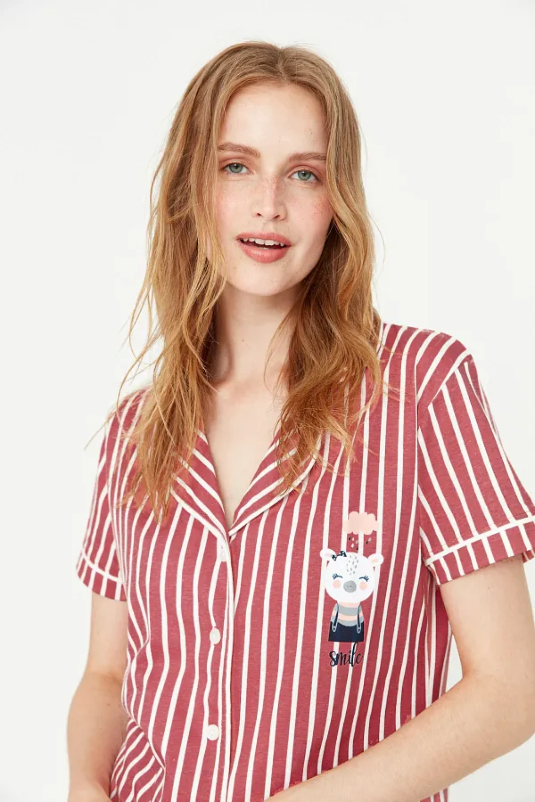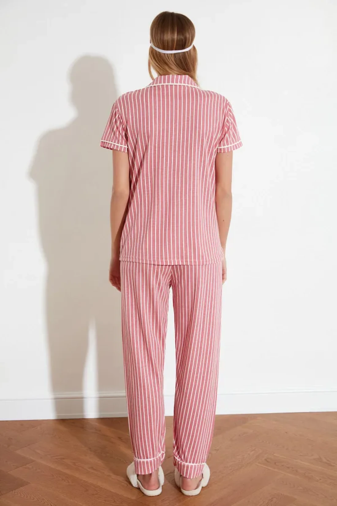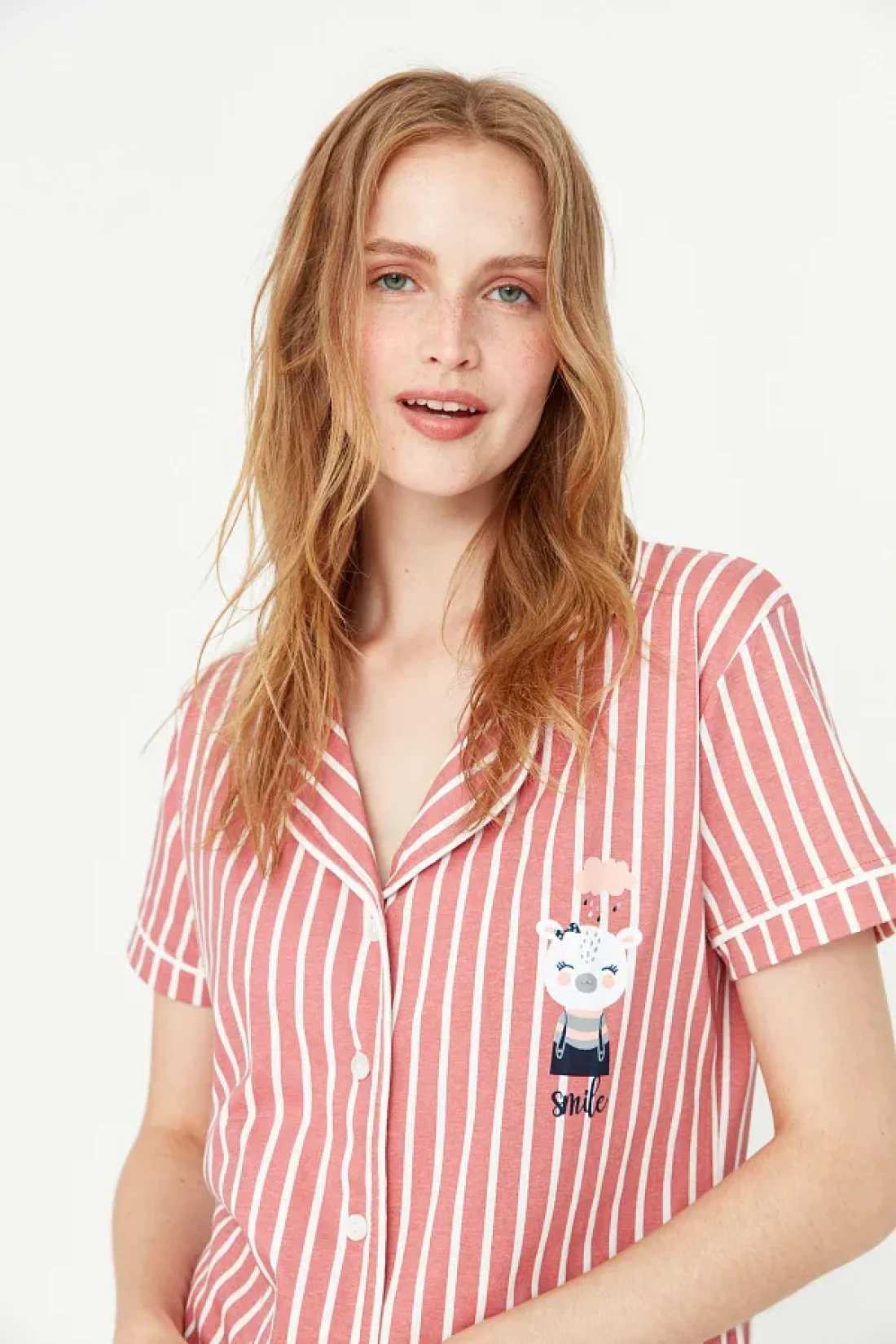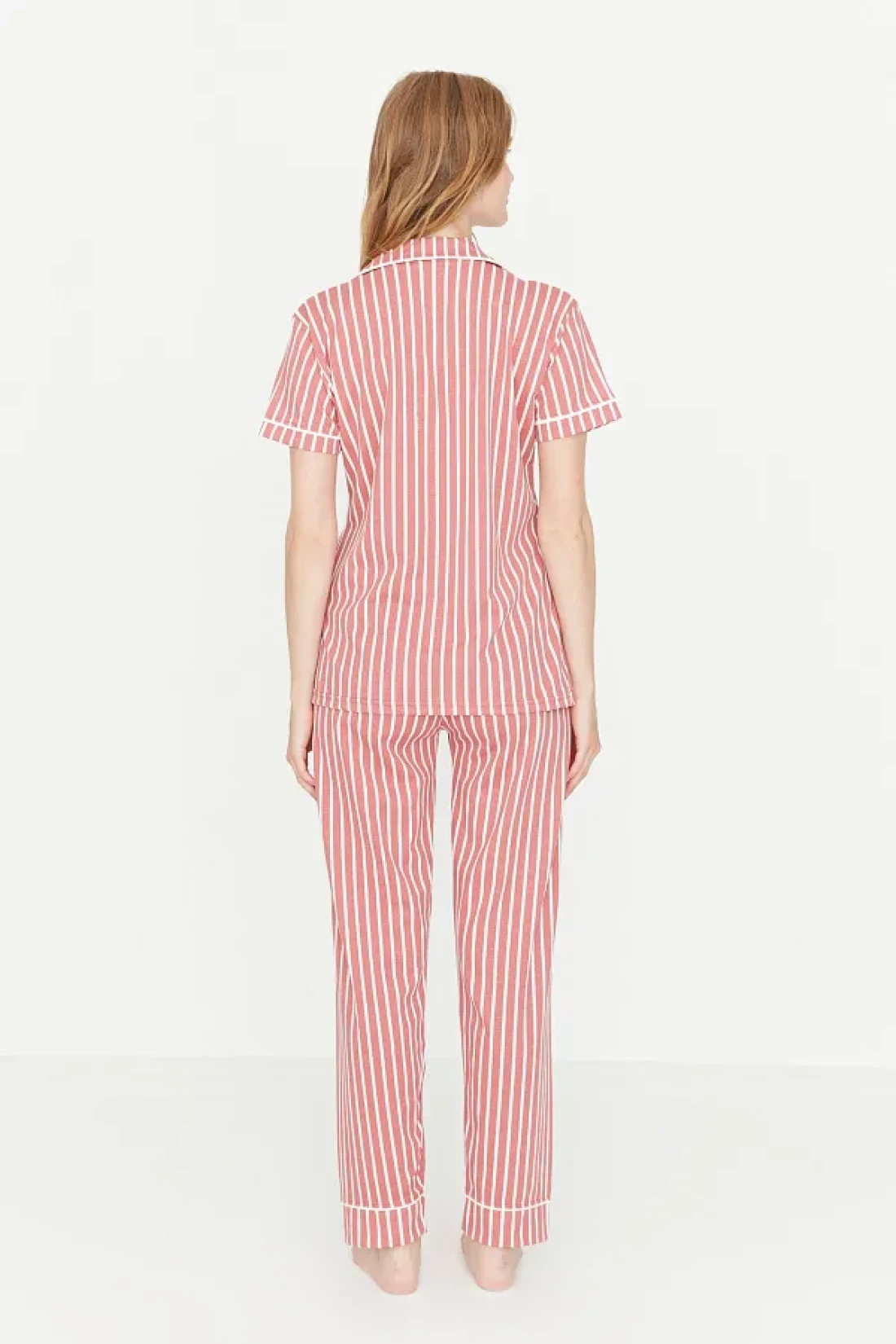 Collection Animal Print Pink Striped Knitted Pajamas Set - Shirt and Pants THMSS21PT0878