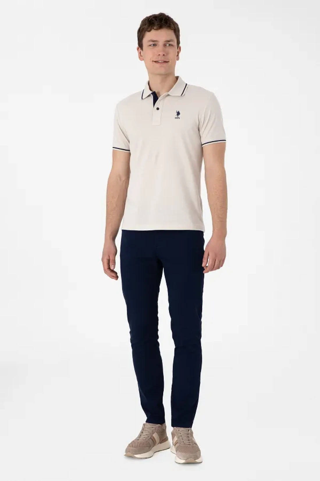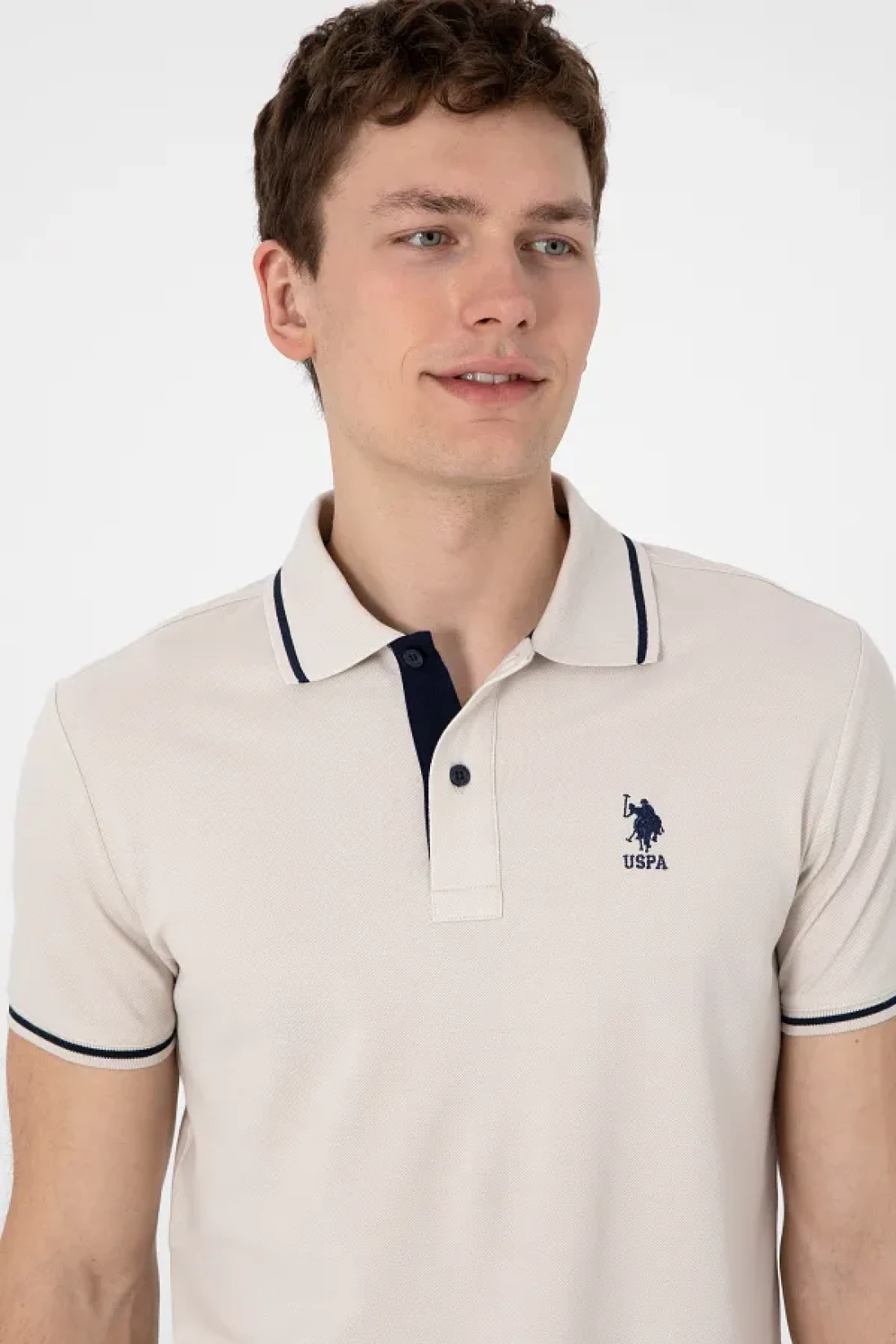 U.S. Polo Assn. Men's Slim Fit Polo Neck Stone Basic T-Shirt 50305980-Vr049