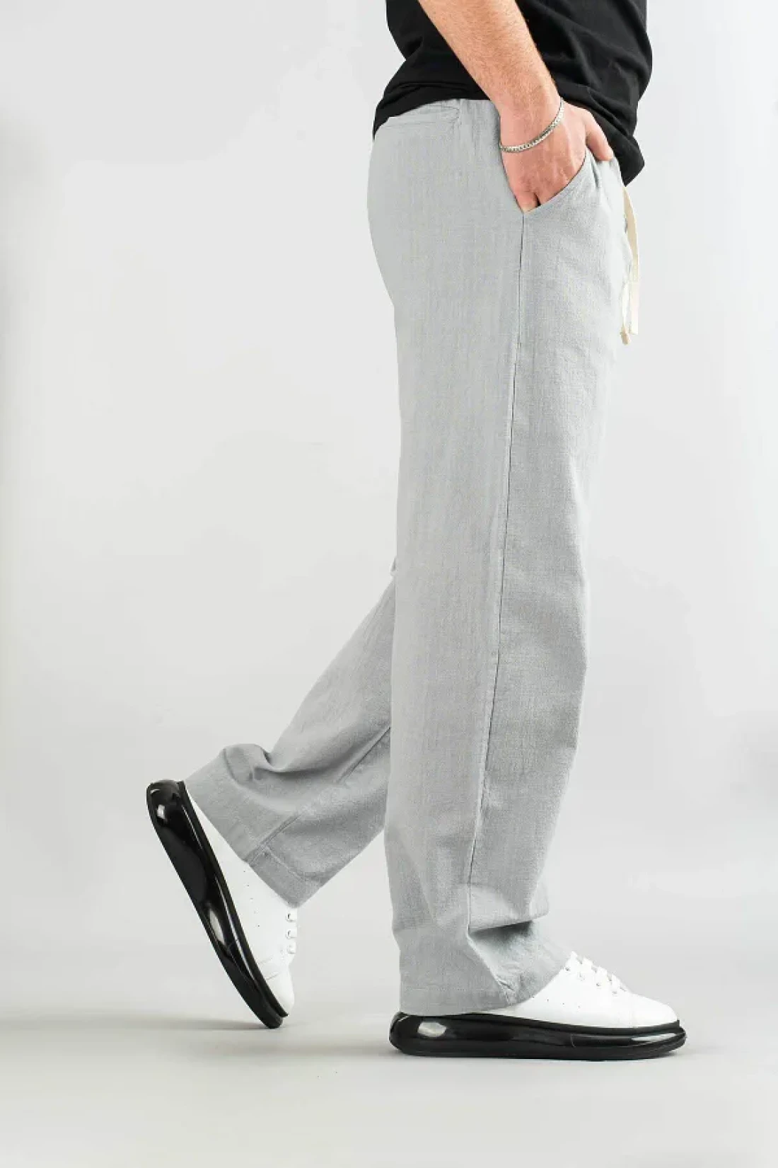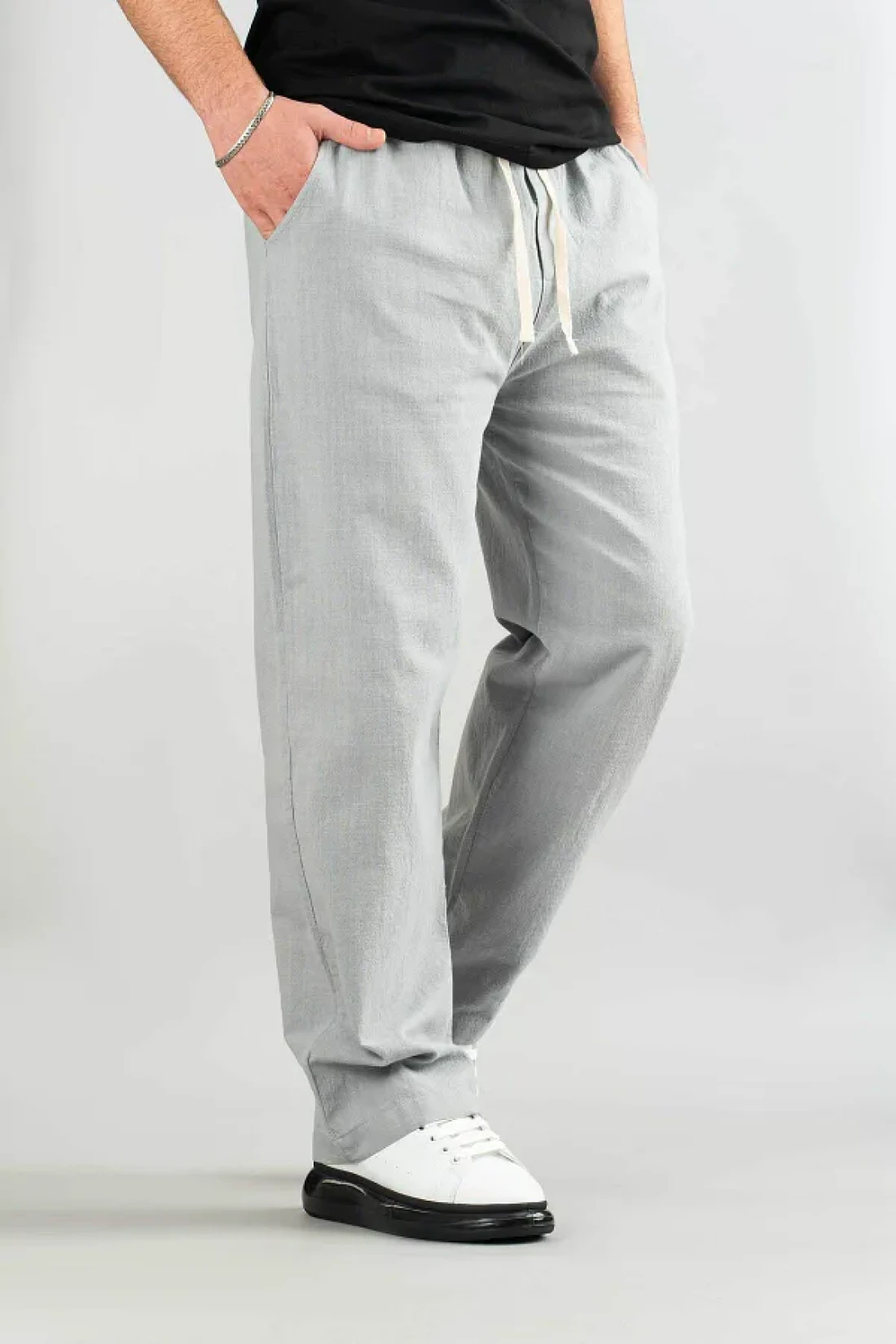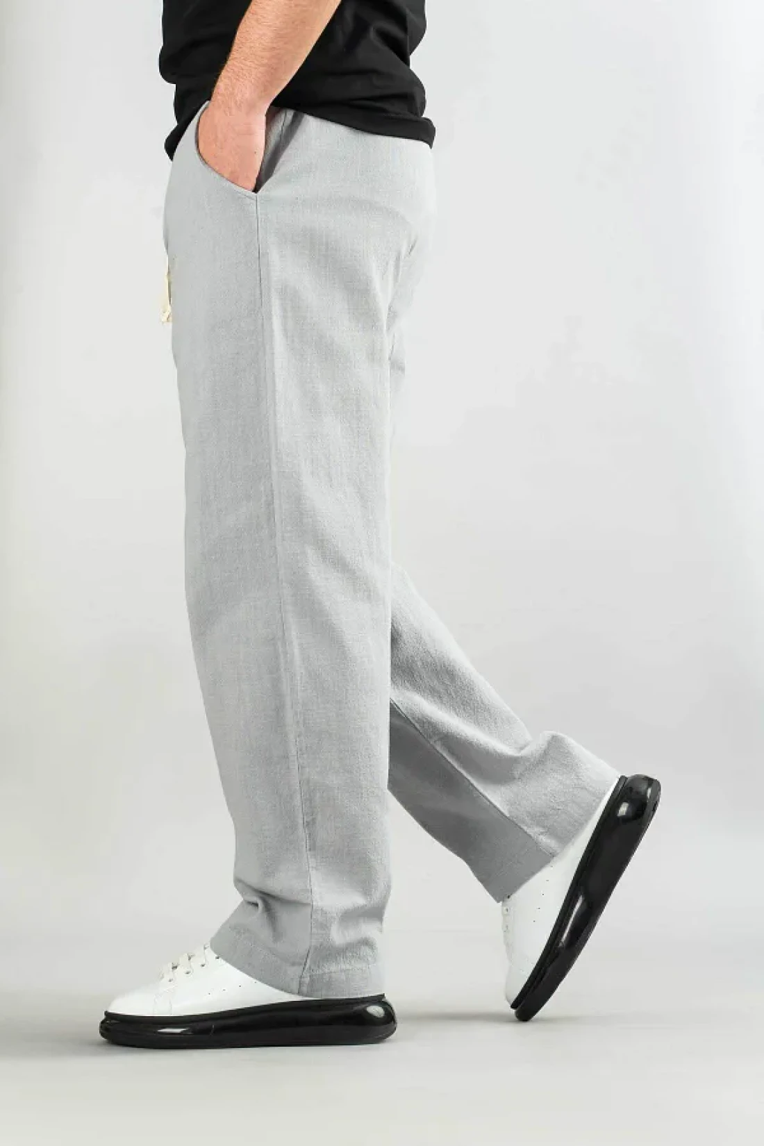 bombe Men's Gray Linen Trousers Elastic Waist Cotton Casual Pants