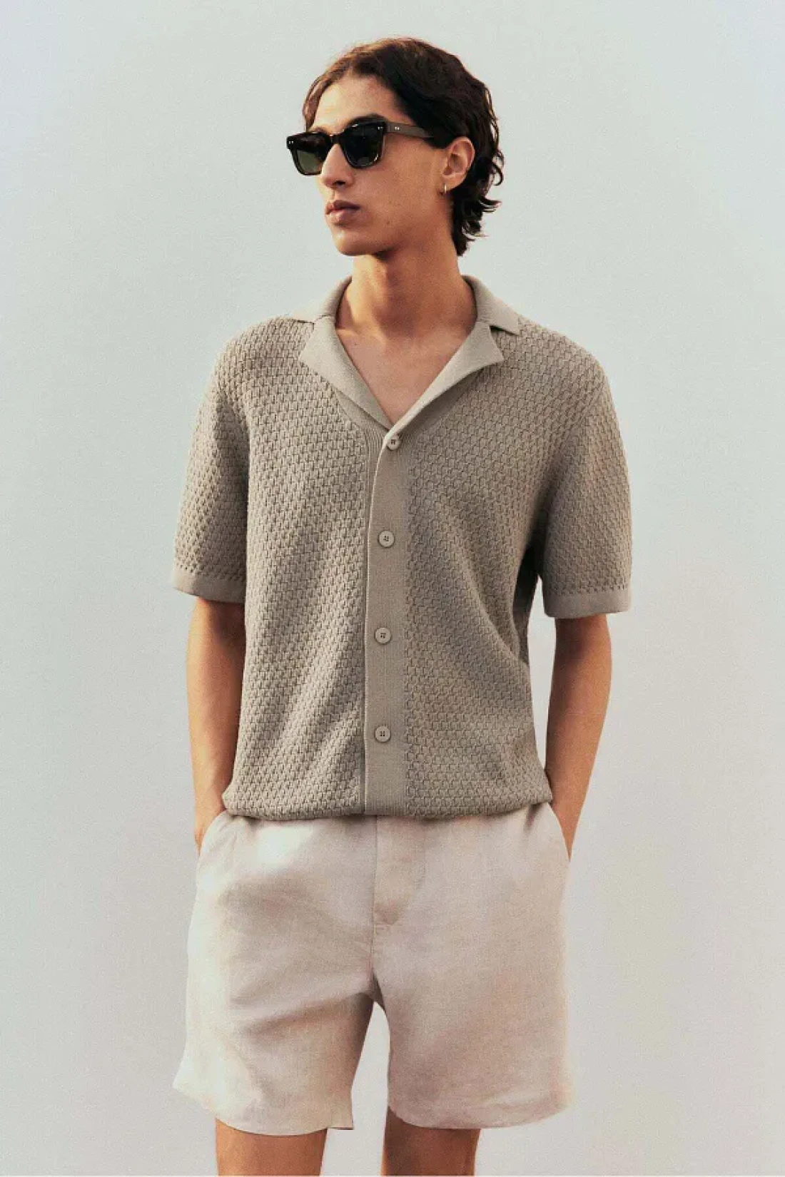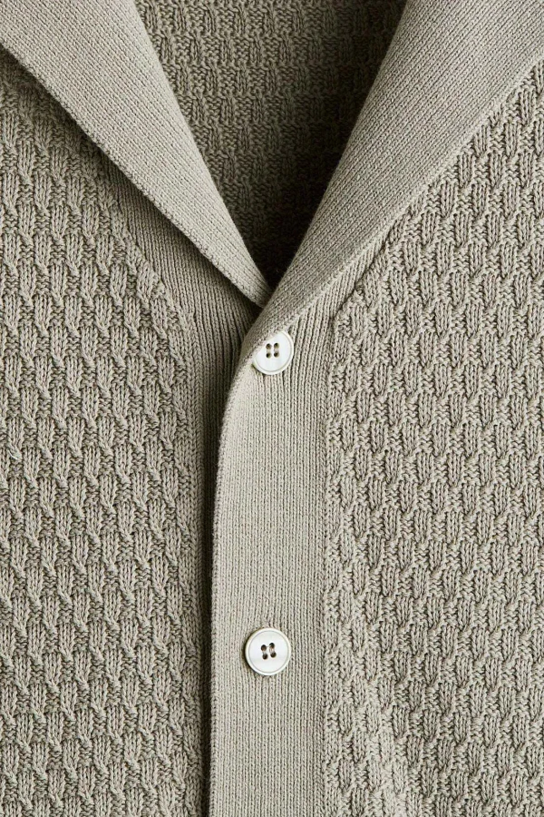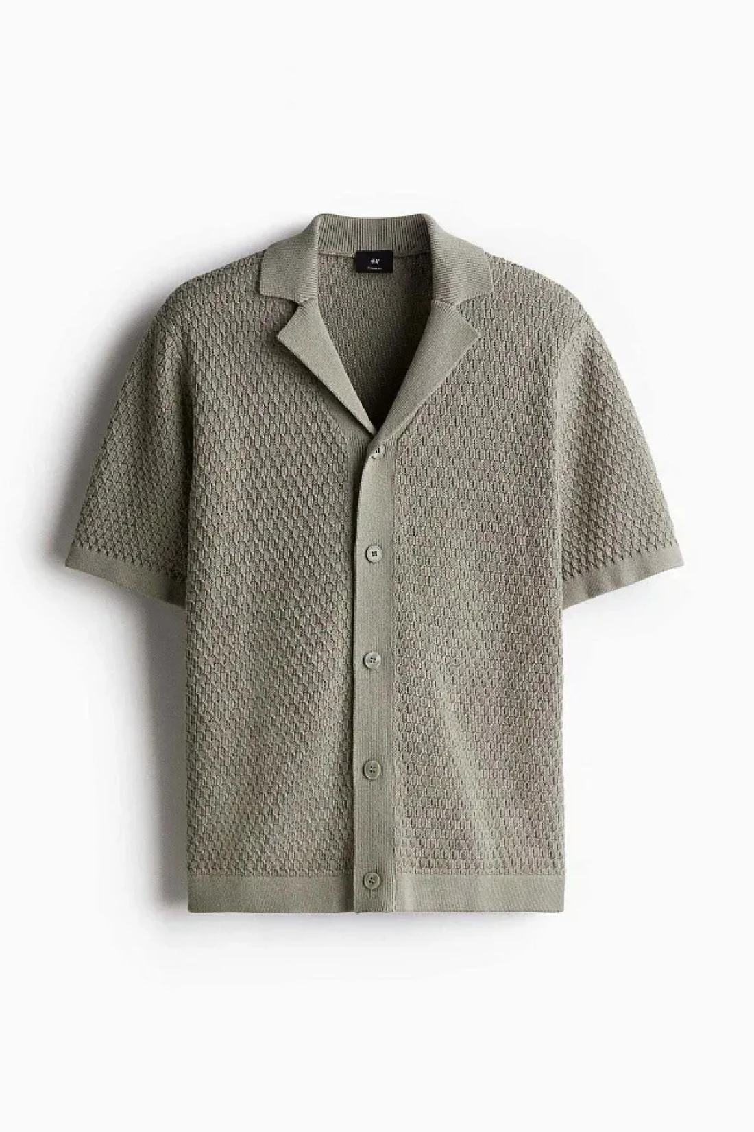 Short-sleeved shirt in a textured knit with a resort collar, buttons down the front and a straight hem.