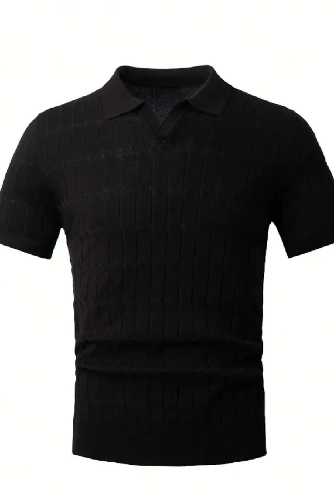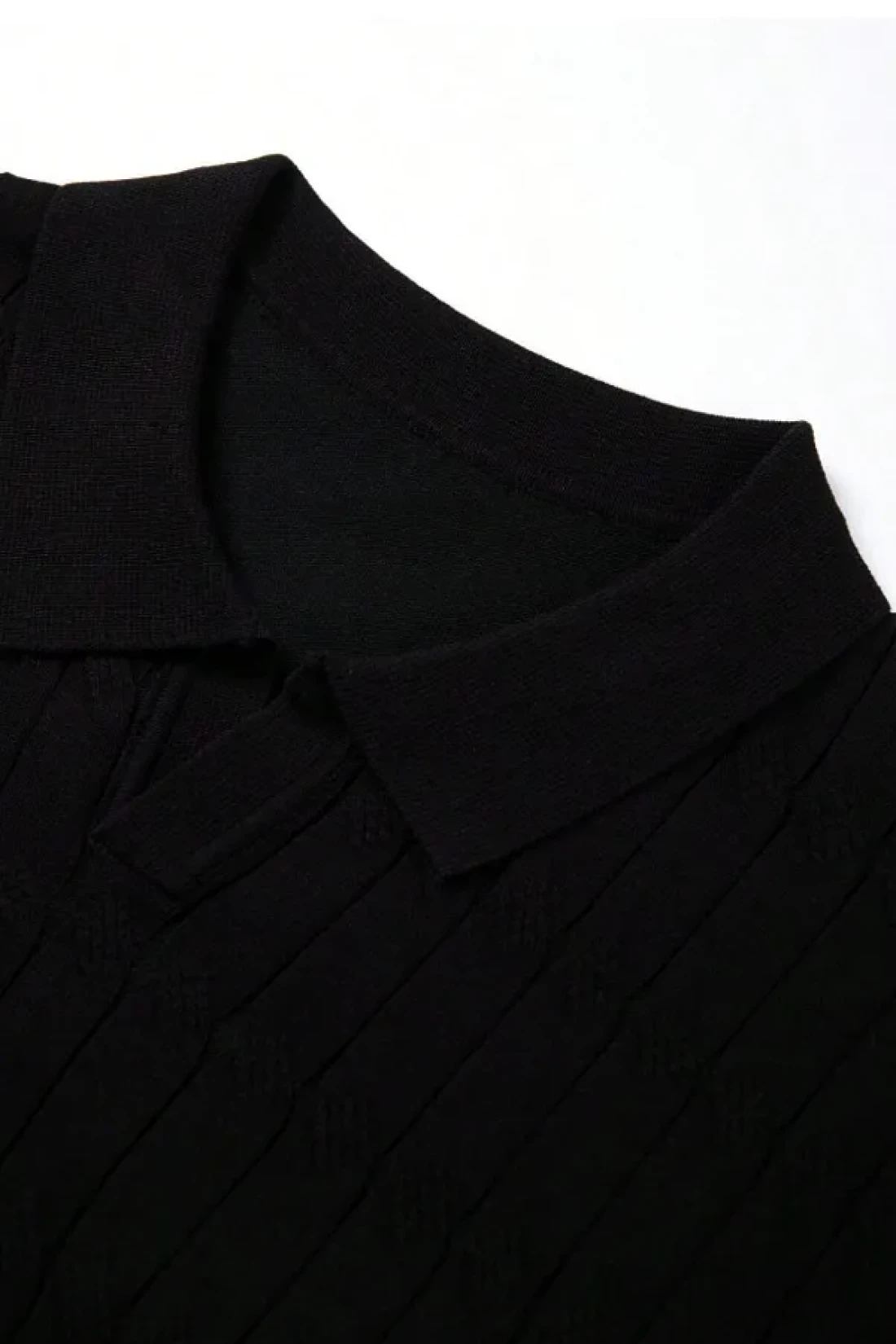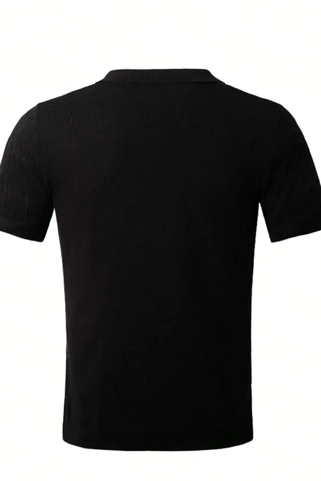 Tarz Cool Men's Black Thin Hair Braided Slim Fit Polo Neck Knitwear T-Shirt