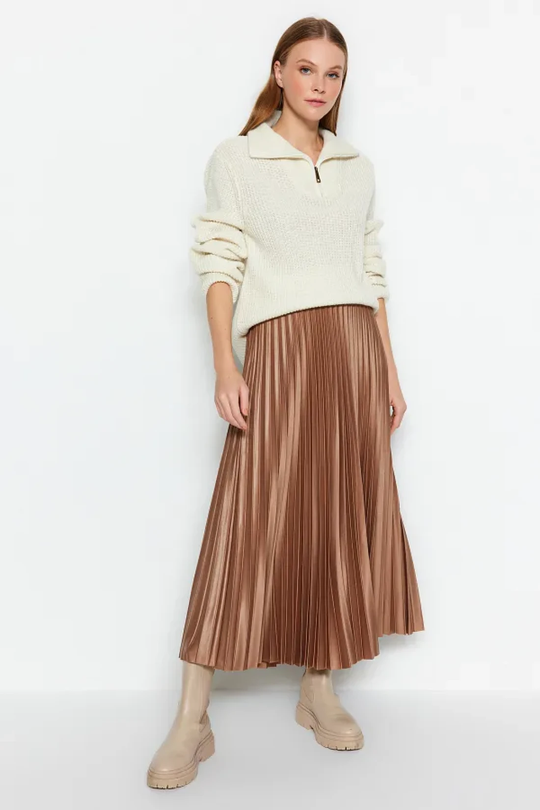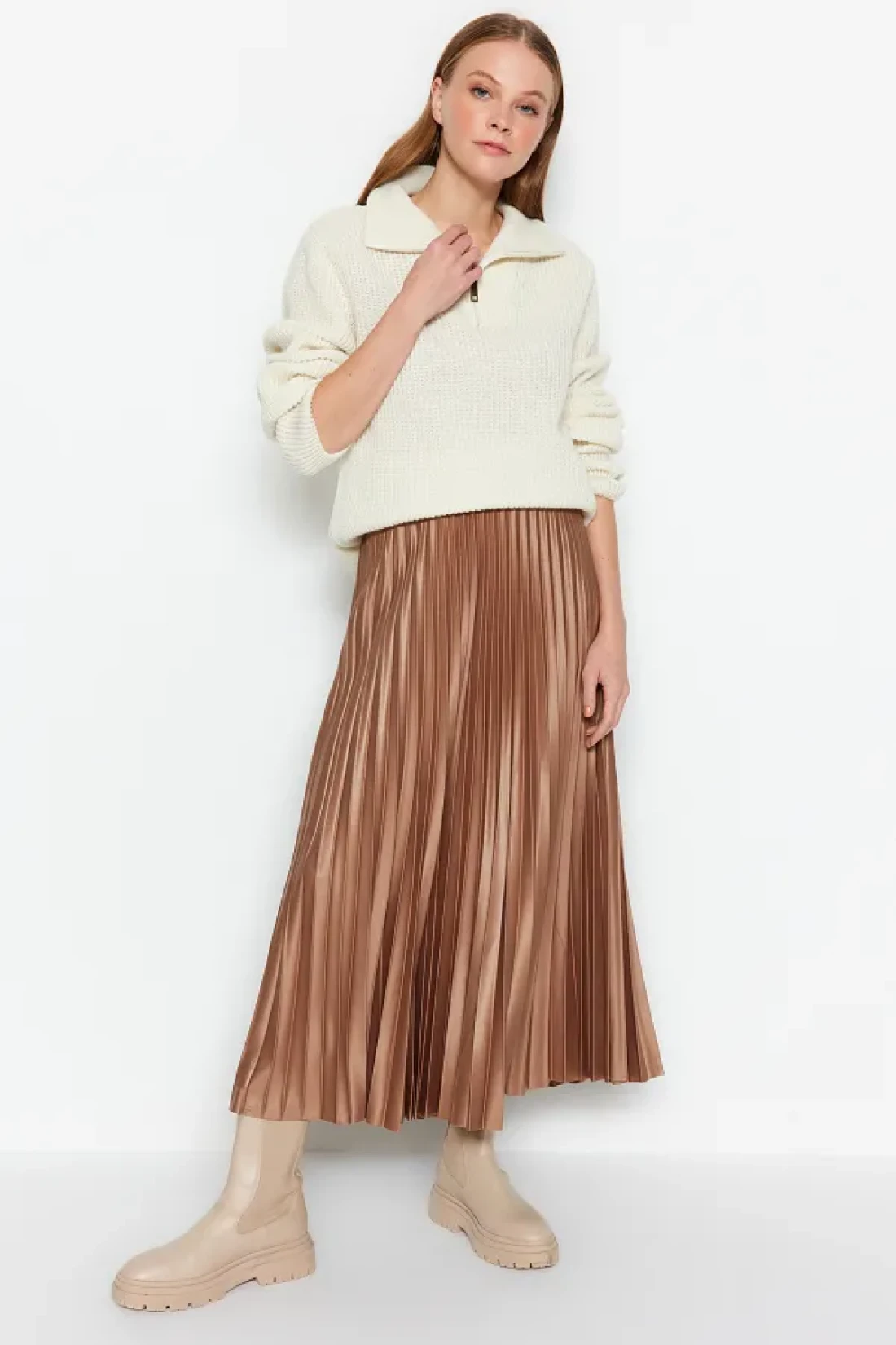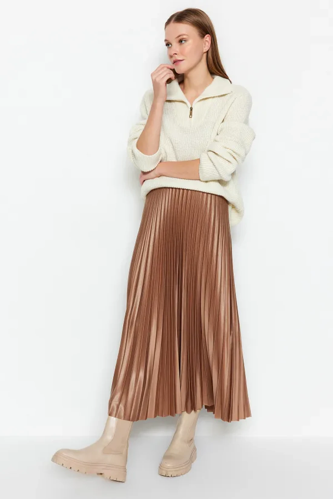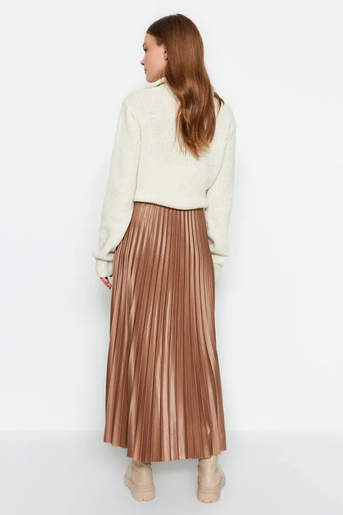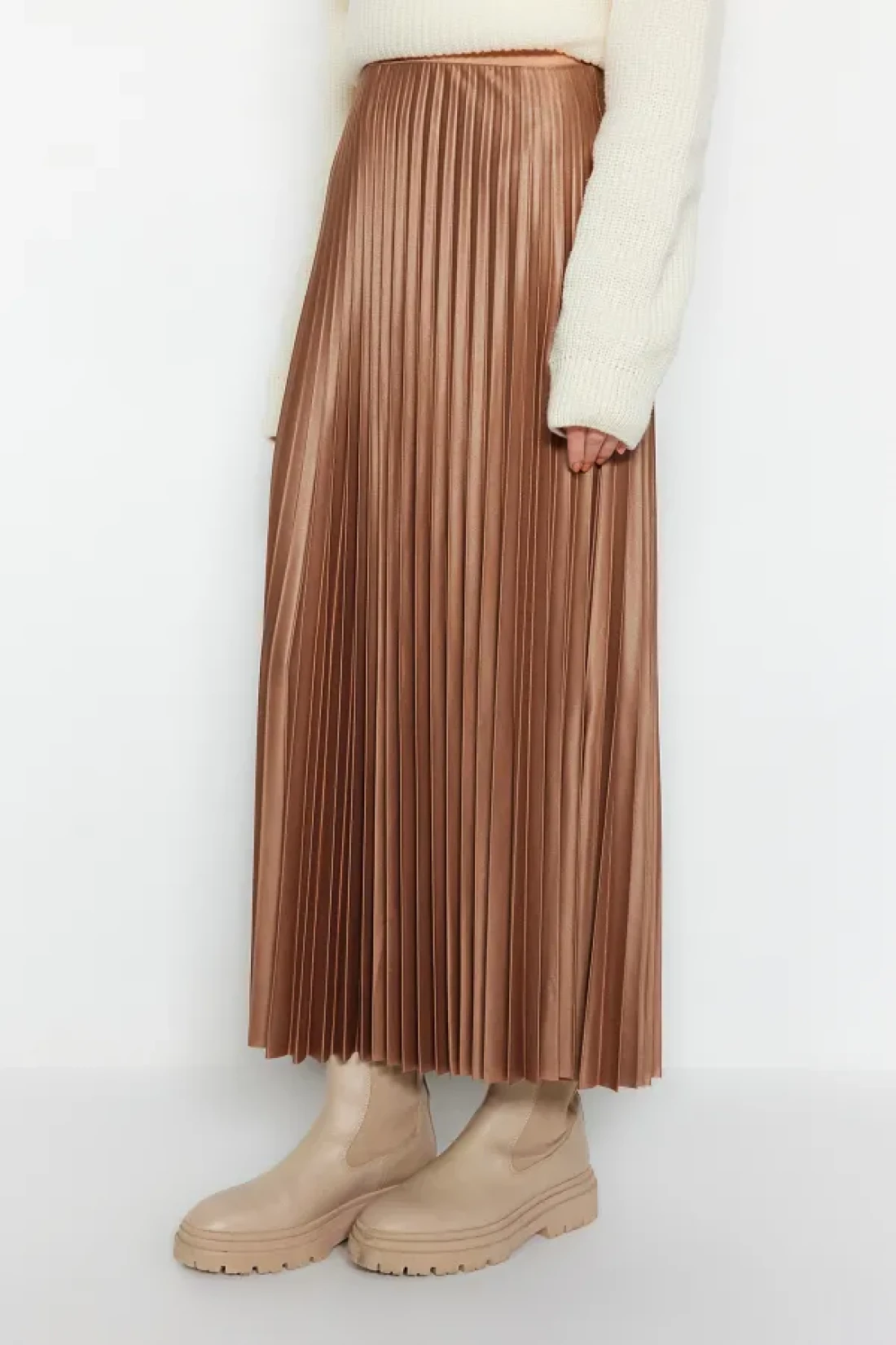 Collection Mink Pleated Maxi Flexible Knitted Skirt TWOSS24ET00041