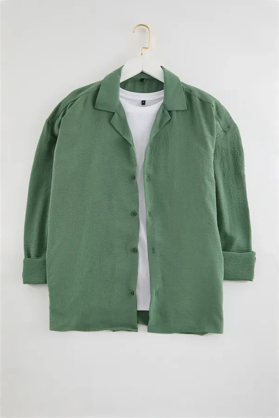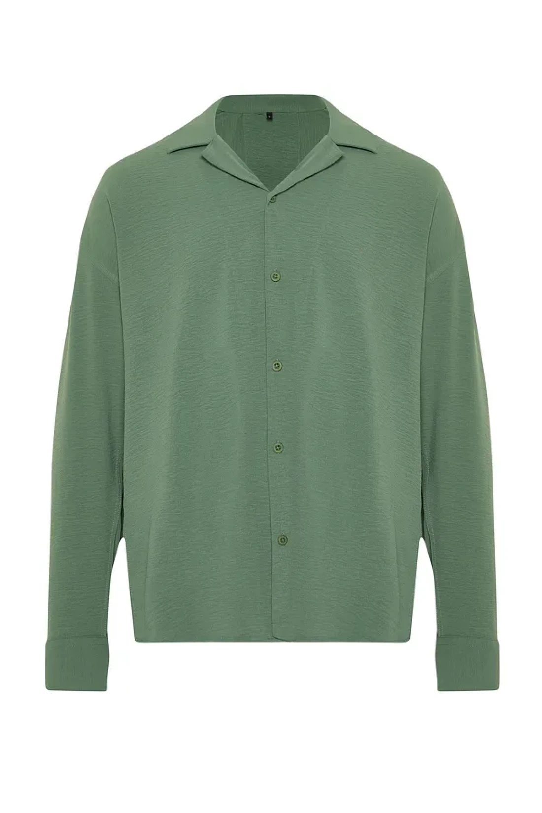 Collection Apaş Collar Khaki Oversize Summer Linen Shirt - TMNSS23GO00053