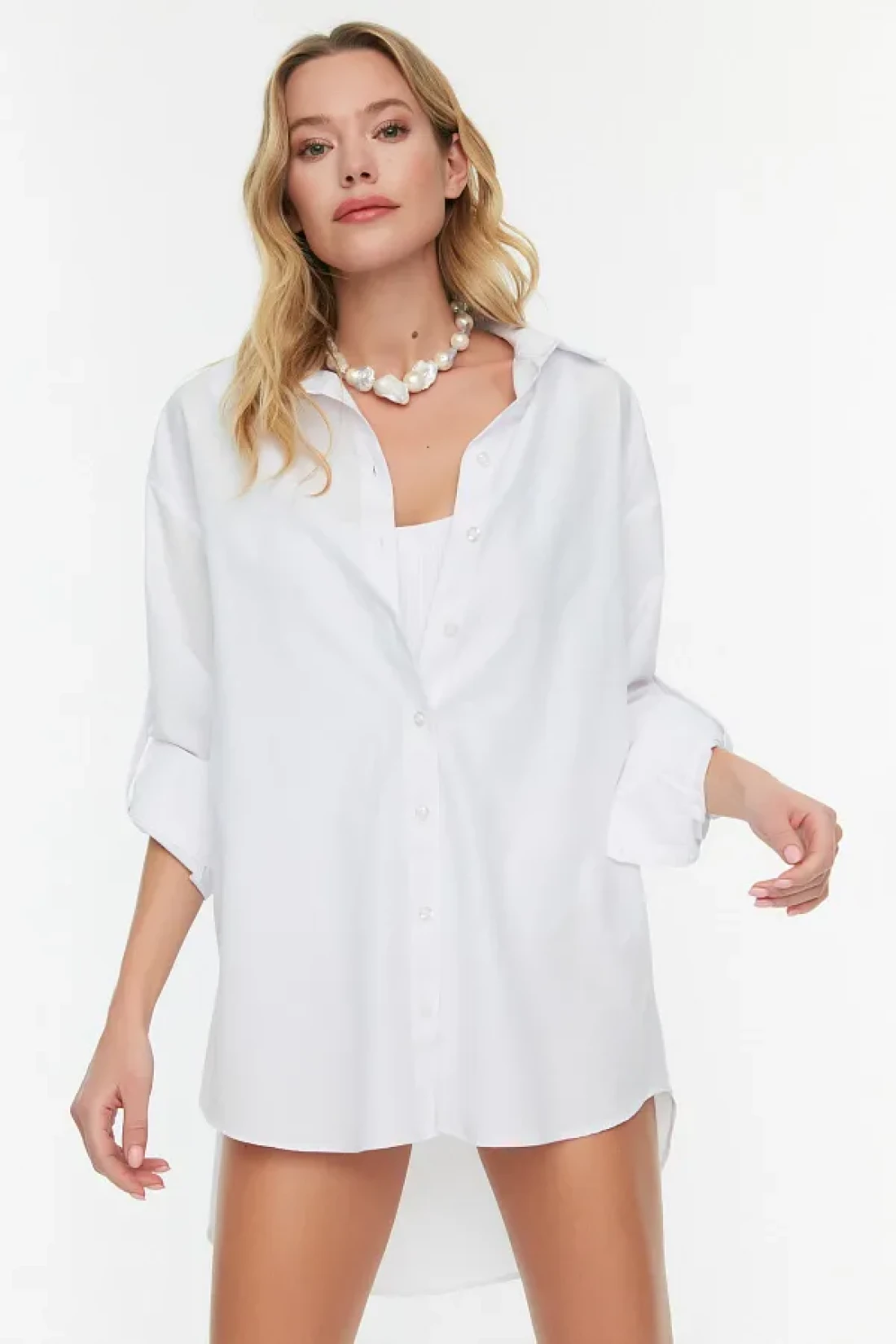 Collection Tbess22Go0664 Model White Woven Beach Shirt