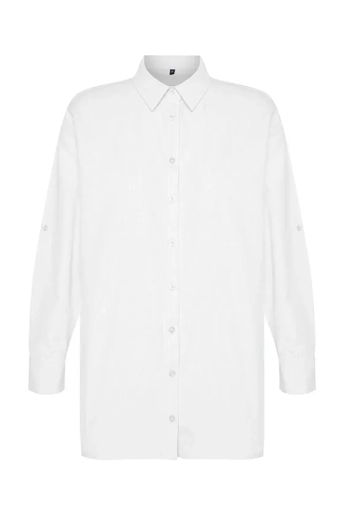 The material composition, consisting of a 50% cotton and 50% polyester blend, offers both softness and durability together. This shirt, ideal for beach wear, completes your elegance in the summer months. It creates a timeless style with its striped pattern, while its basic silhouette matches every combination. Thanks to its long length design, it gently hugs the body lines and gives an elegant appearance. It makes it easier for you to transition from formal to casual wear with its shirt collar detail.