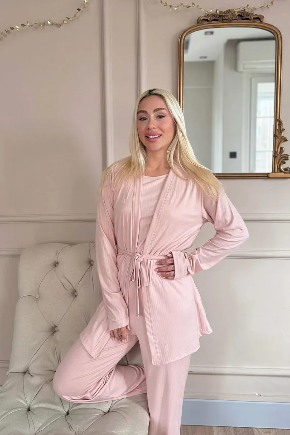 Pijamaevi Powder Dublin Women's Pajama Set with Dressing Gown