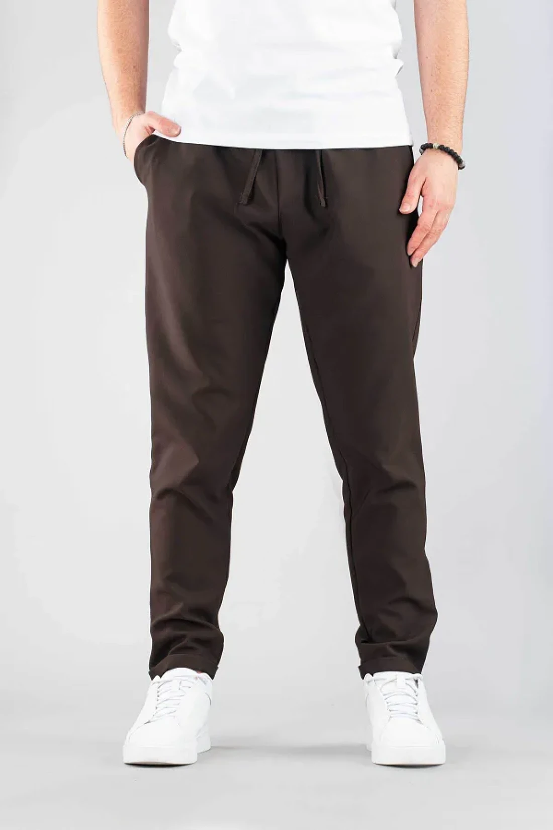 bombe Men's Brown Casual Boyfriend Drawstring Cotton Jogger Pants with Elastic Waist