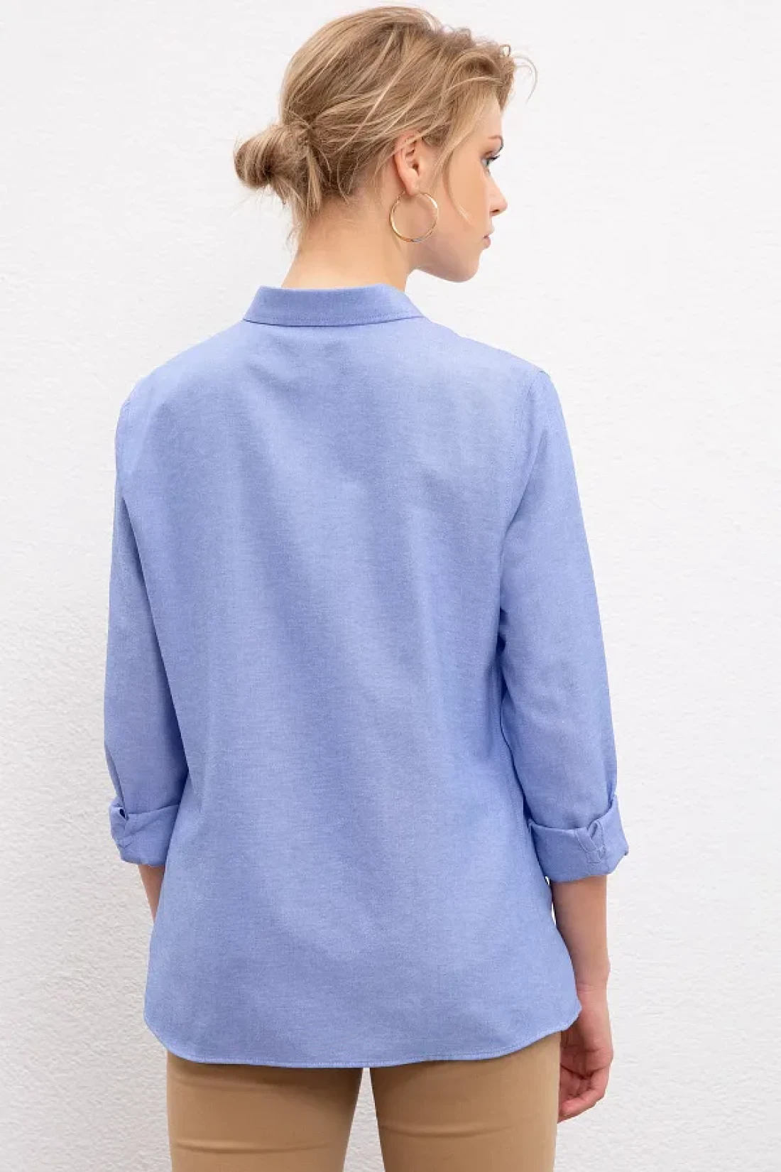 This women's shirt, an ideal, comfortable and stylish choice for daily use, adapts to any environment. It maintains your elegance without compromising your daily comfort with its standard arm design. The flat pattern reflecting the simplicity style of the basic collection can be easily combined.