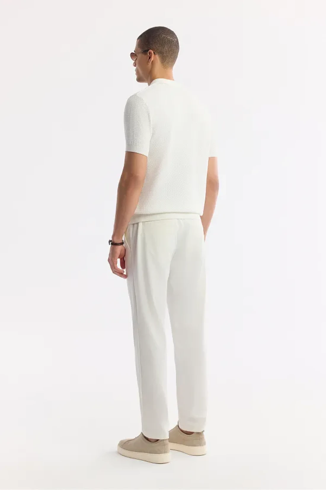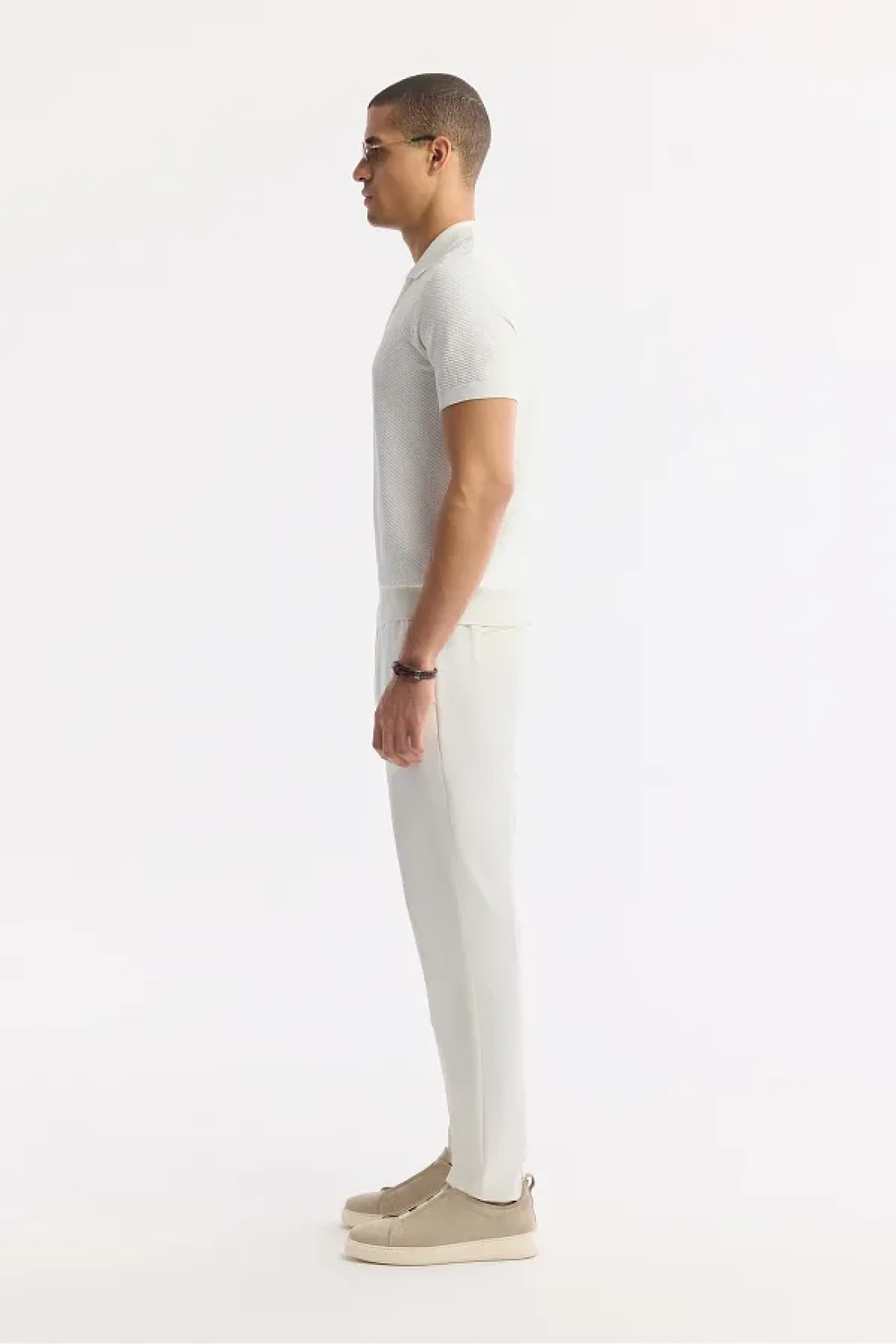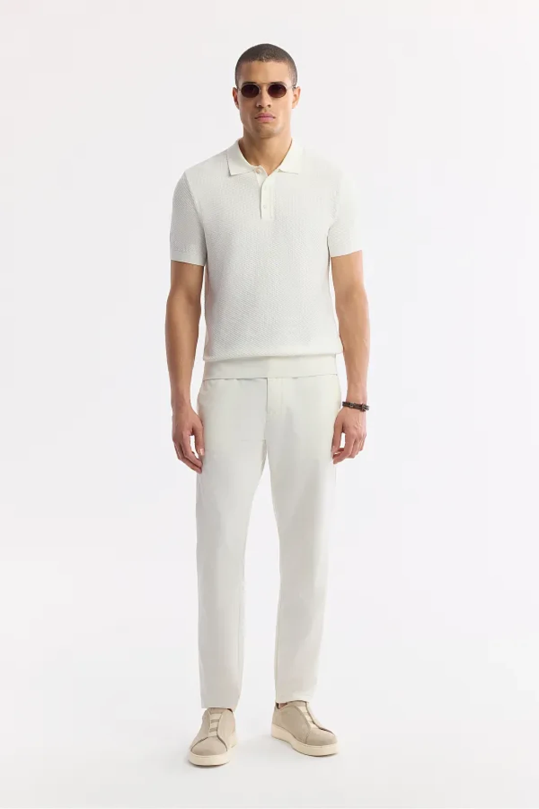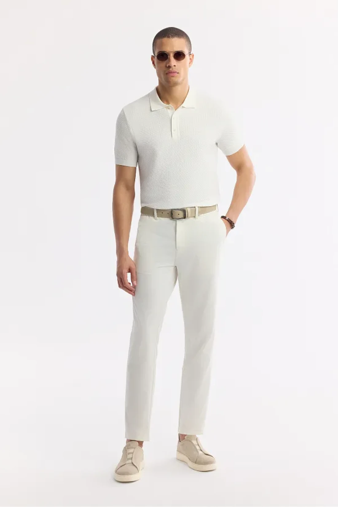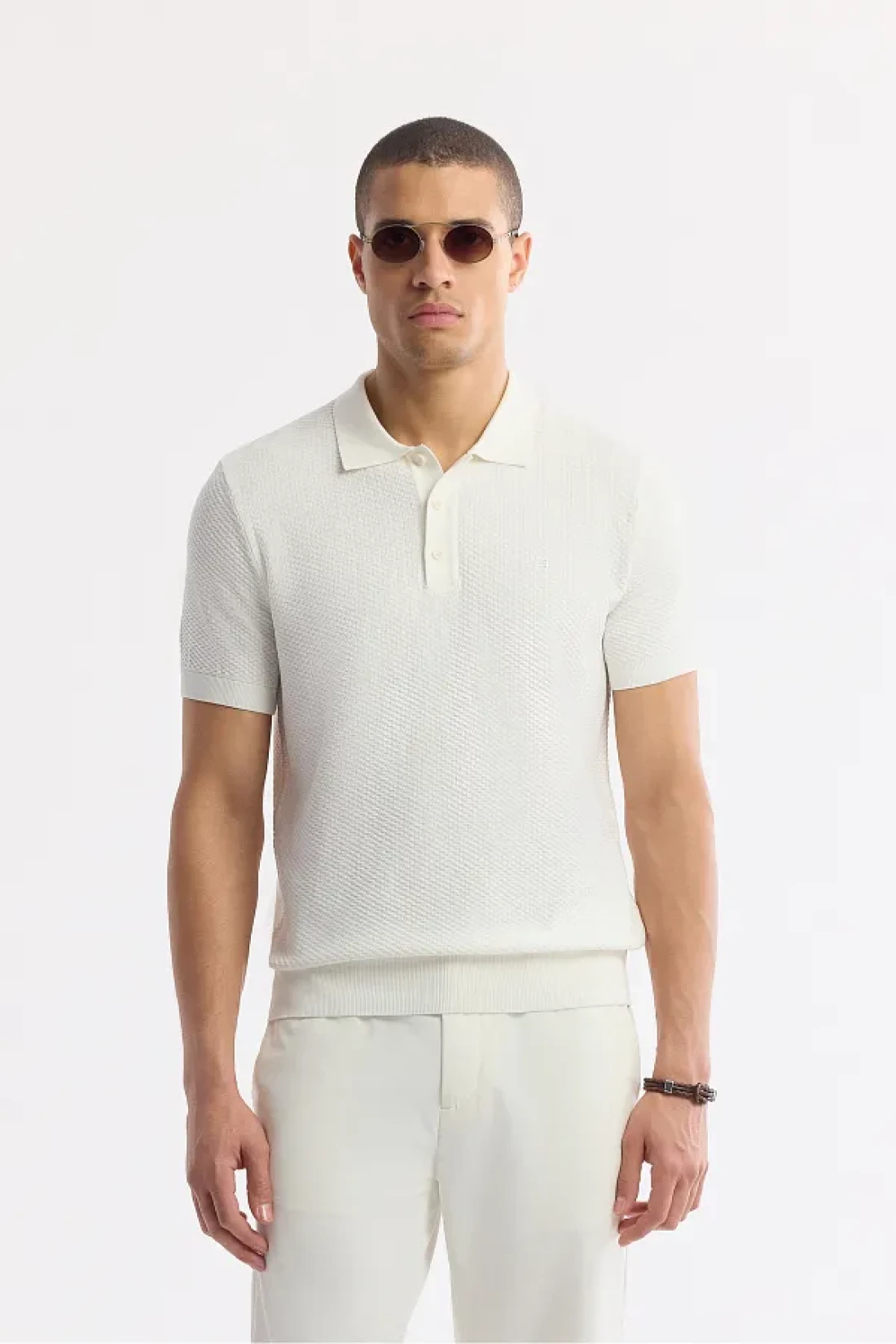 Avva Men's Ecru Polo Neck Textured Knitwear T-Shirt B 005120