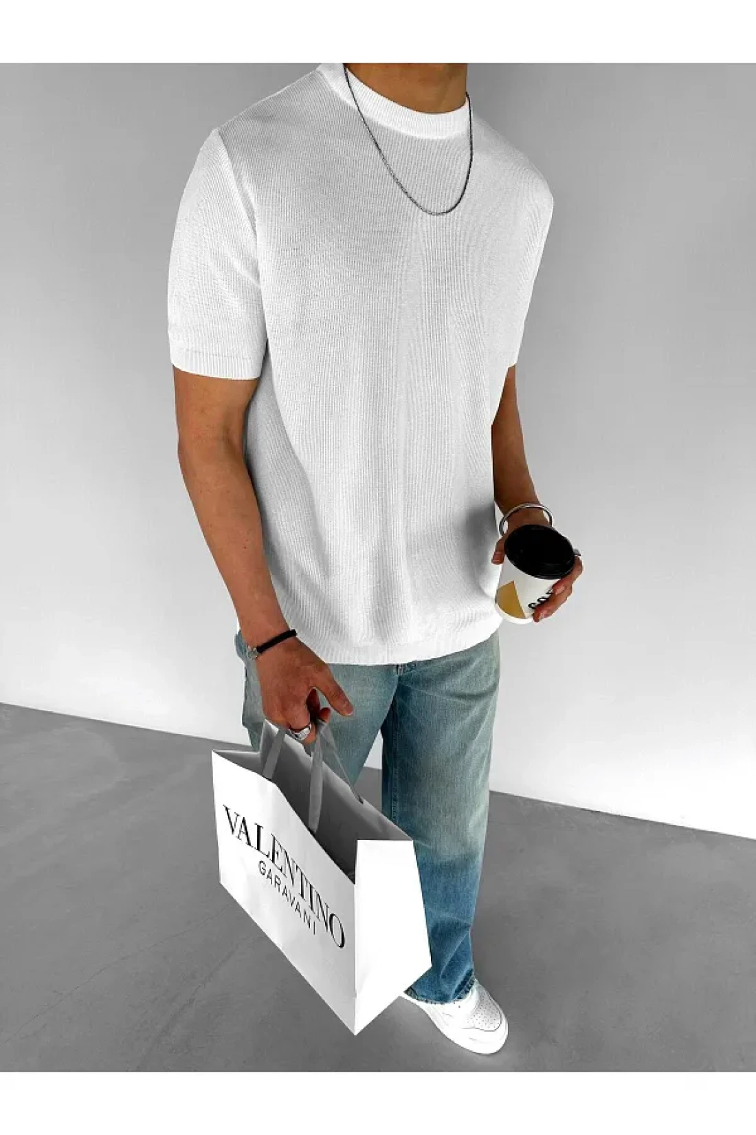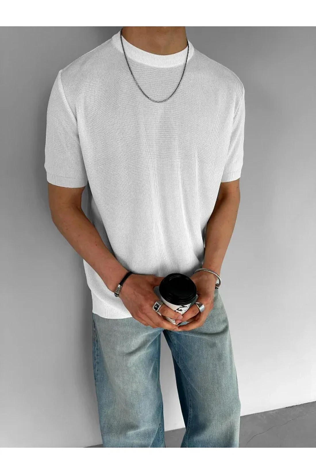 ablukaonline Flexible Crew Neck Knitwear Men's T-Shirt - Regular Fit, Ecru