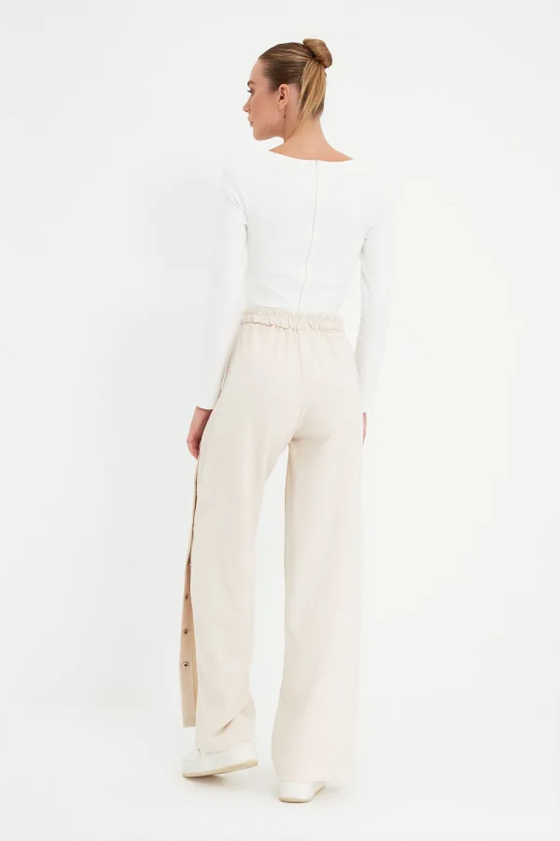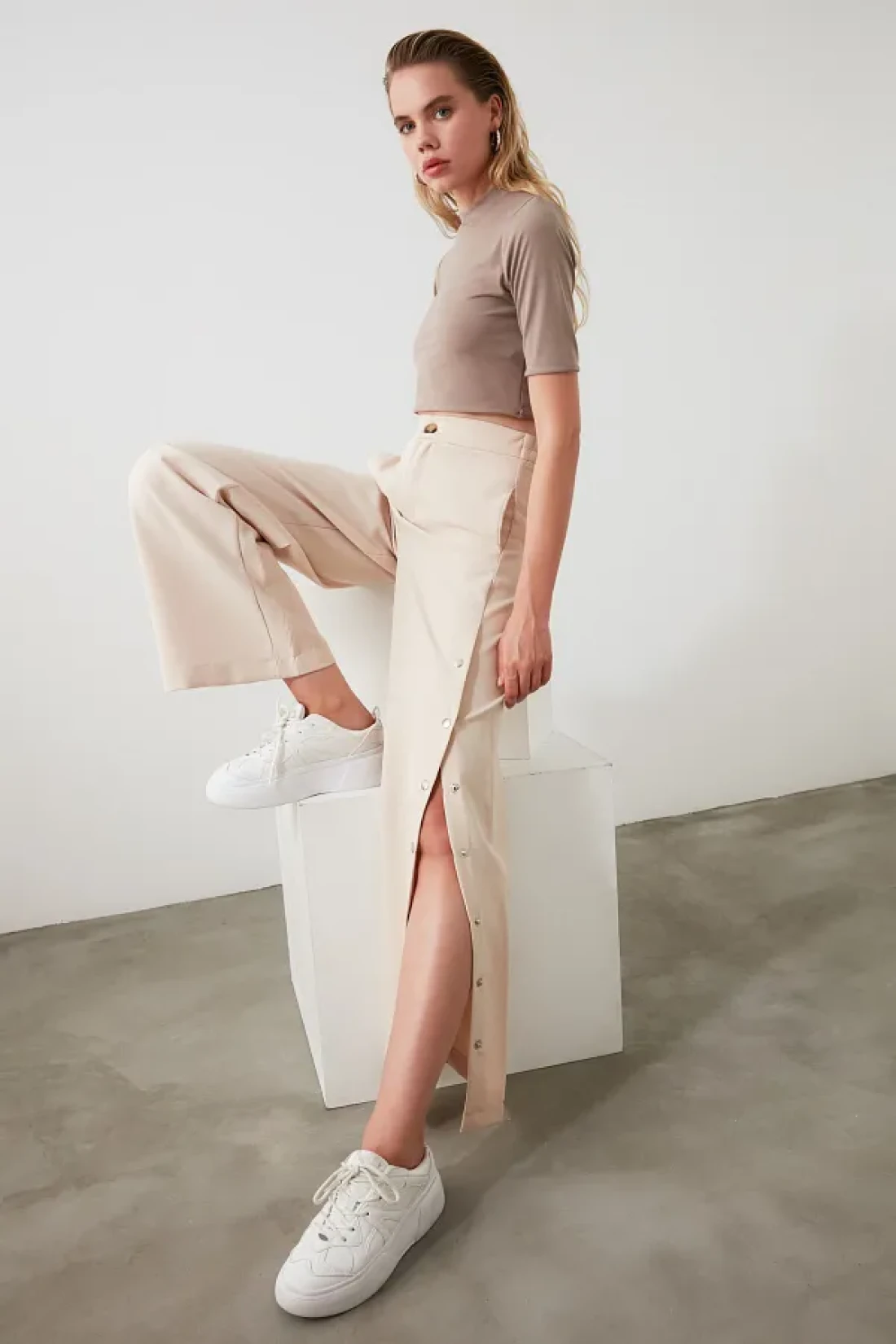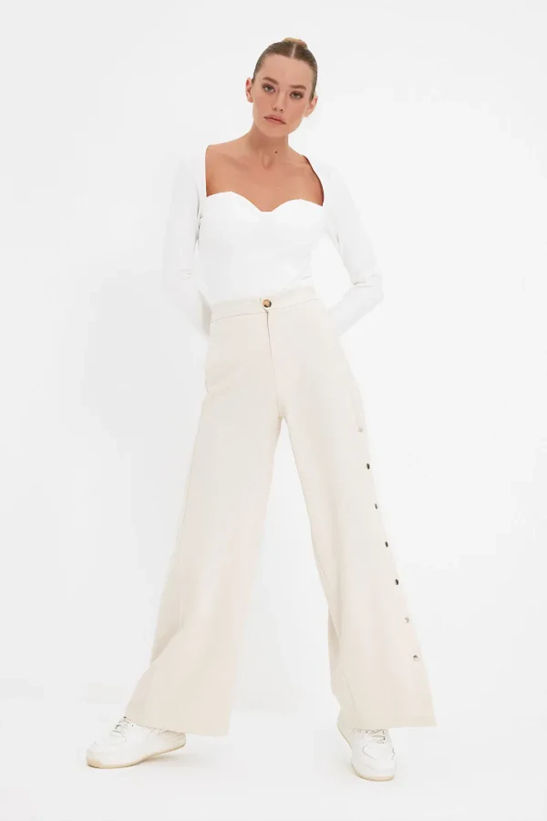 Collection Wide Leg and Buttons Side Woven Fabric Pants - Twoss20Pl0398