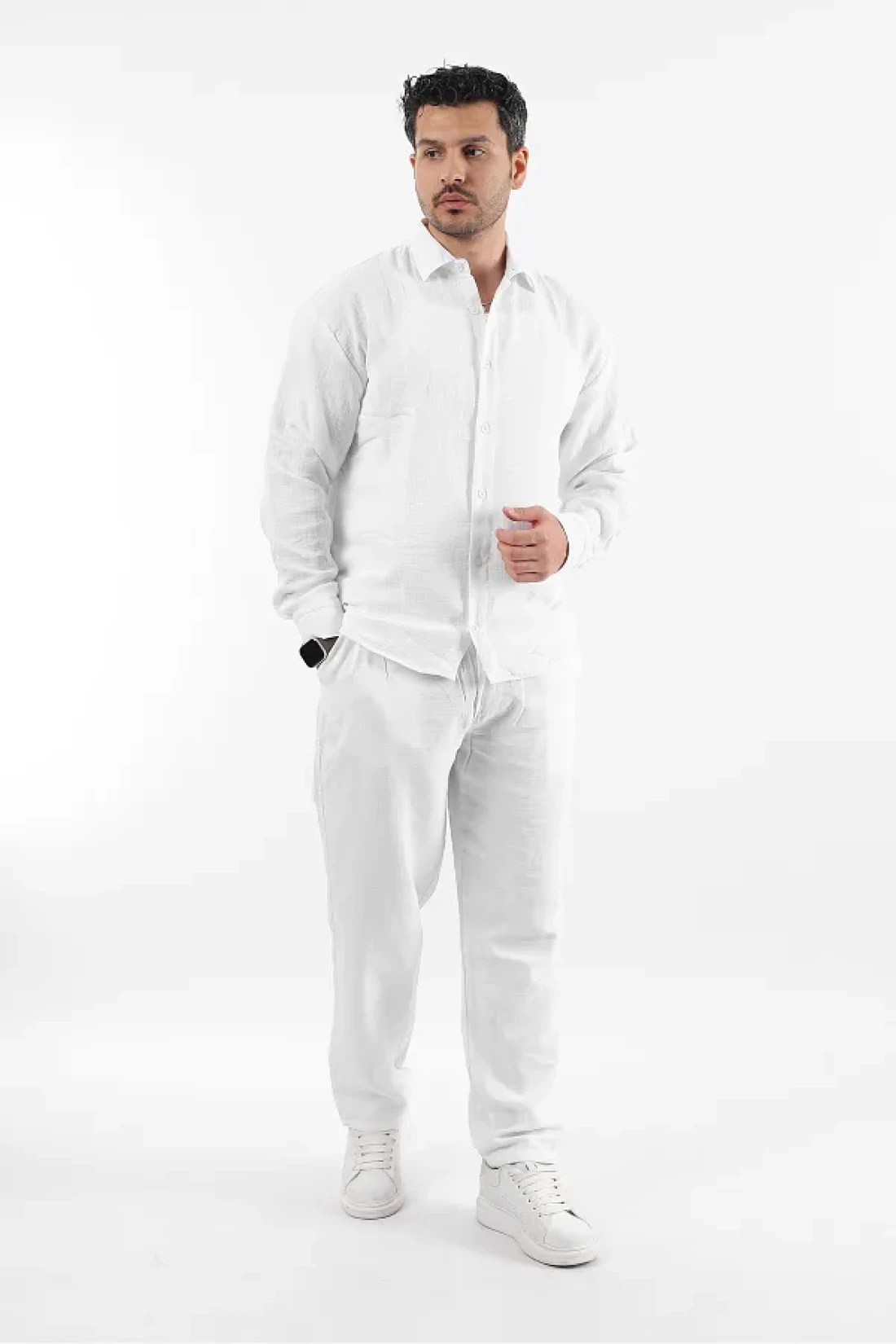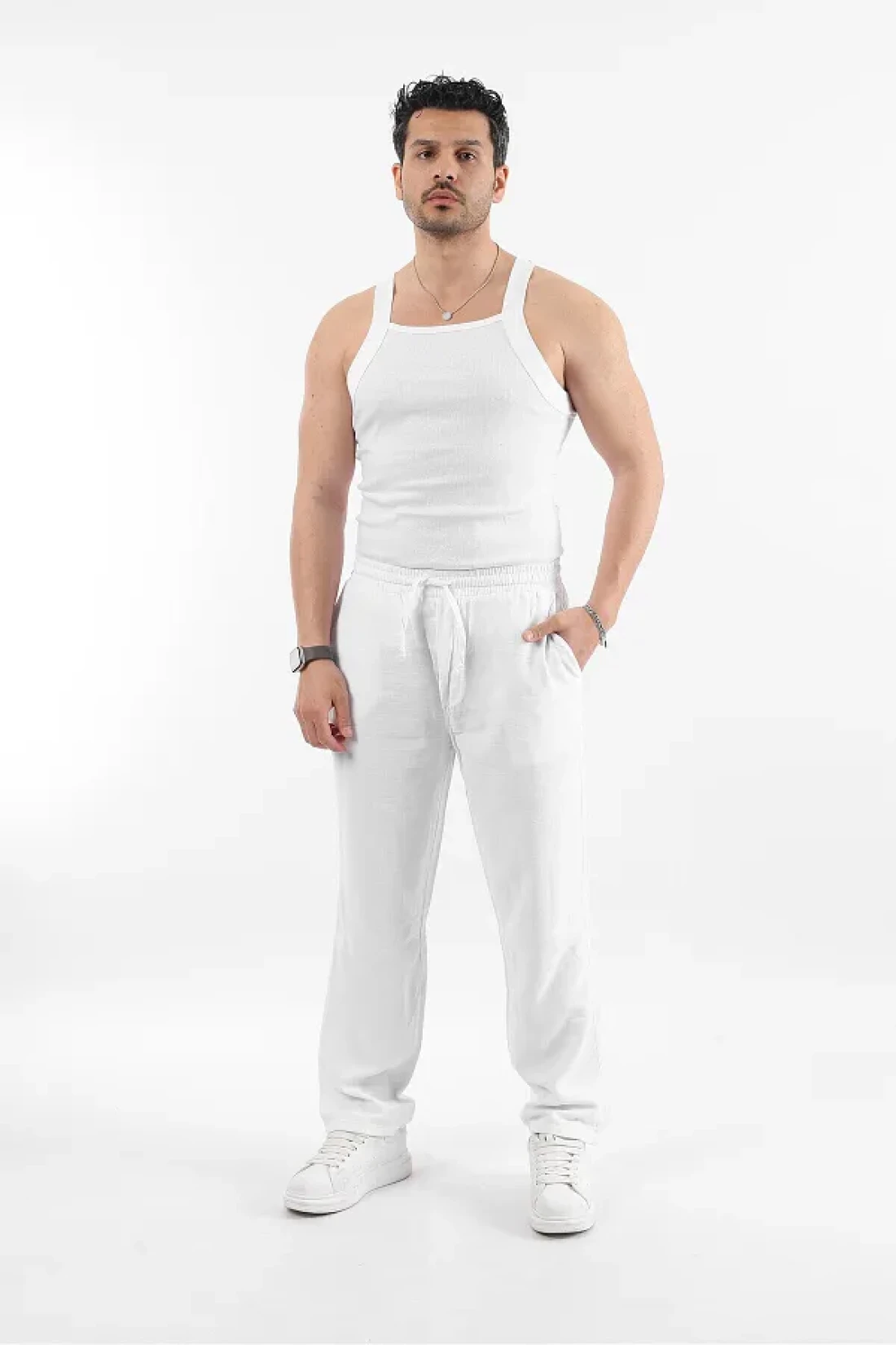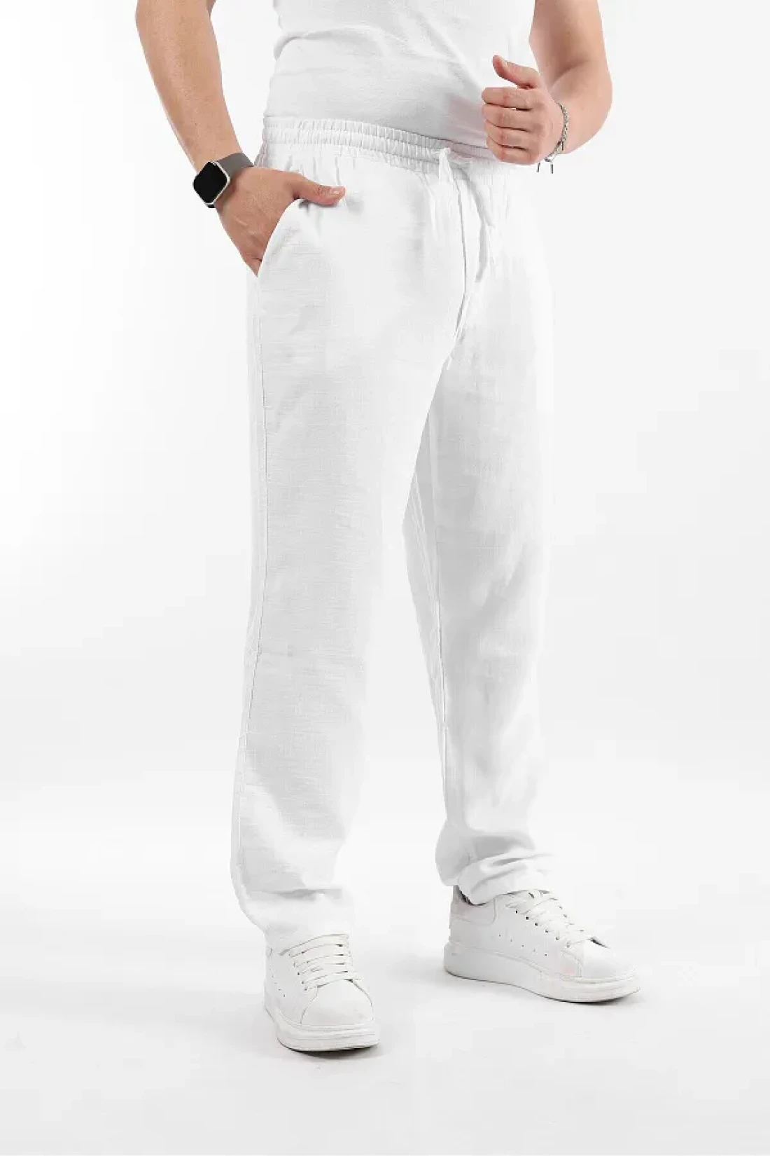 Rodrigo Men's Relaxed Cotton Linen Loose White Trousers