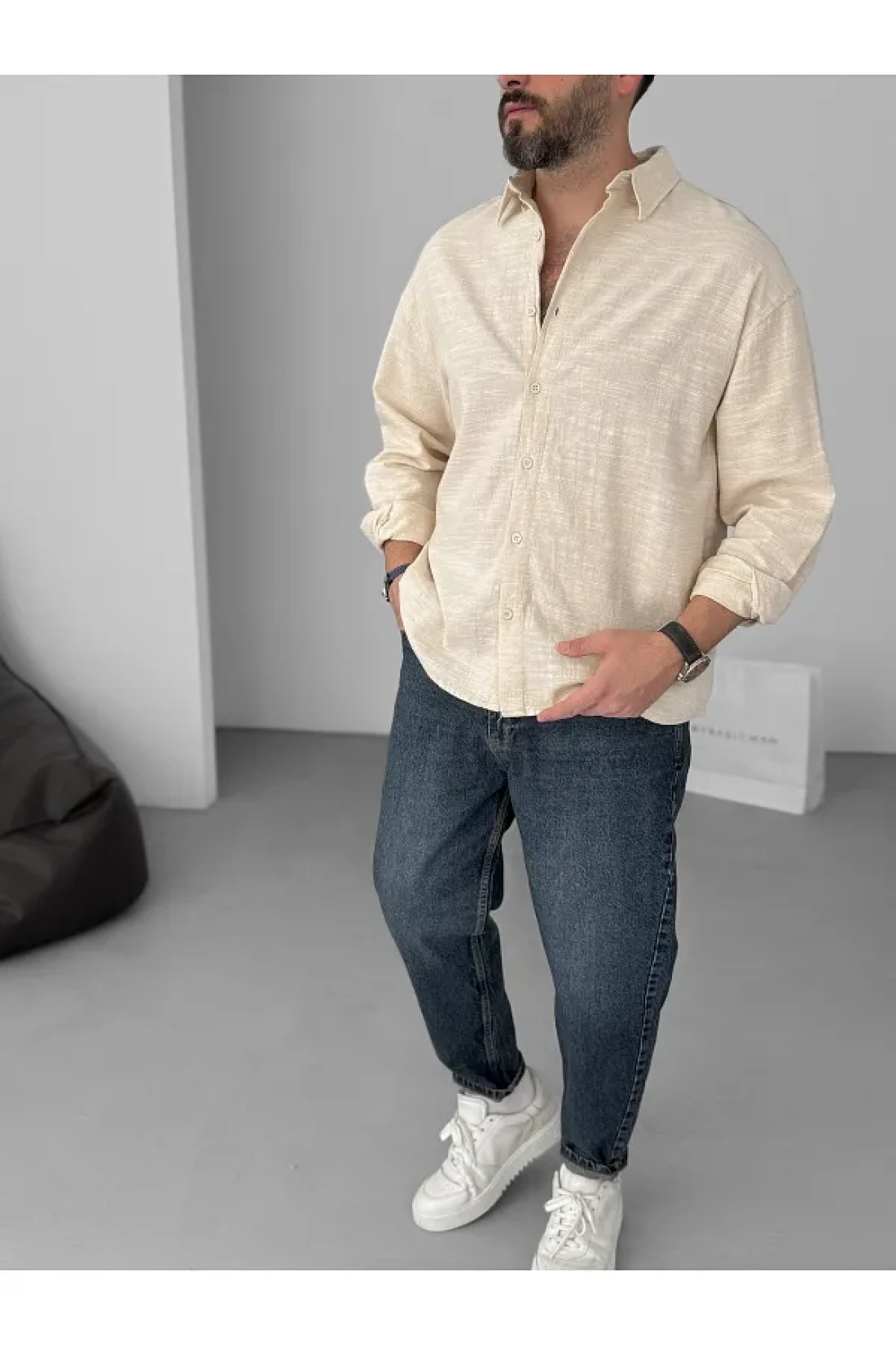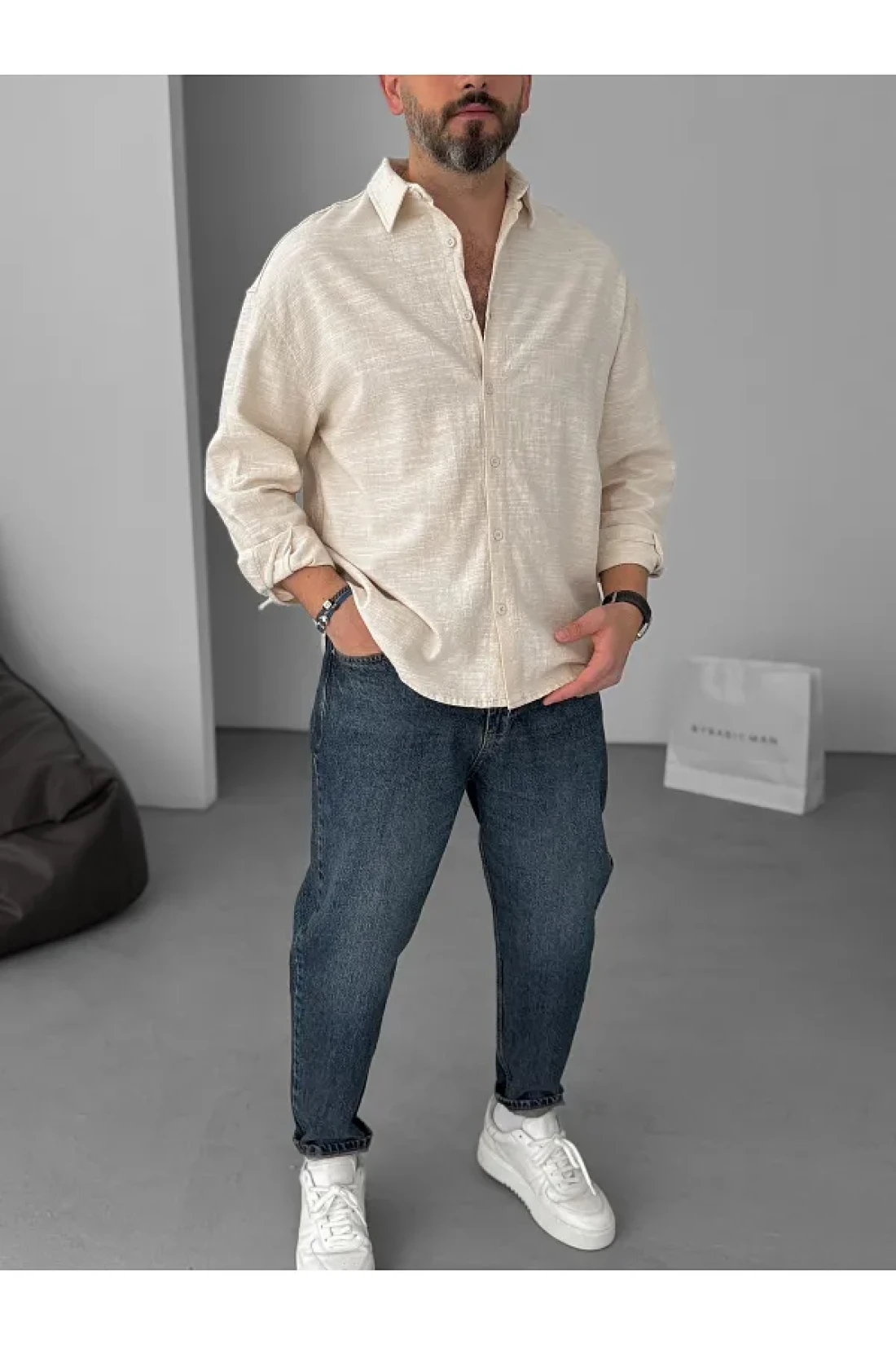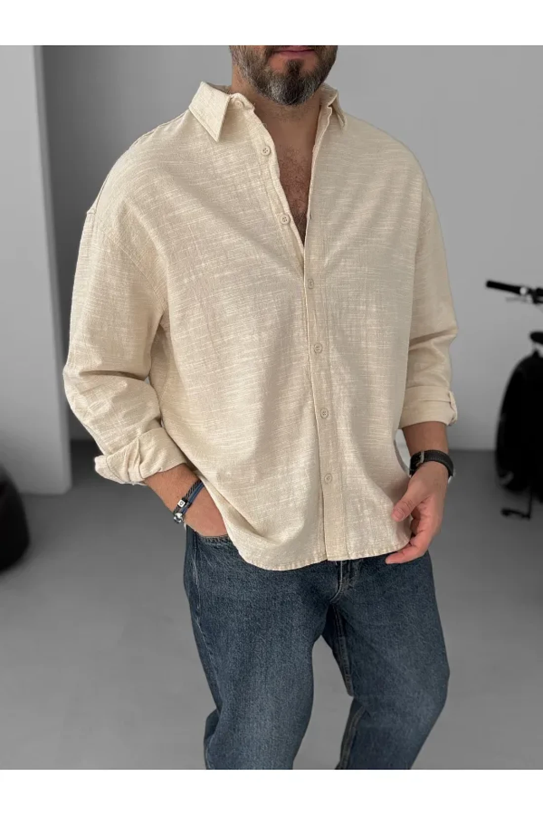 BYBASICMAN Beige Flame Long Sleeve Shirt Yp-5001