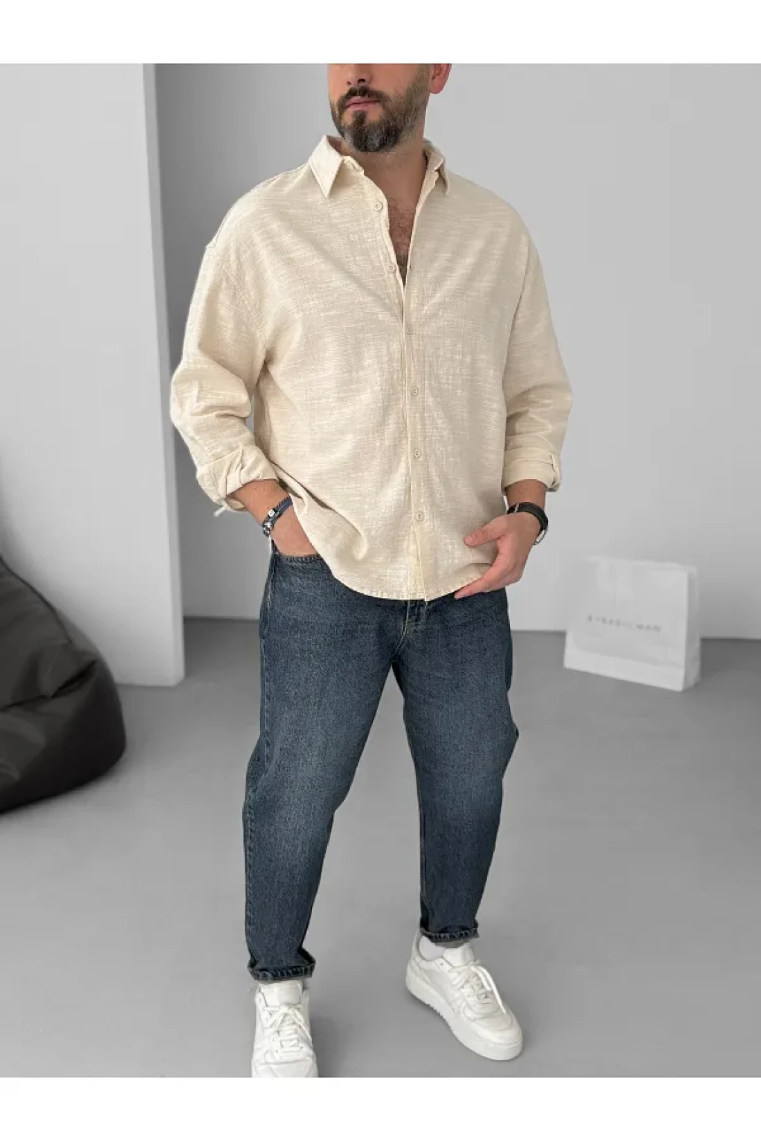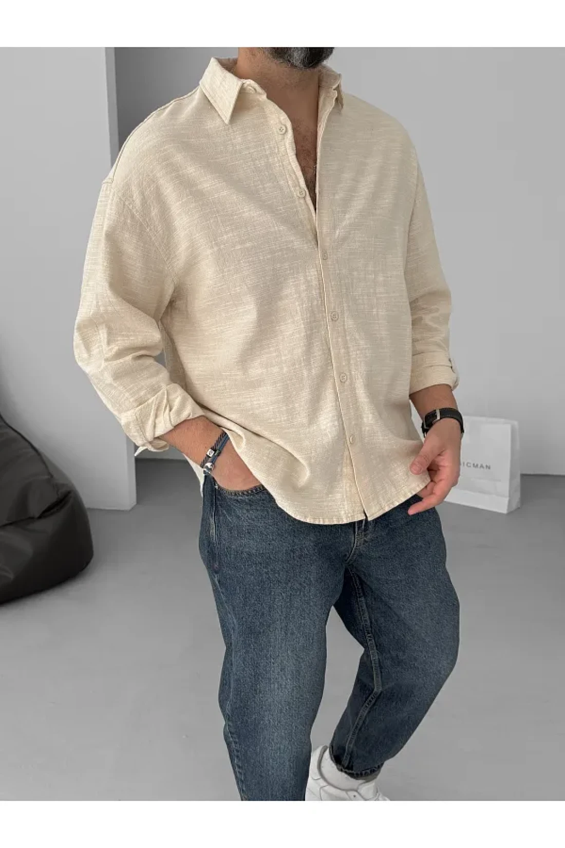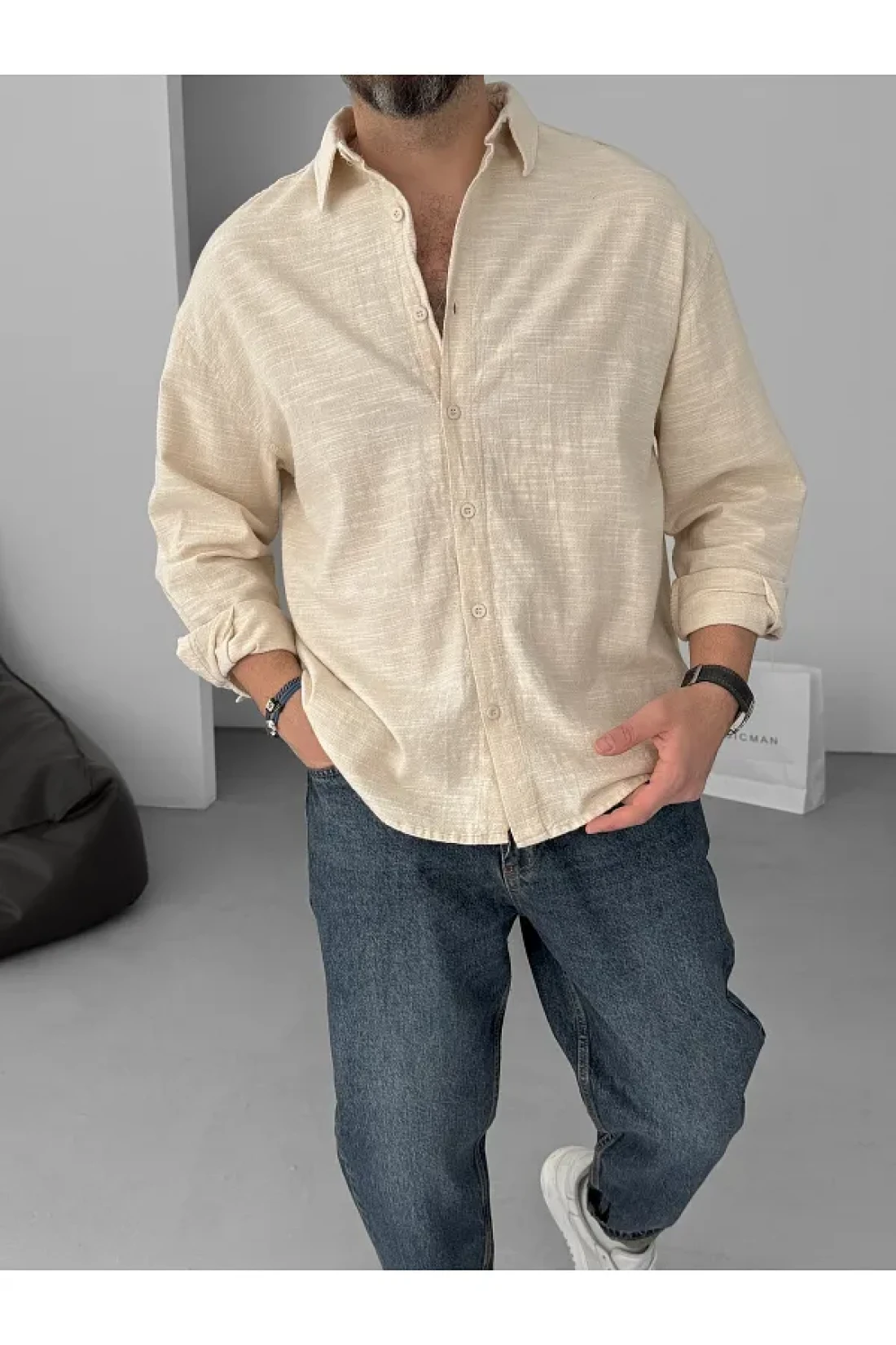 BYBASICMAN Beige Flame Long Sleeve Shirt Yp-5001