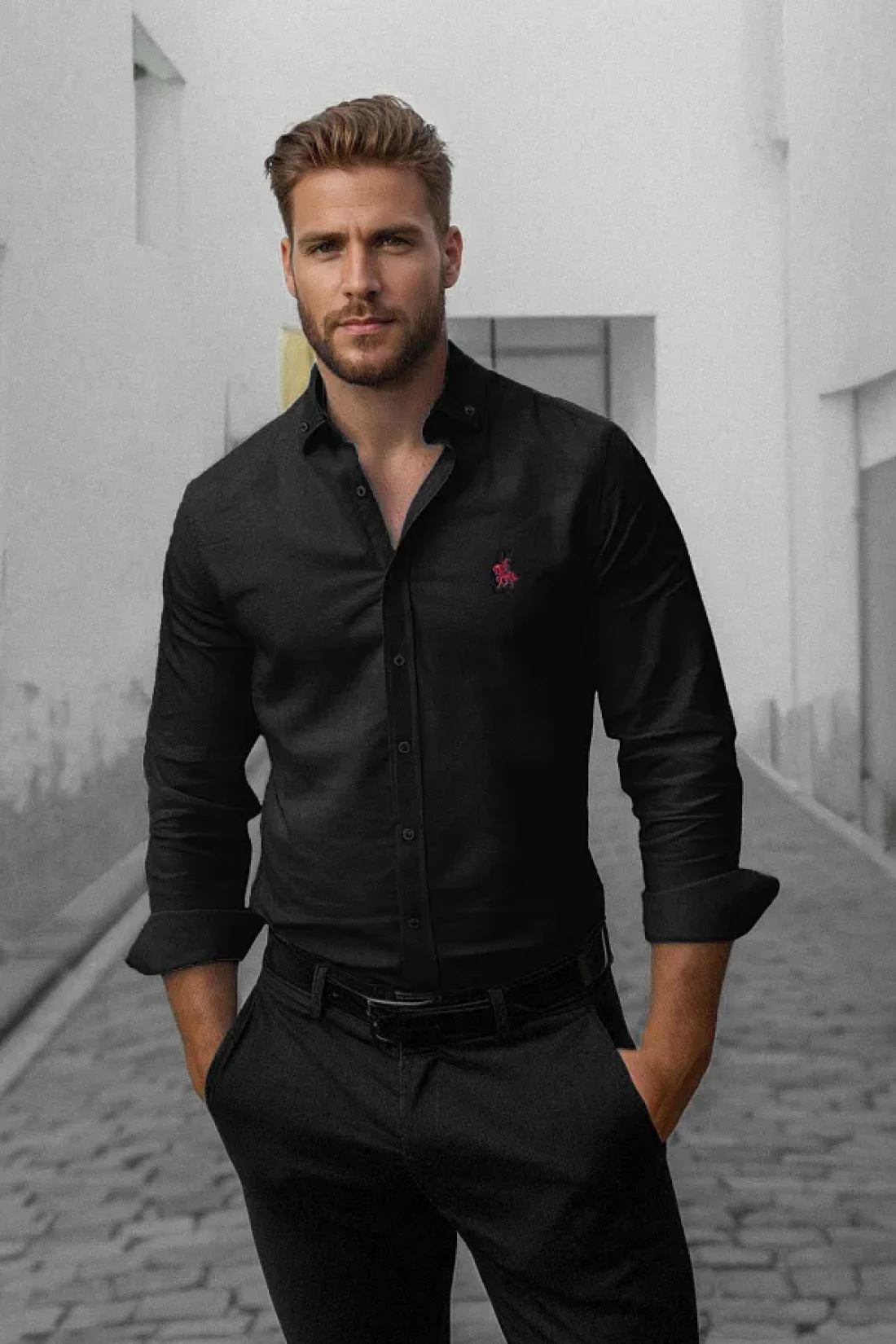 Collection Black Regular Fit Embroidery Detail Smart Shirt Tmnaw25Go00036