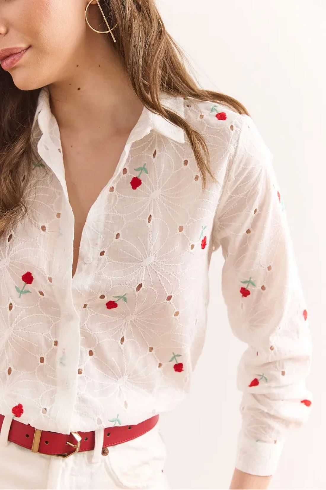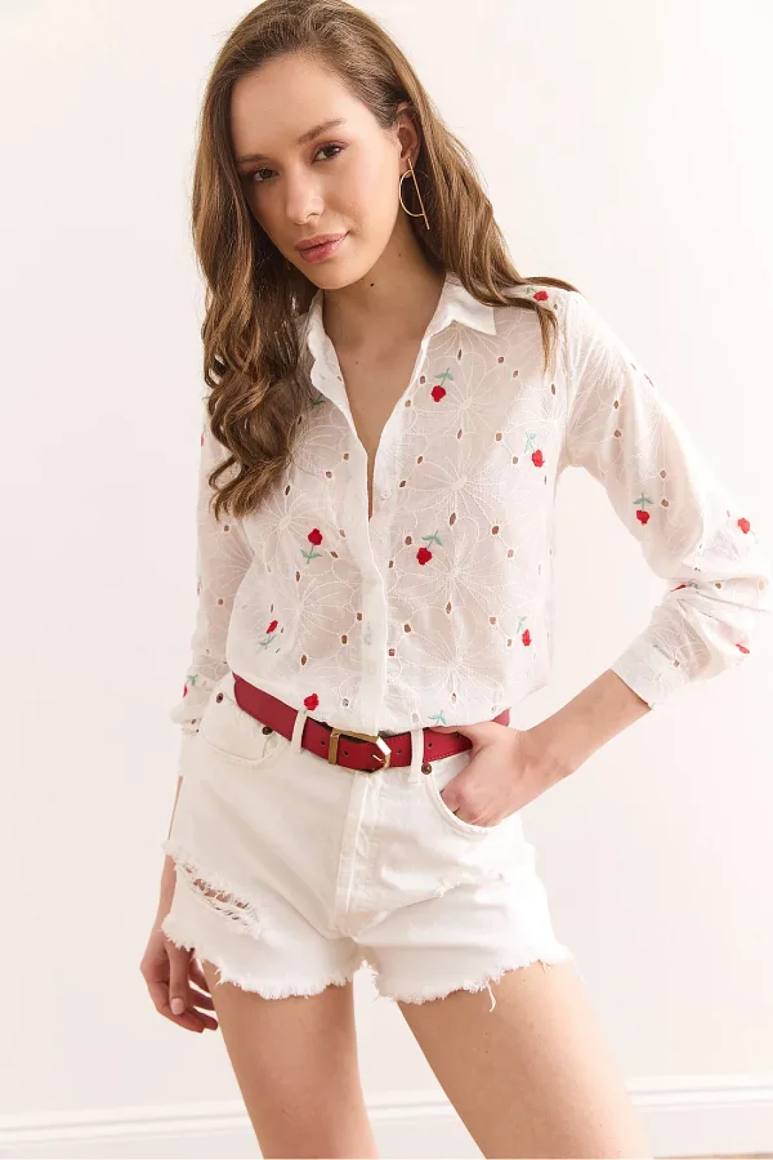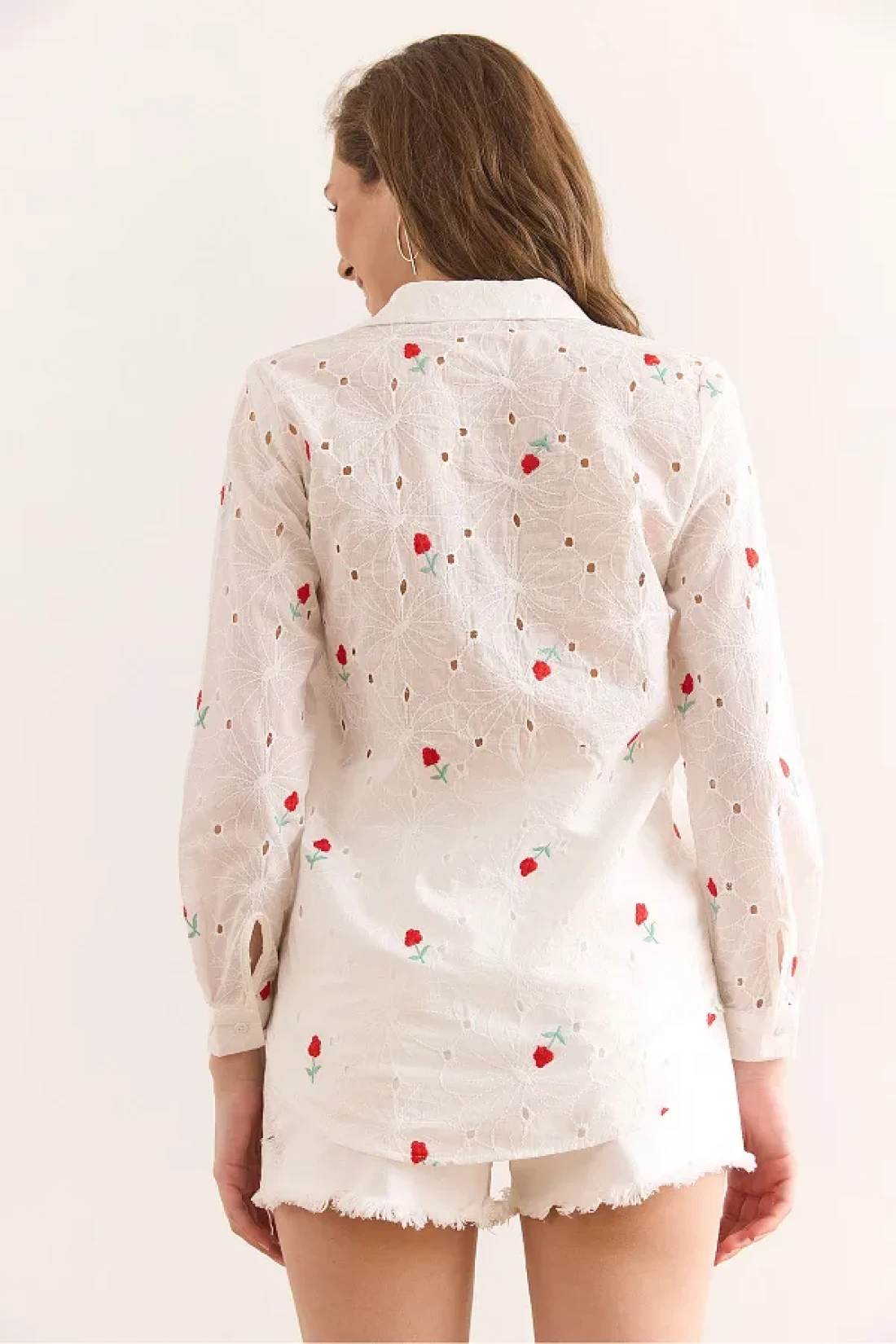 Olalook Women's White Red Colorful Floral Cotton Scallop Shirt Gml-19001326