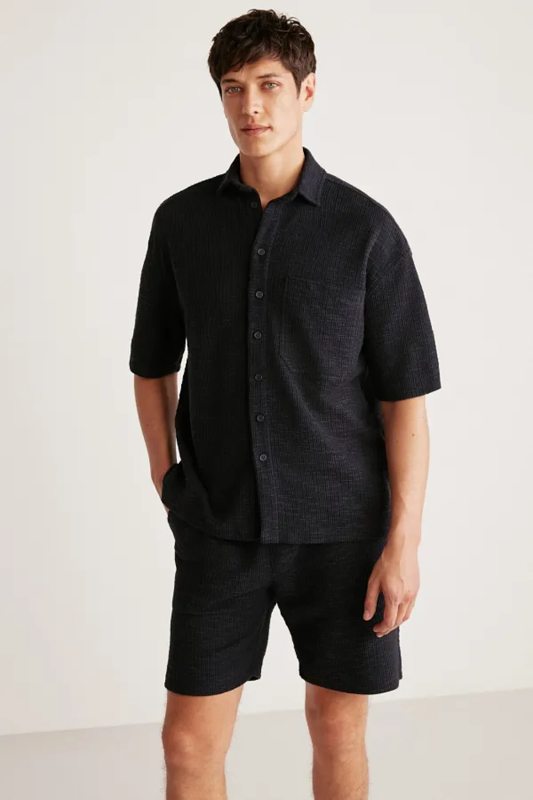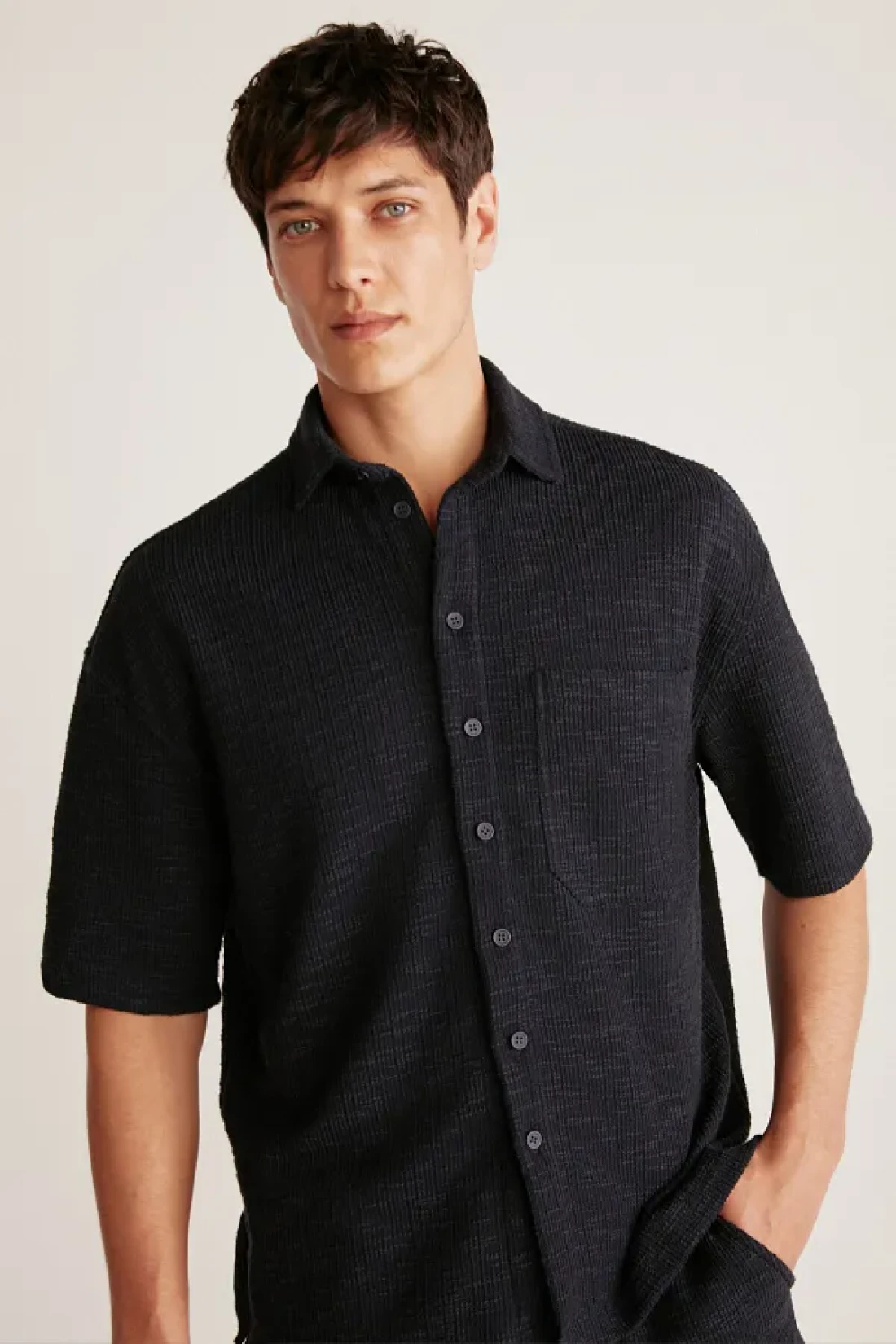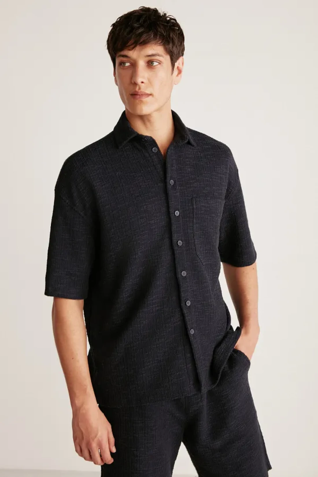 It offers practical use with its buttoned closure, and can be easily preferred in casual environments. Reflecting the dynamic spirit of the young collection, this shirt is ideal for those seeking a youthful and modern style