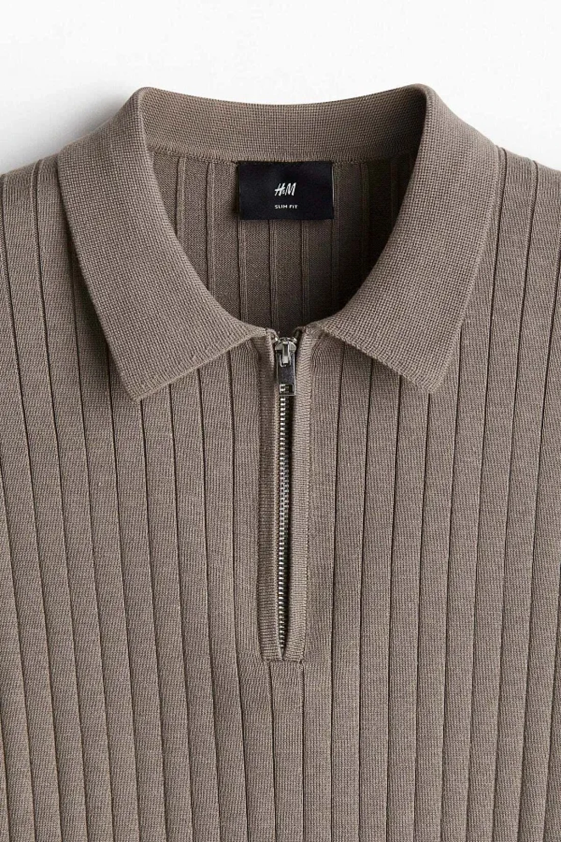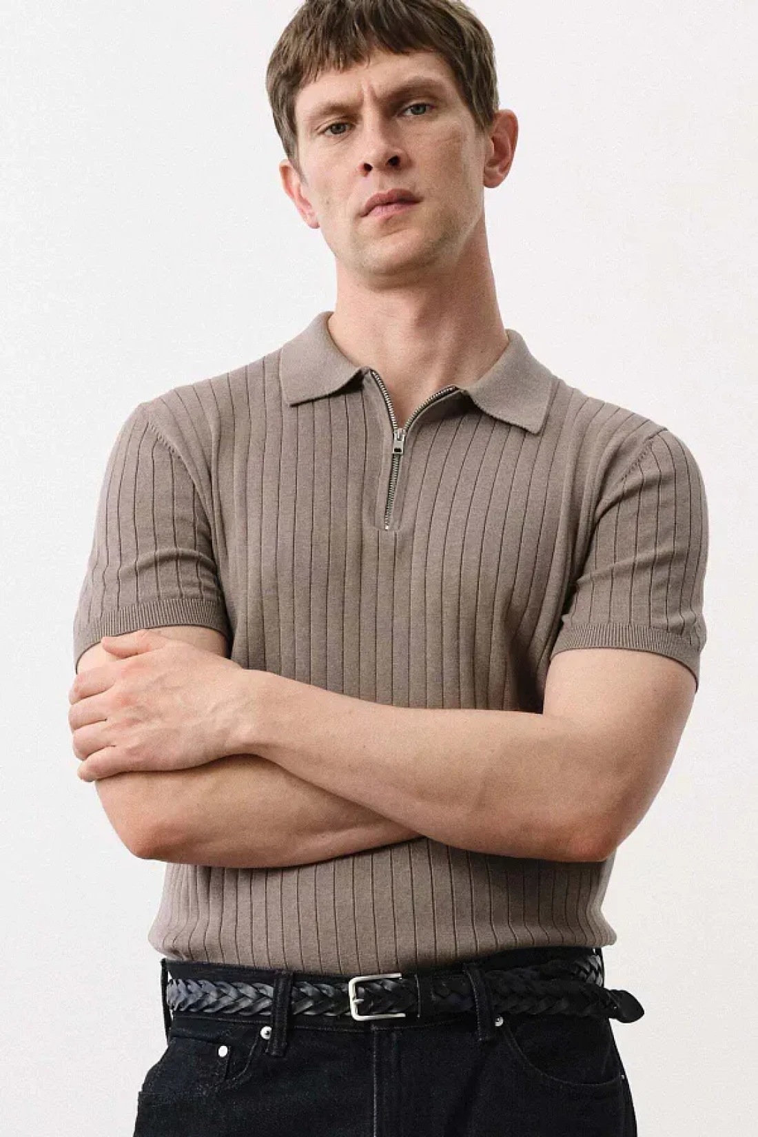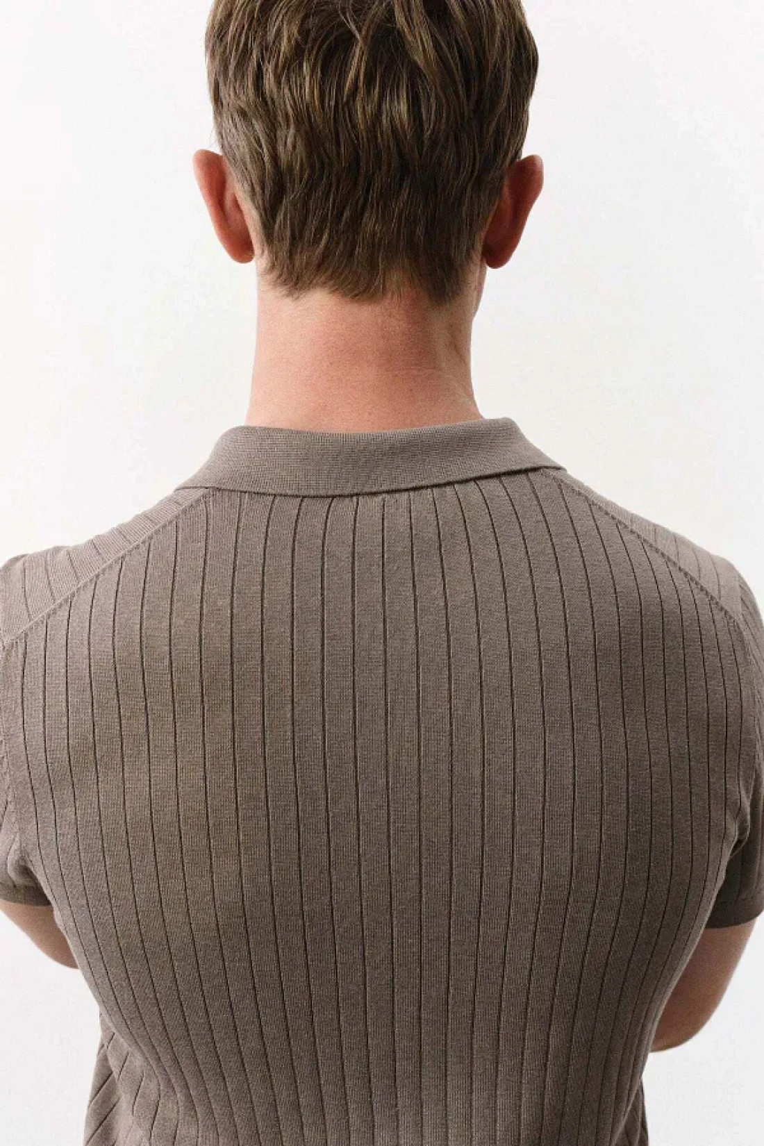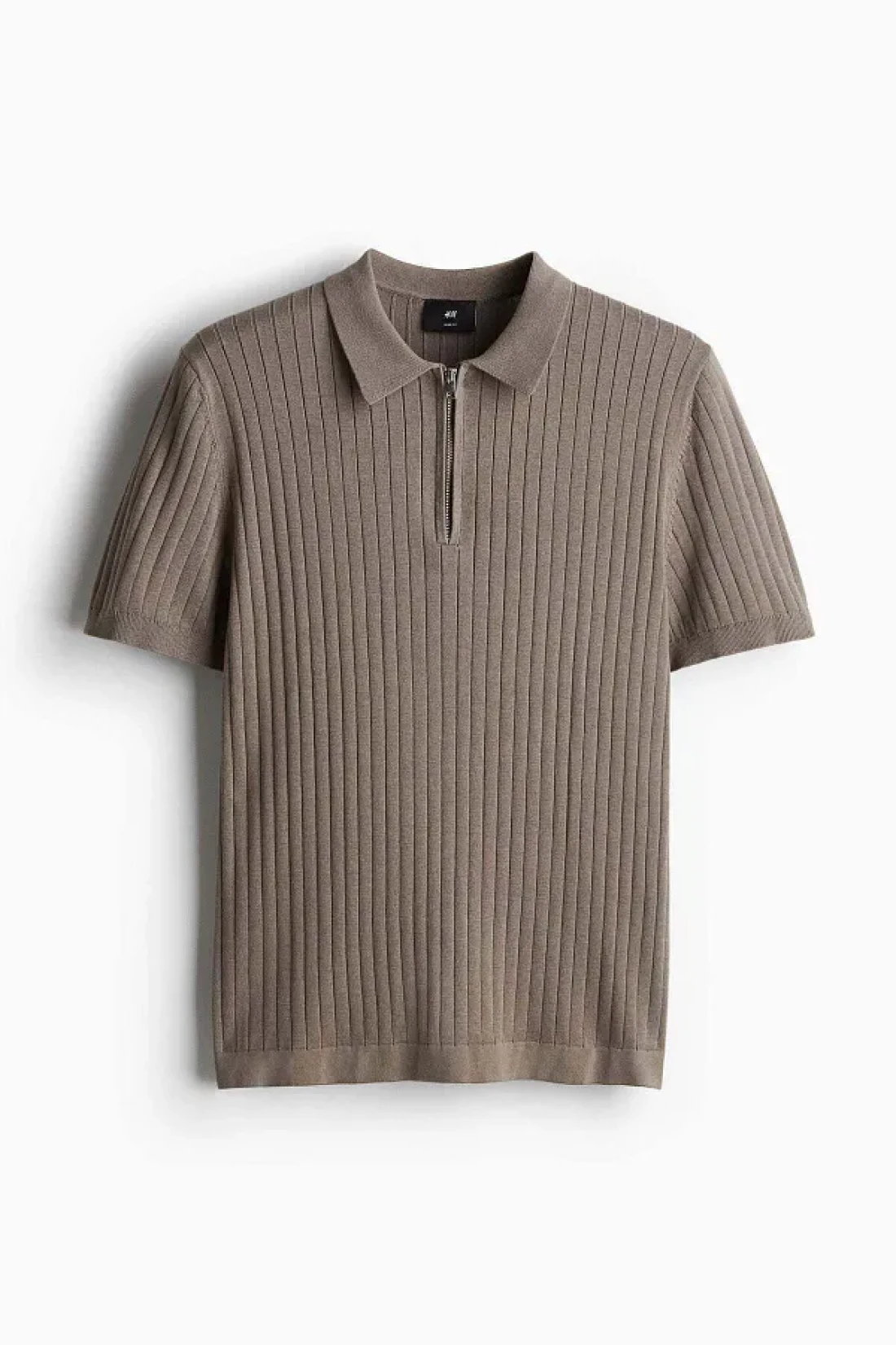 Polo shirt in a rib knit made fom a cotton blend with a collar, short sleeves and a zip at the top.