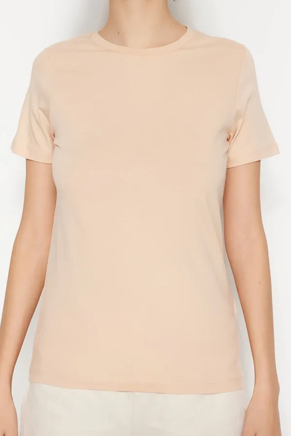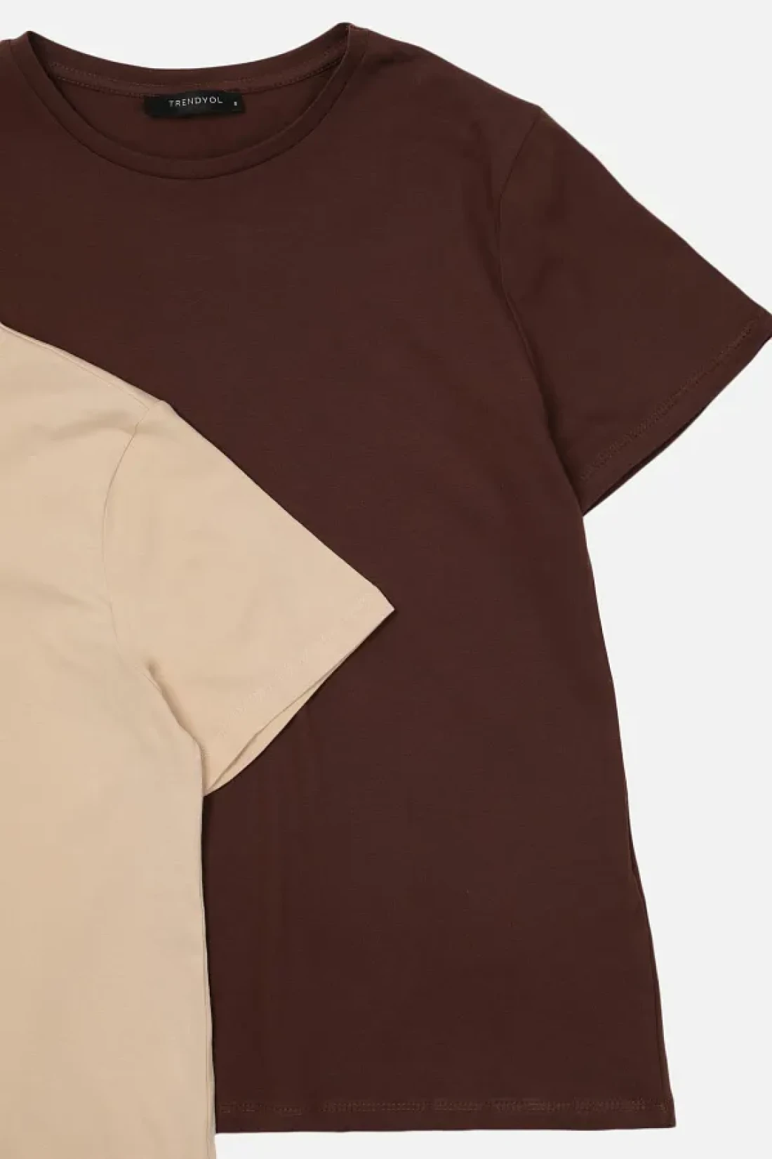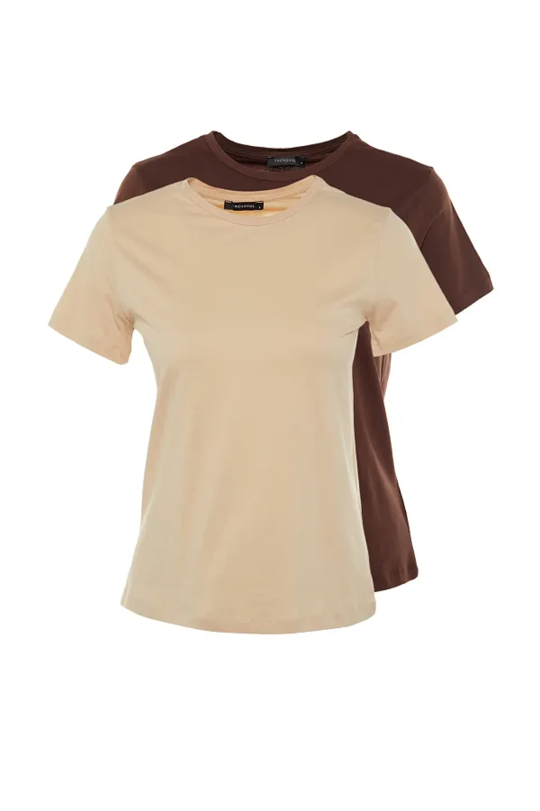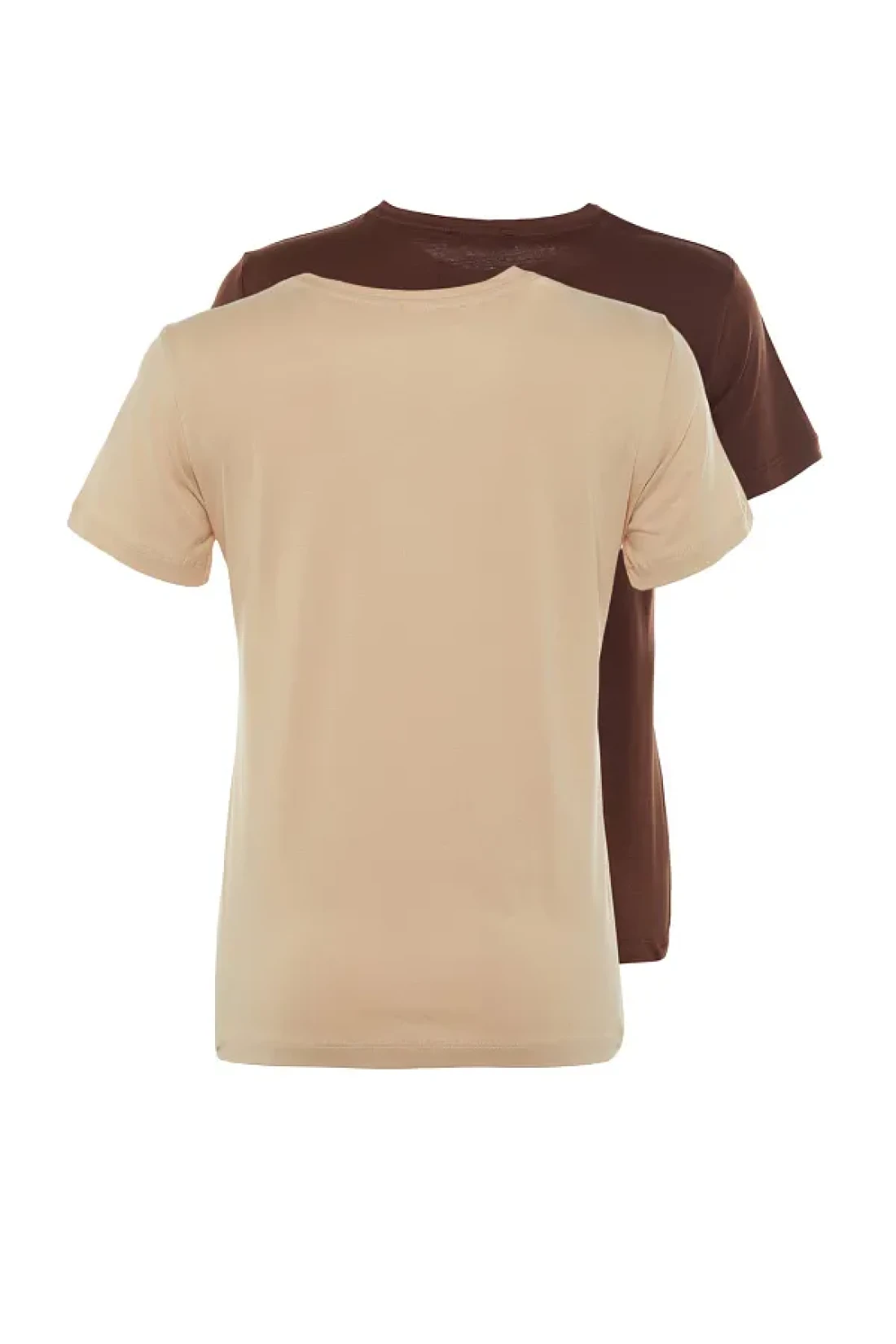 Collection Brown-Beige 100% Cotton 2-Pack Basic Crew Neck Knitted T-Shirt TWOSS20TS0141