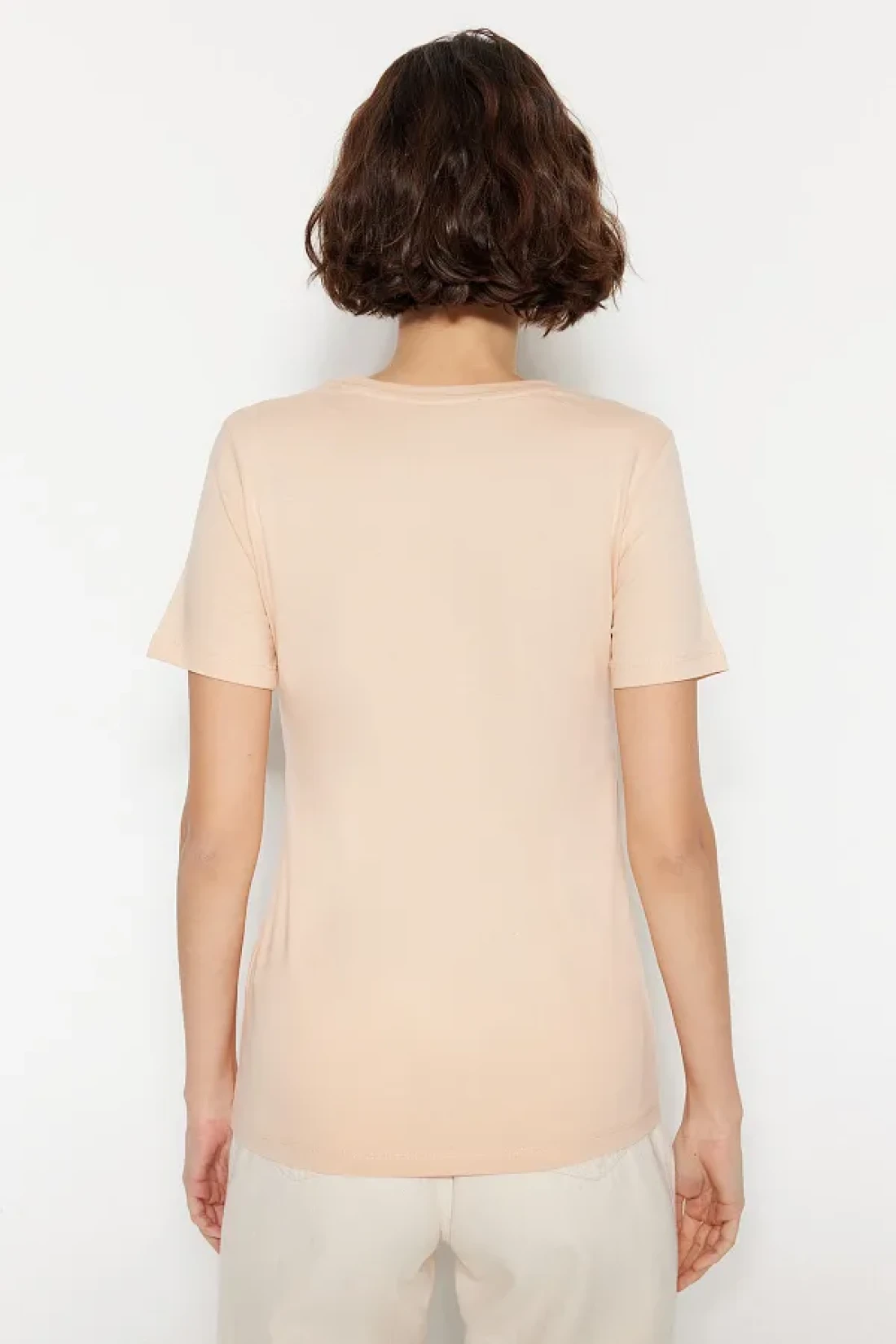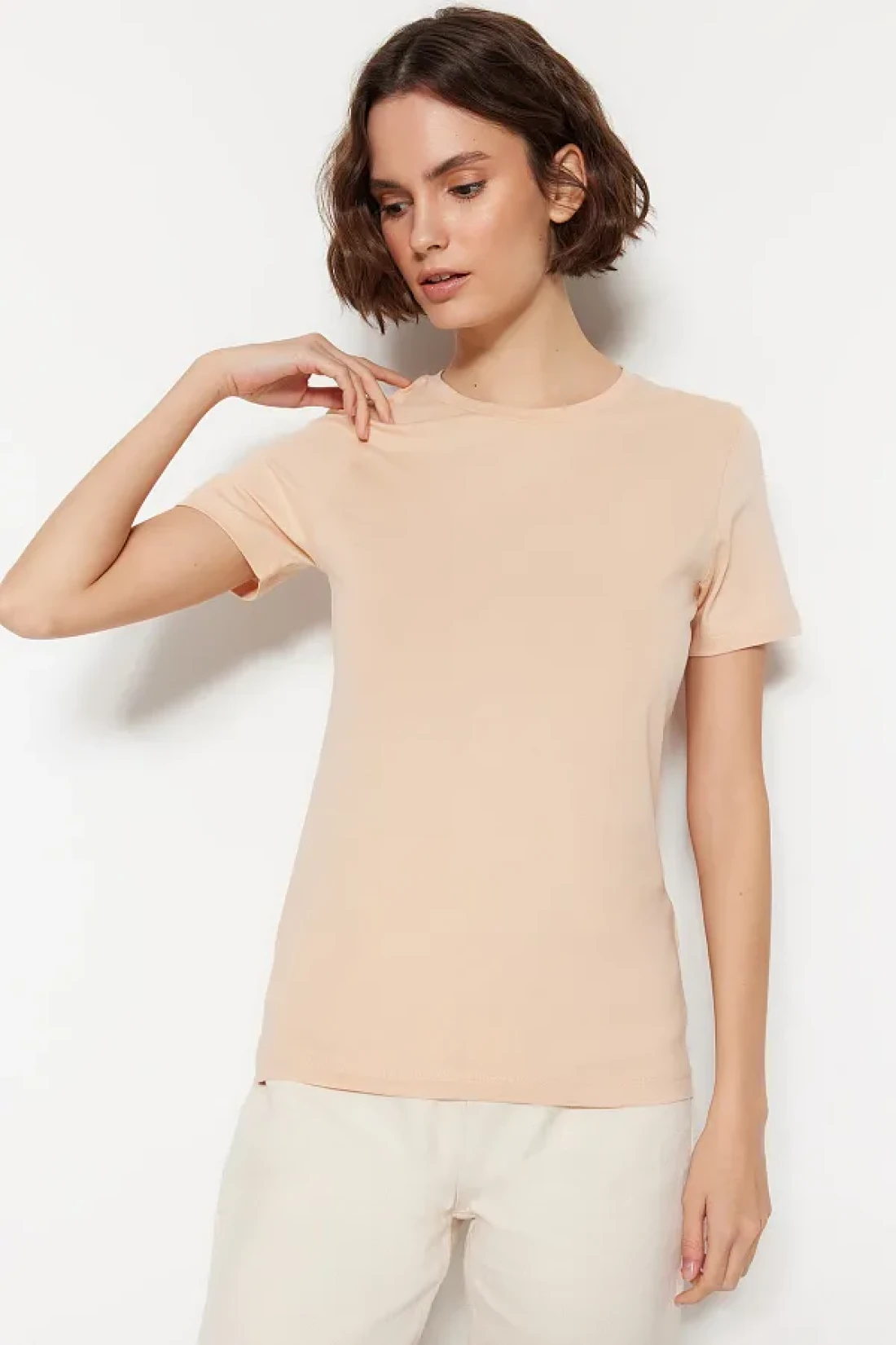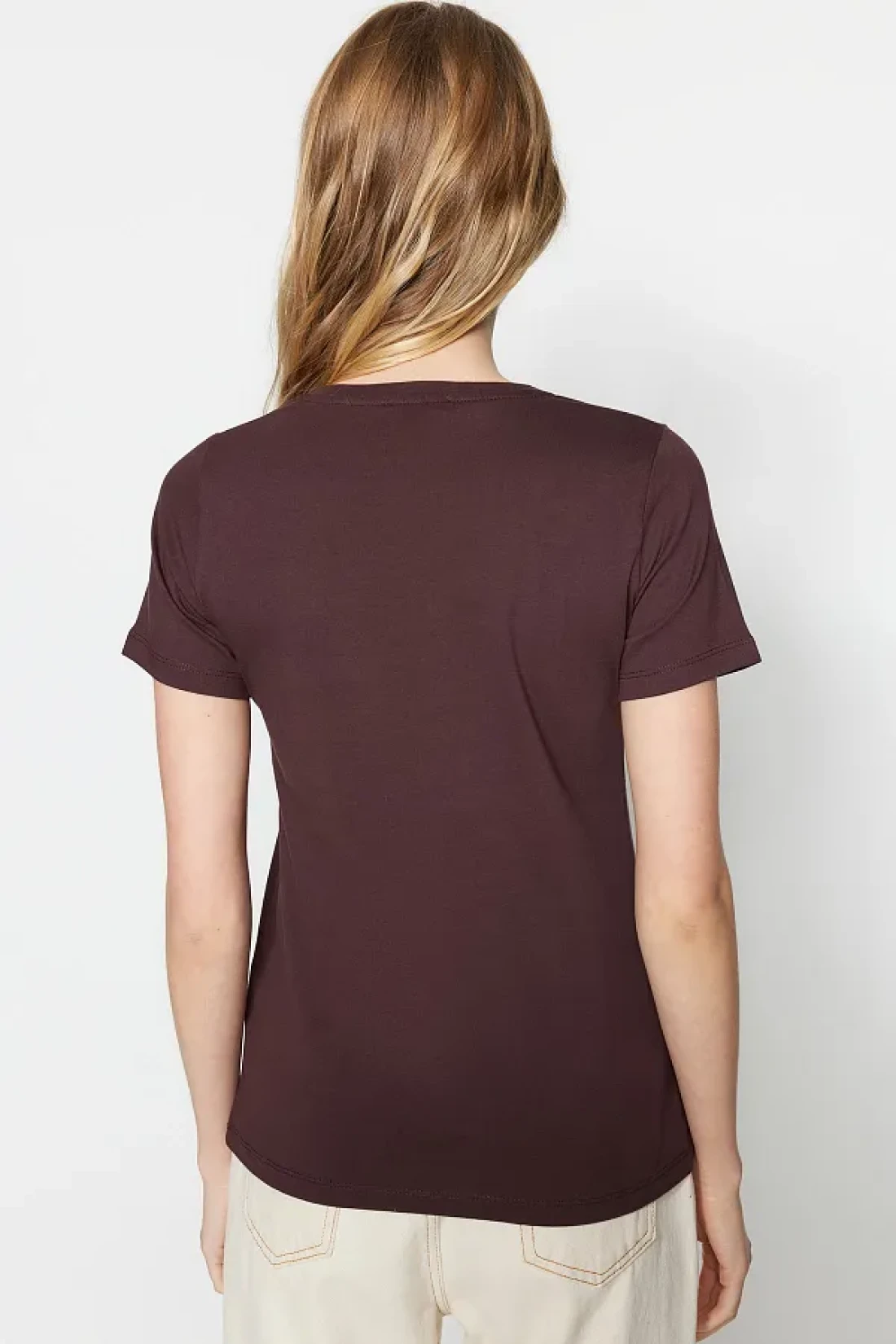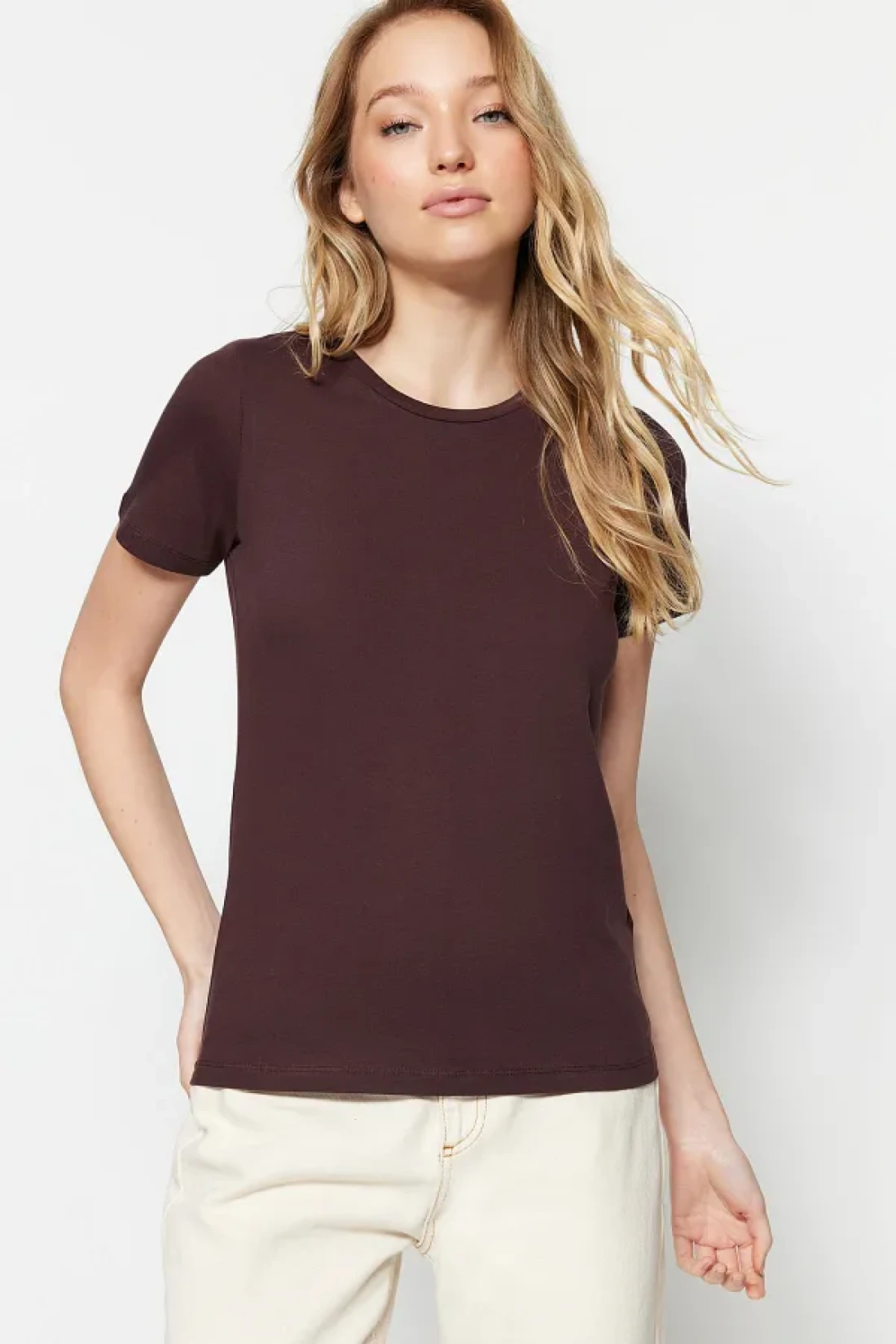 Collection Brown-Beige 100% Cotton 2-Pack Basic Crew Neck Knitted T-Shirt TWOSS20TS0141