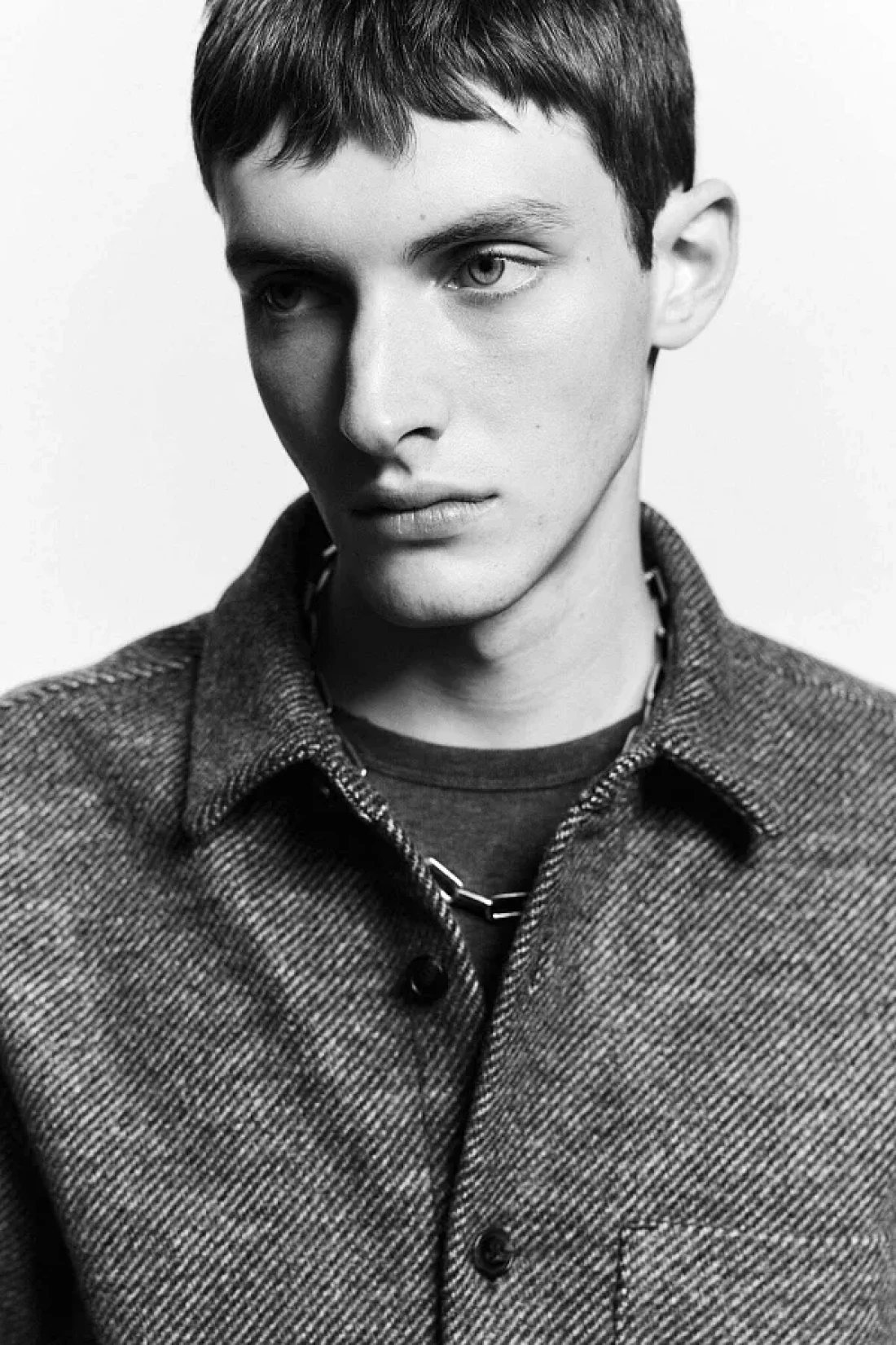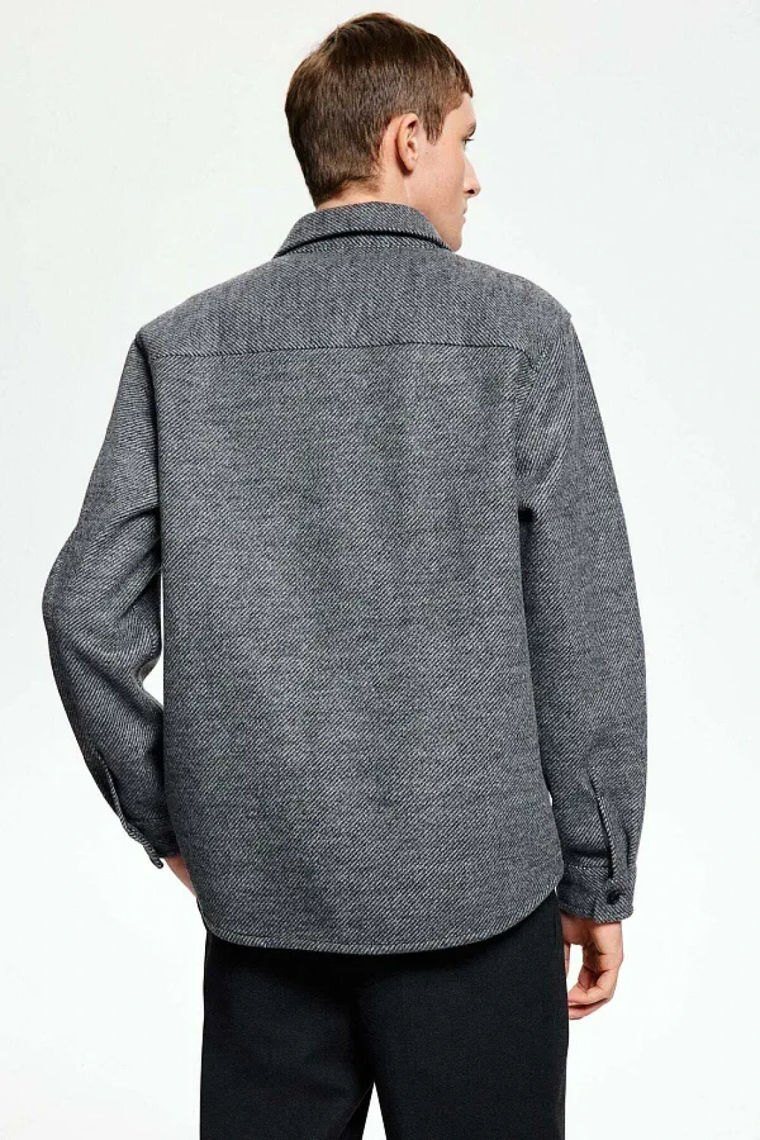 Overshirt in a soft weave with a turn-down collar, French front, an open chest pocket, a yoke at the back, long sleeves with buttoned cuffs and a straight-cut hem.