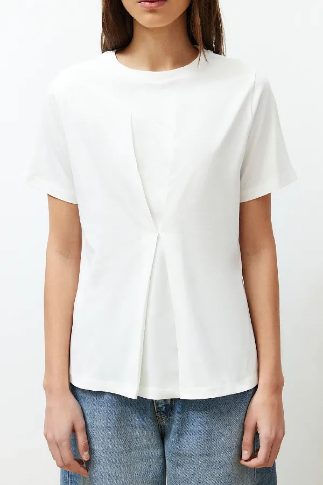 Collection Ecru Front Pleat Detailed Regular/Normal Fit Crew Neck Knitted Blouse Twoss24Bz00302