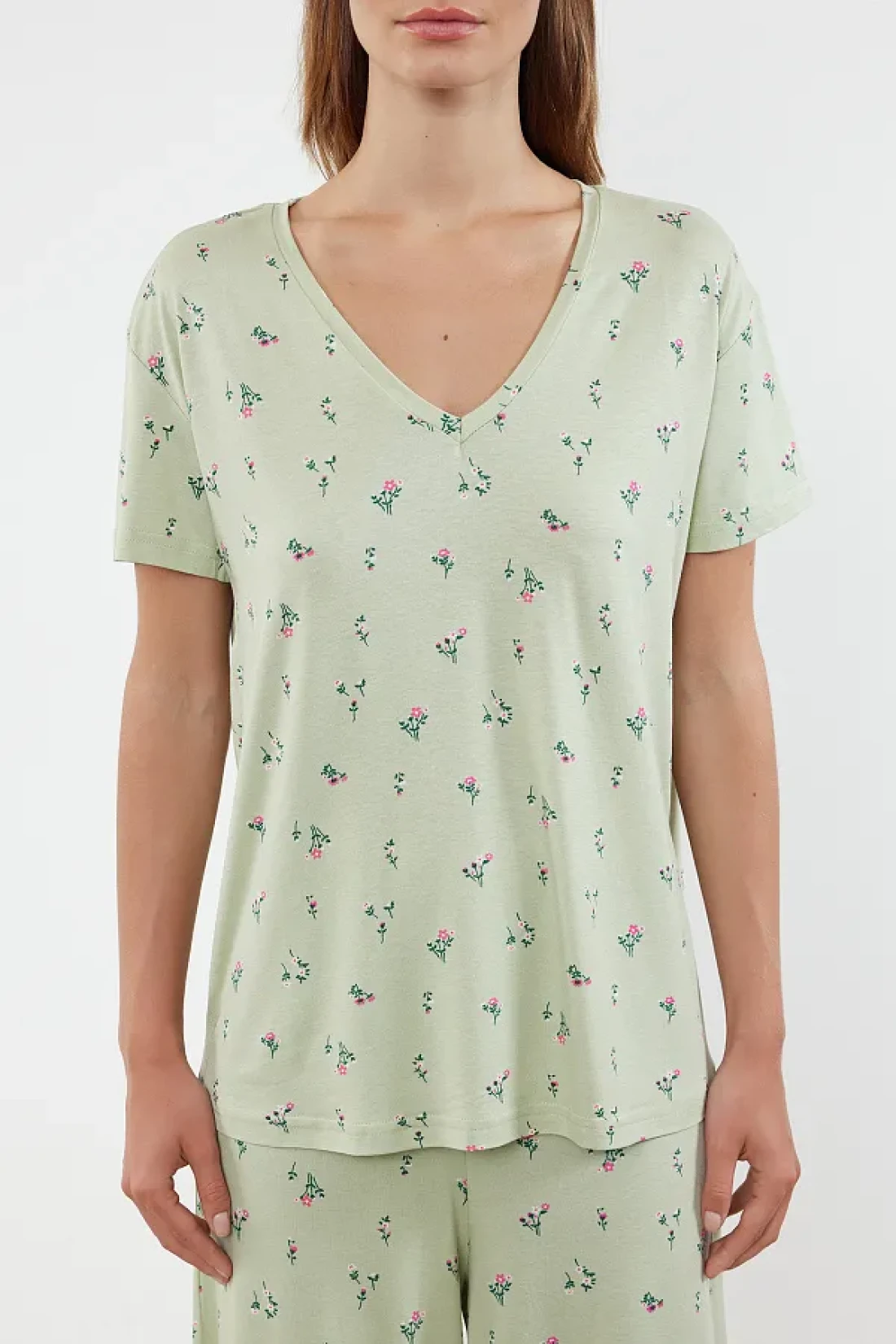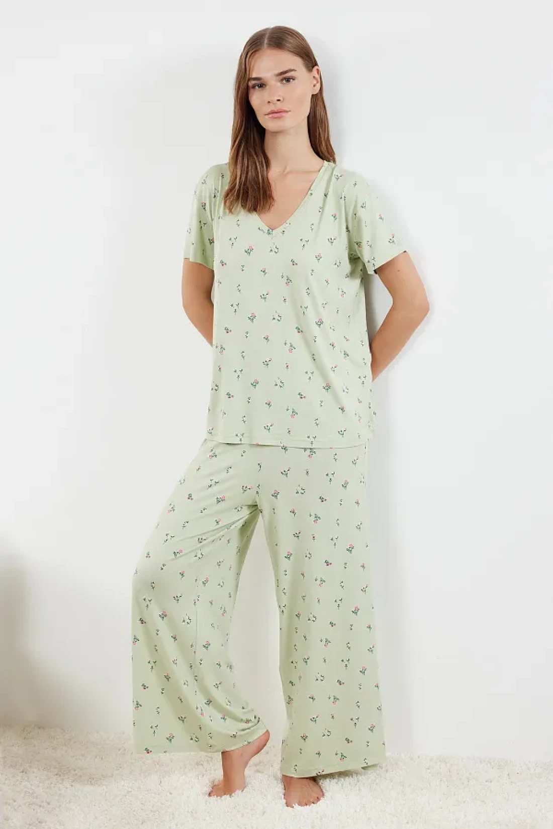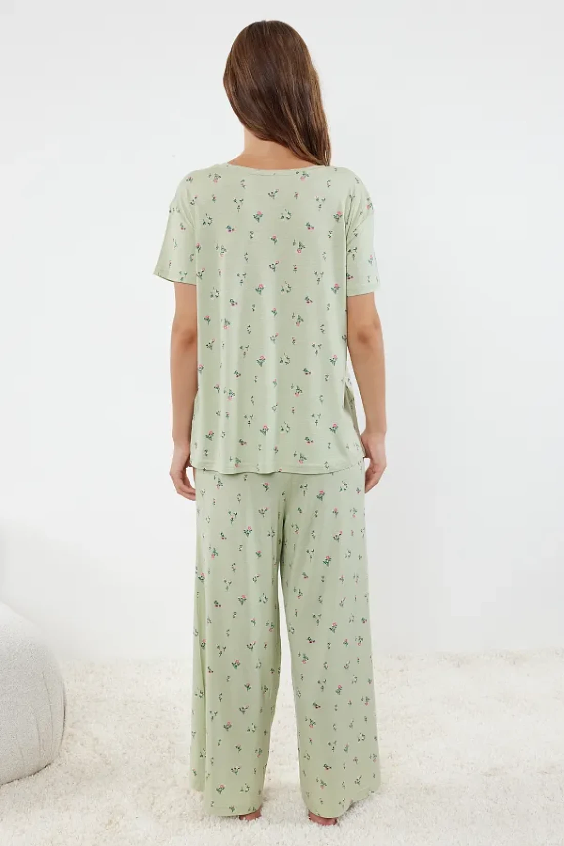 Collection Colorful Flower Patterned Mint Knitted Pajamas Set - THMSS24PT00231