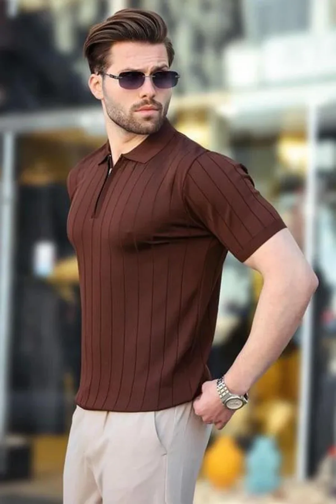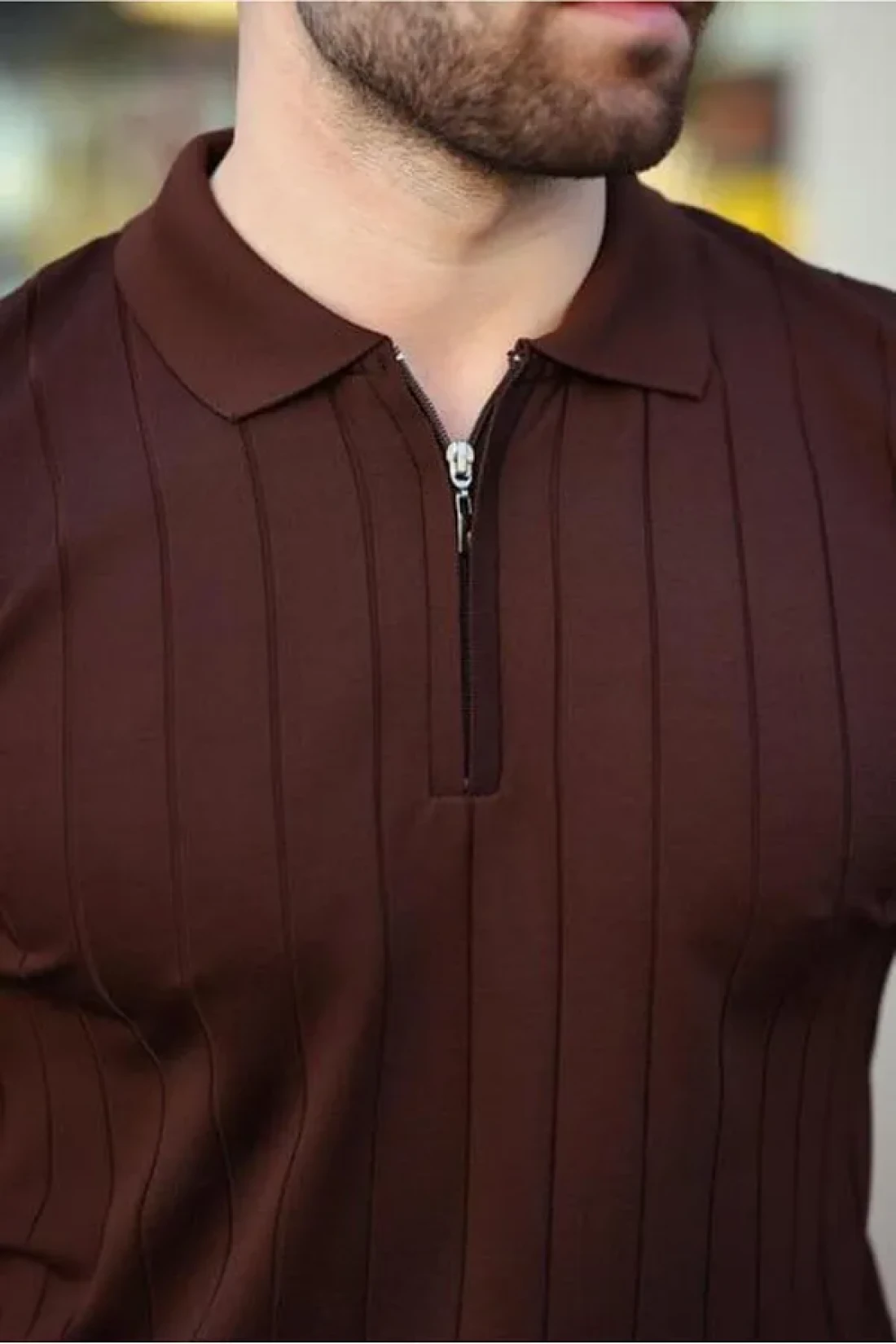 ribana Polo Neck Striped Zippered Men's T-Shirt