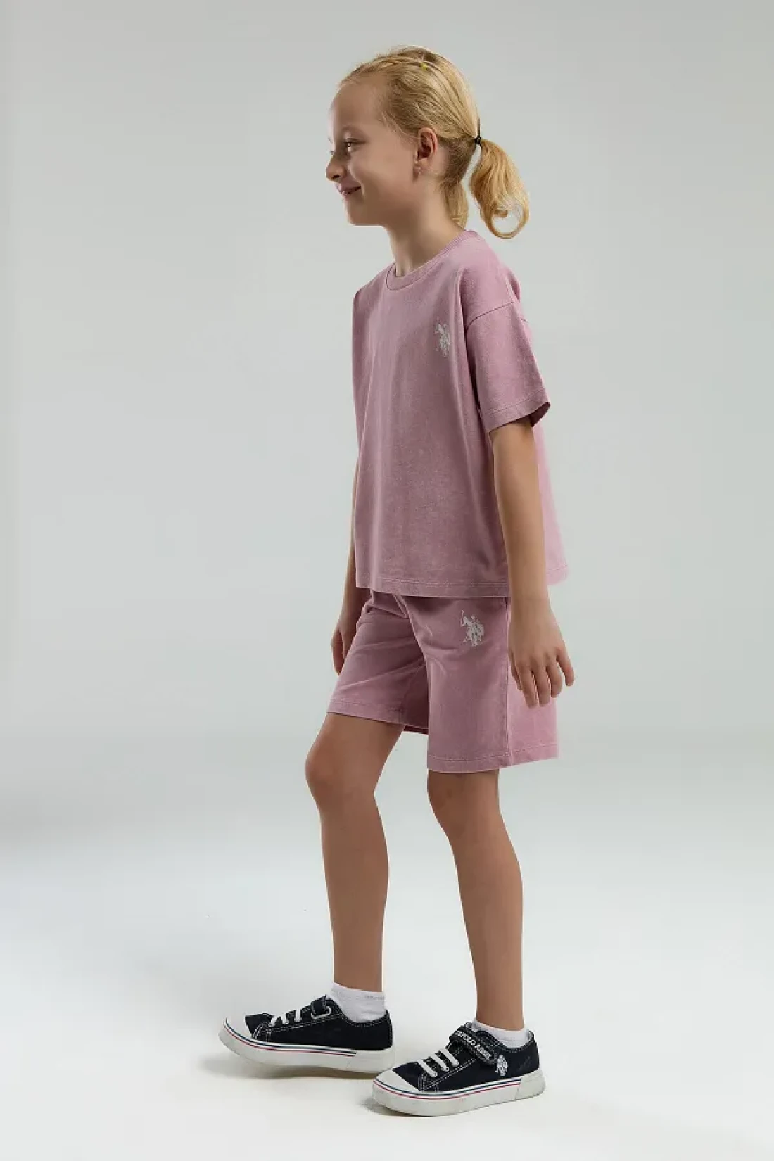polo assn. Girl's pink bermuda set