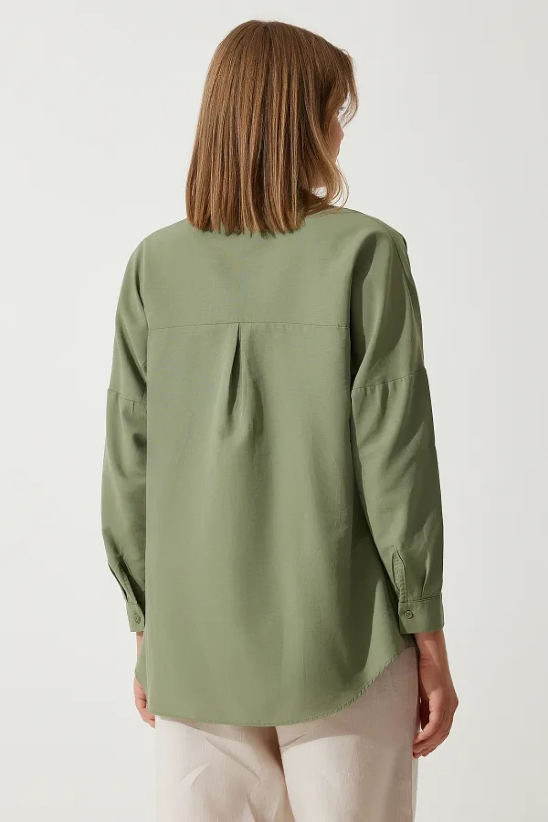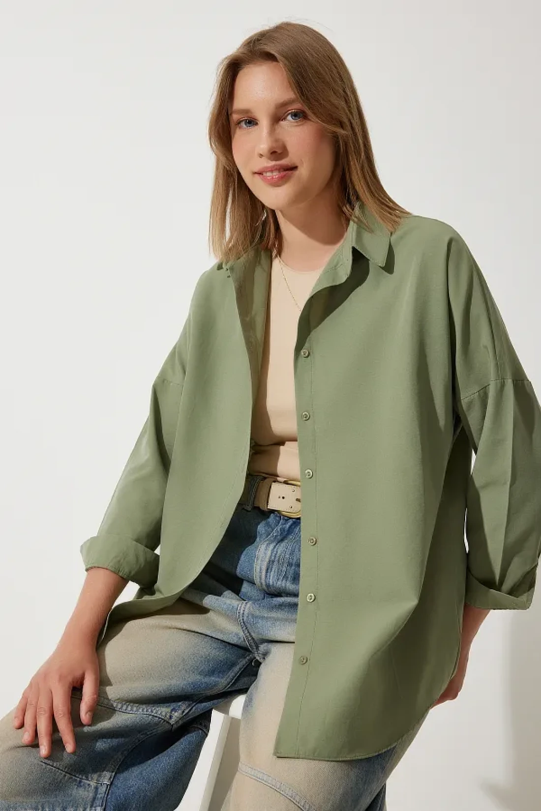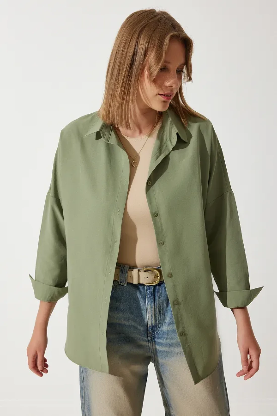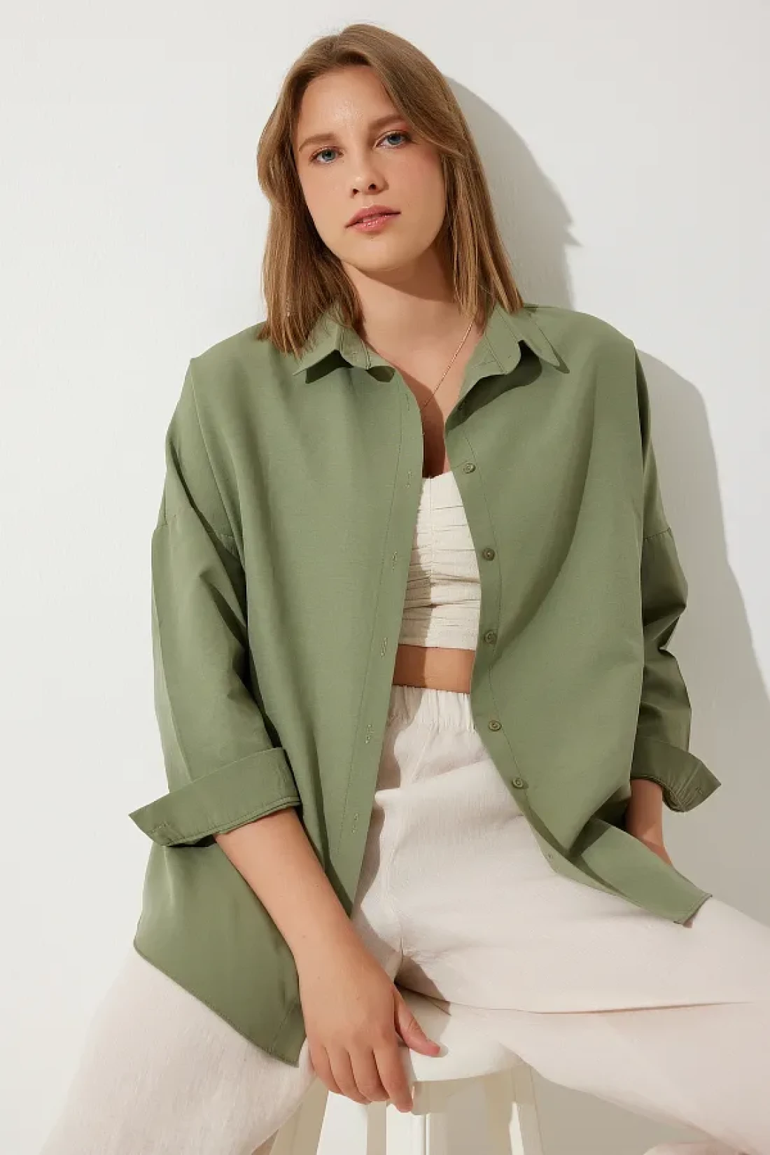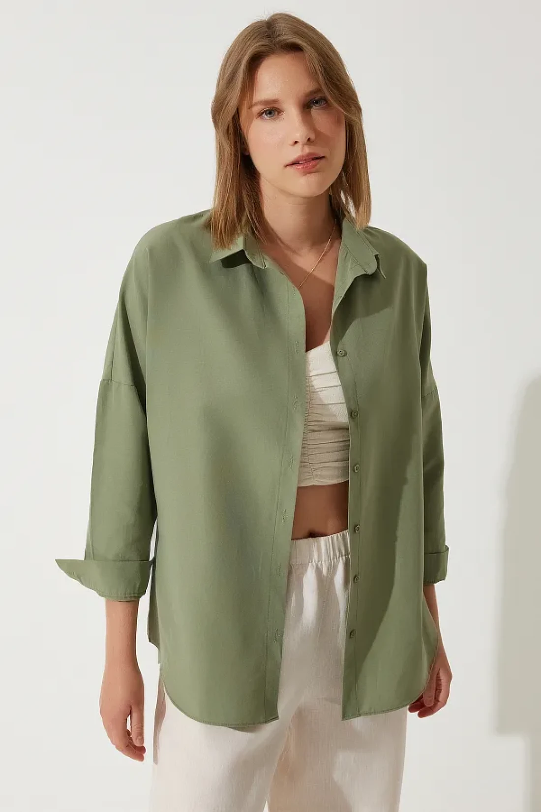 Happiness İstanbul Women's Khaki Oversize Long Basic Shirt DD00842