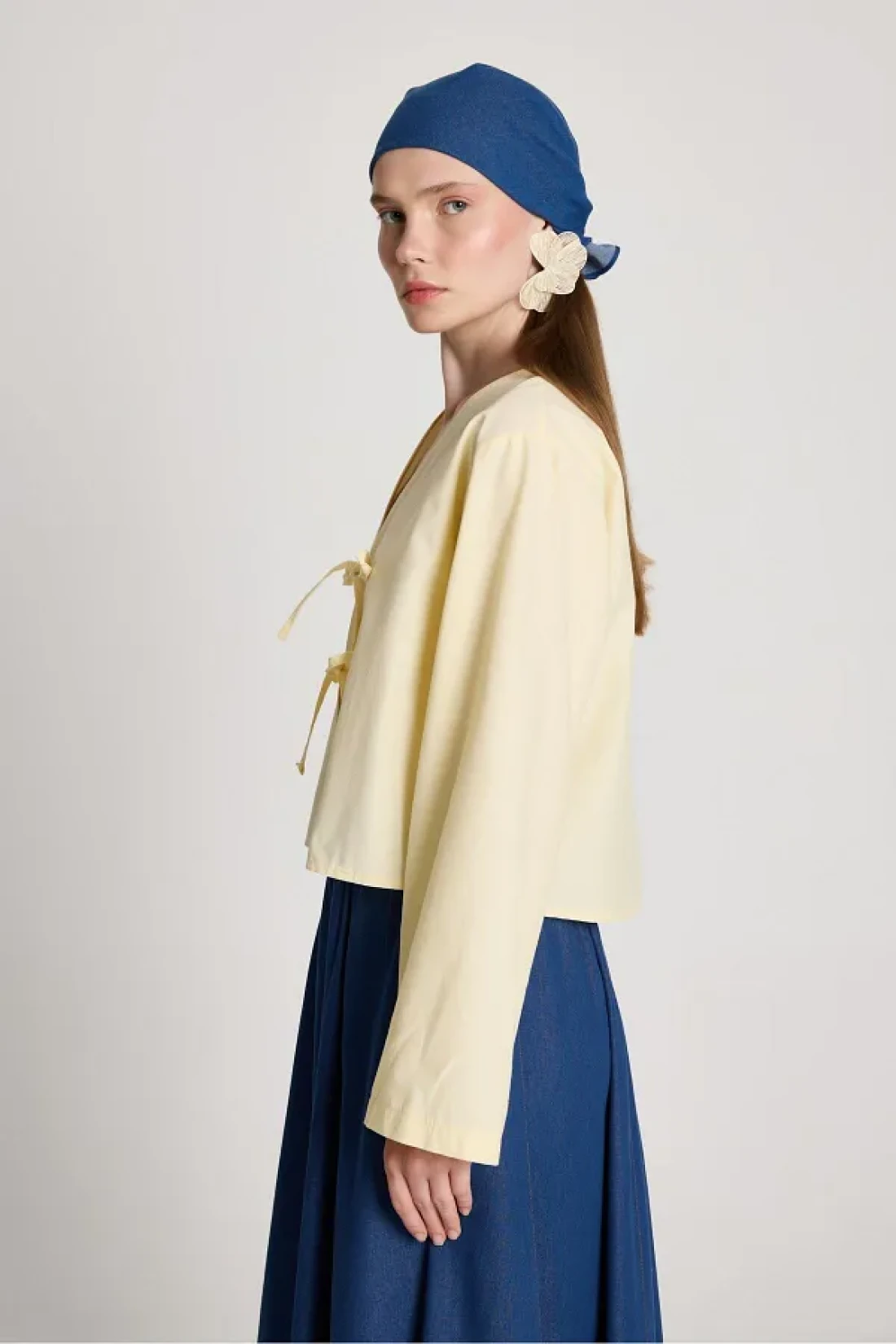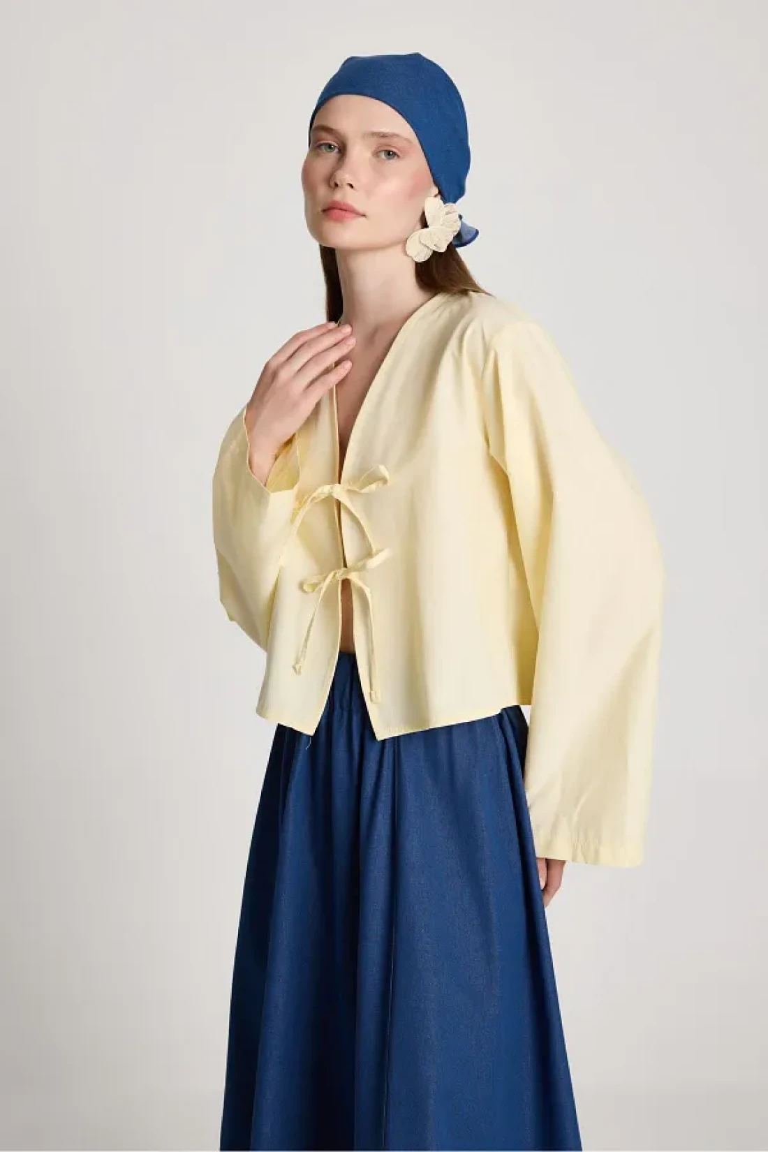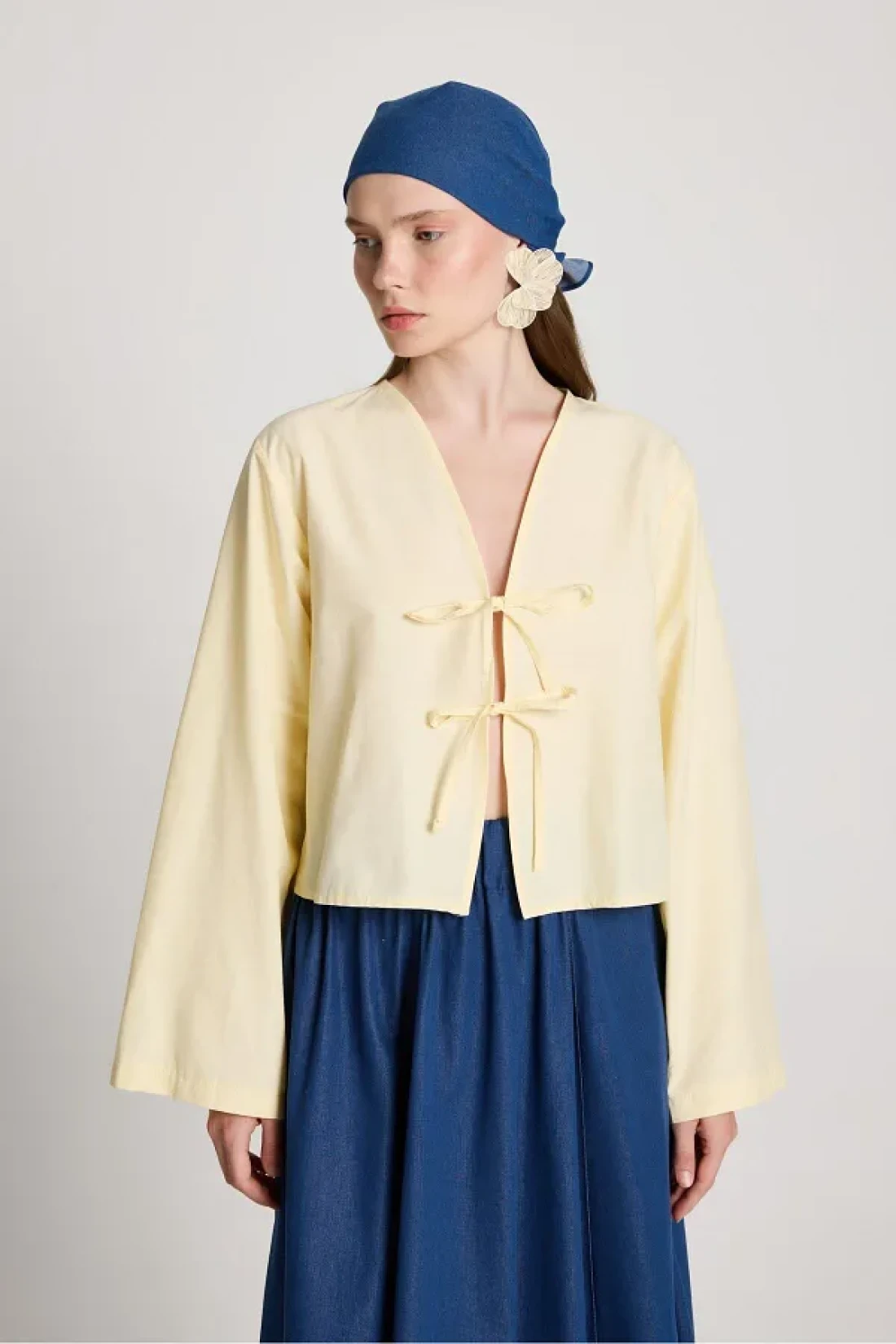 minaaise Women's Yellow Poplin Front Tie Blouse 29085