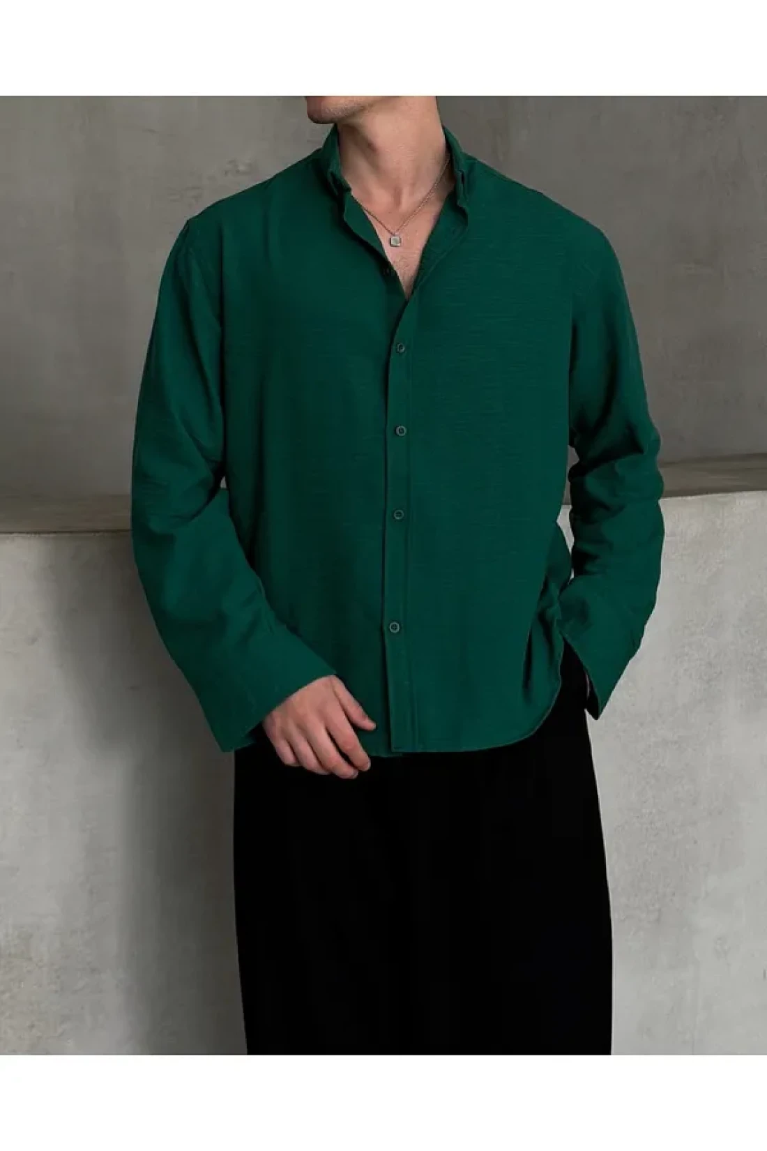 - Oversized linen shirt suitable for daily use with its comfortable cut. Thanks to its aerobin texture, it has a structure that keeps cool and allows breathing.