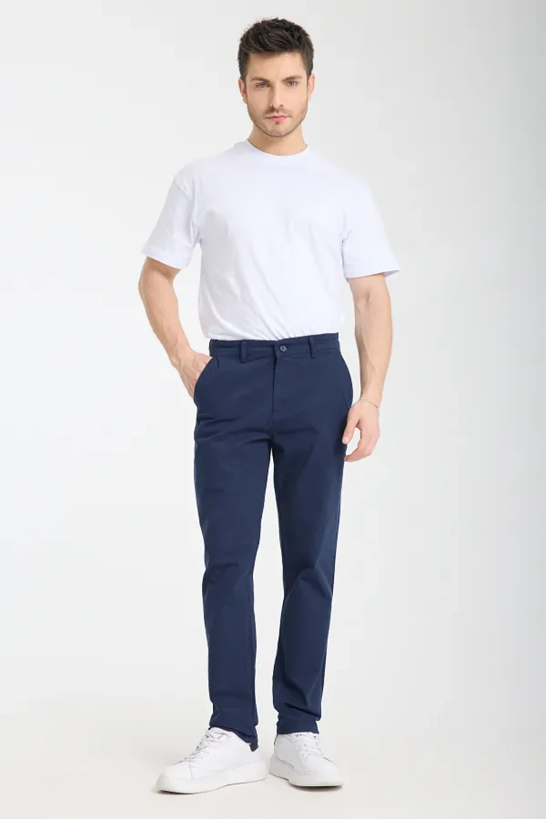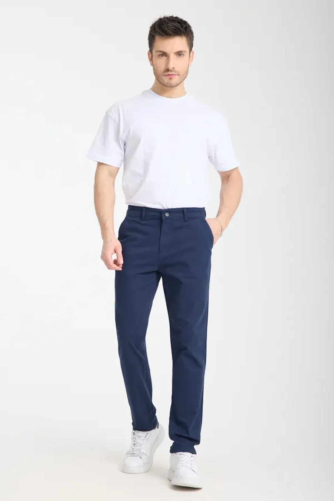Collection Navy Blue Regular Fit Basic Chino Flexible Gabardine Pants Tmnss25Pl00019