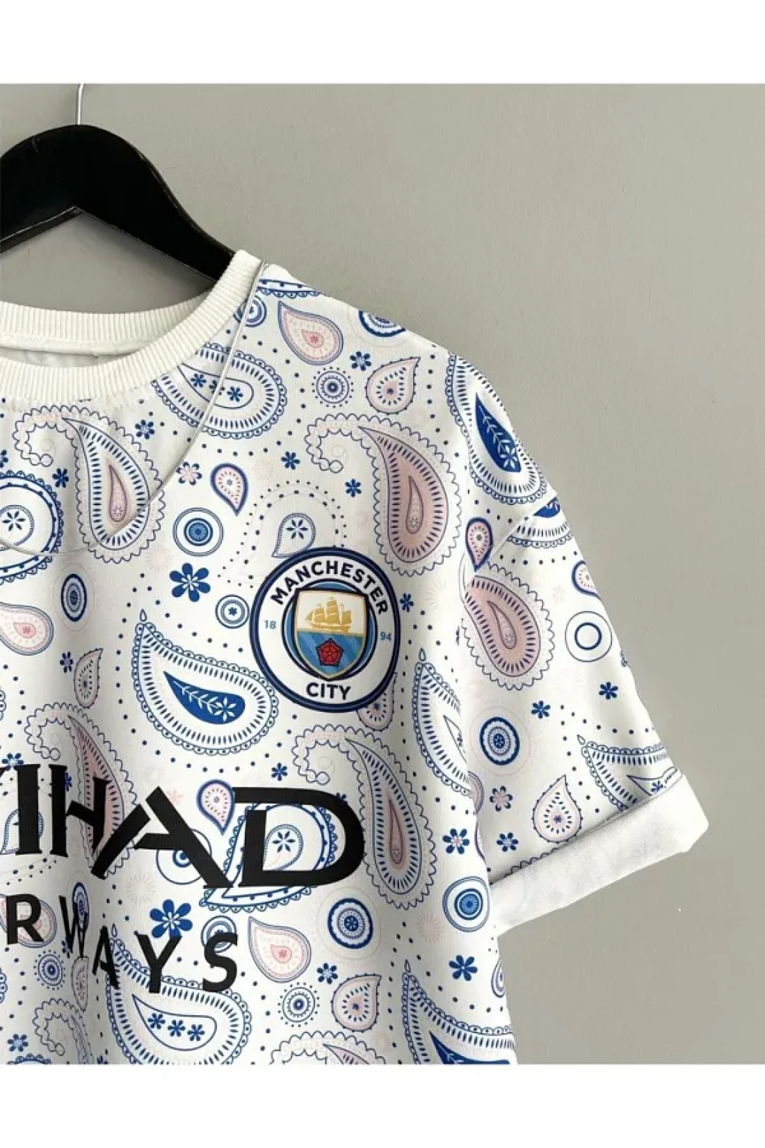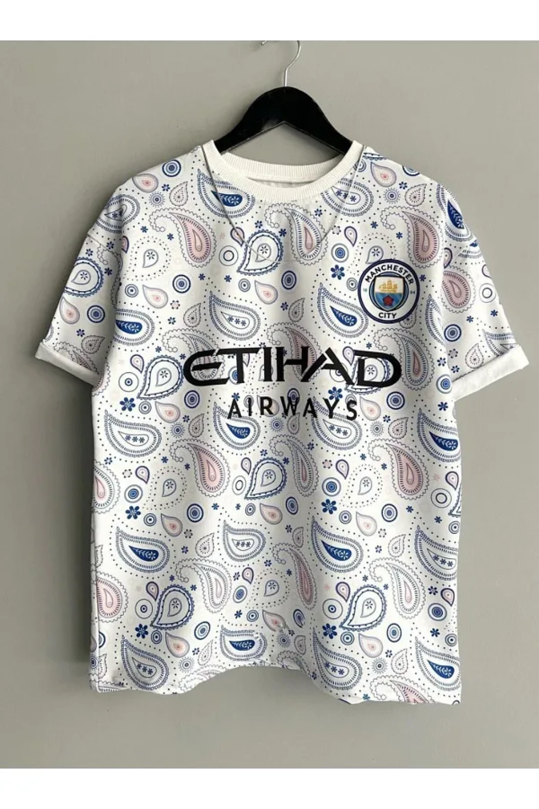 Black Sokak Blacksokak Men's Blue White Manchester City Oversize Crew Neck Tshirt