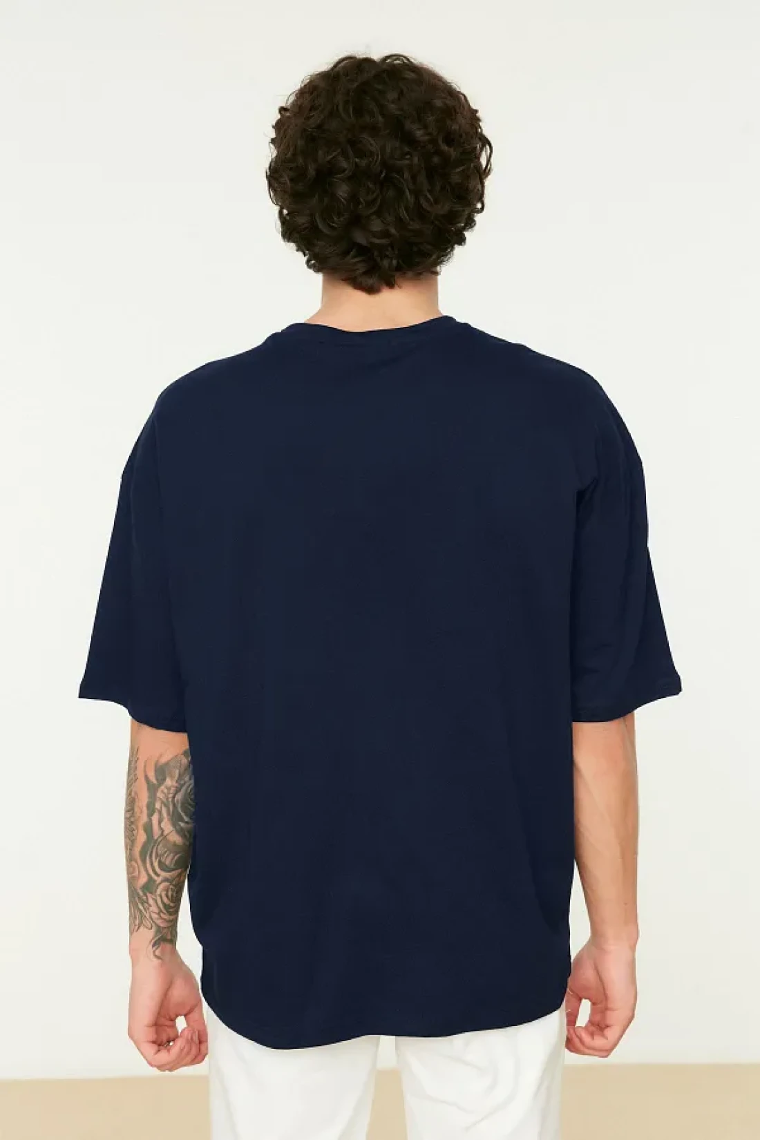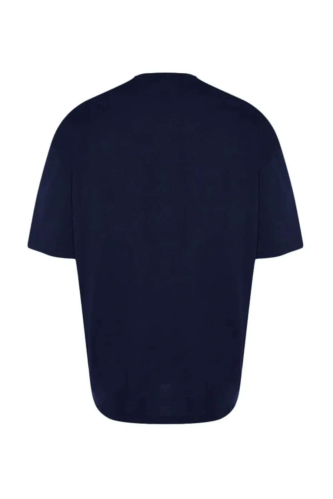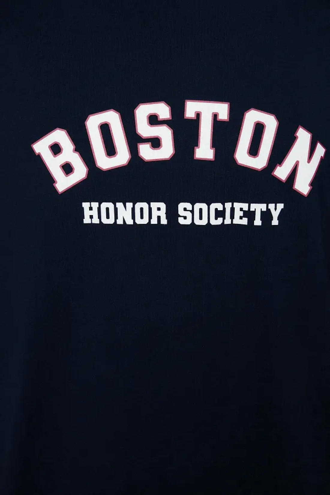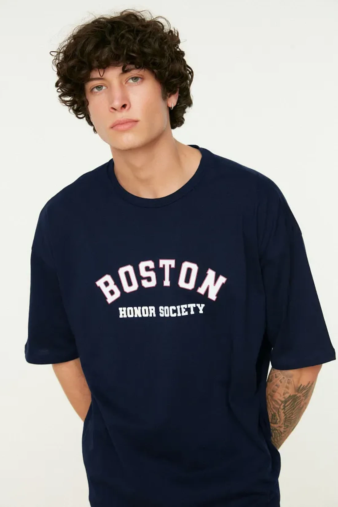 Collection Navy Blue Oversize Socks, Short Sleeve Boston Printed Cotton T-Shirt