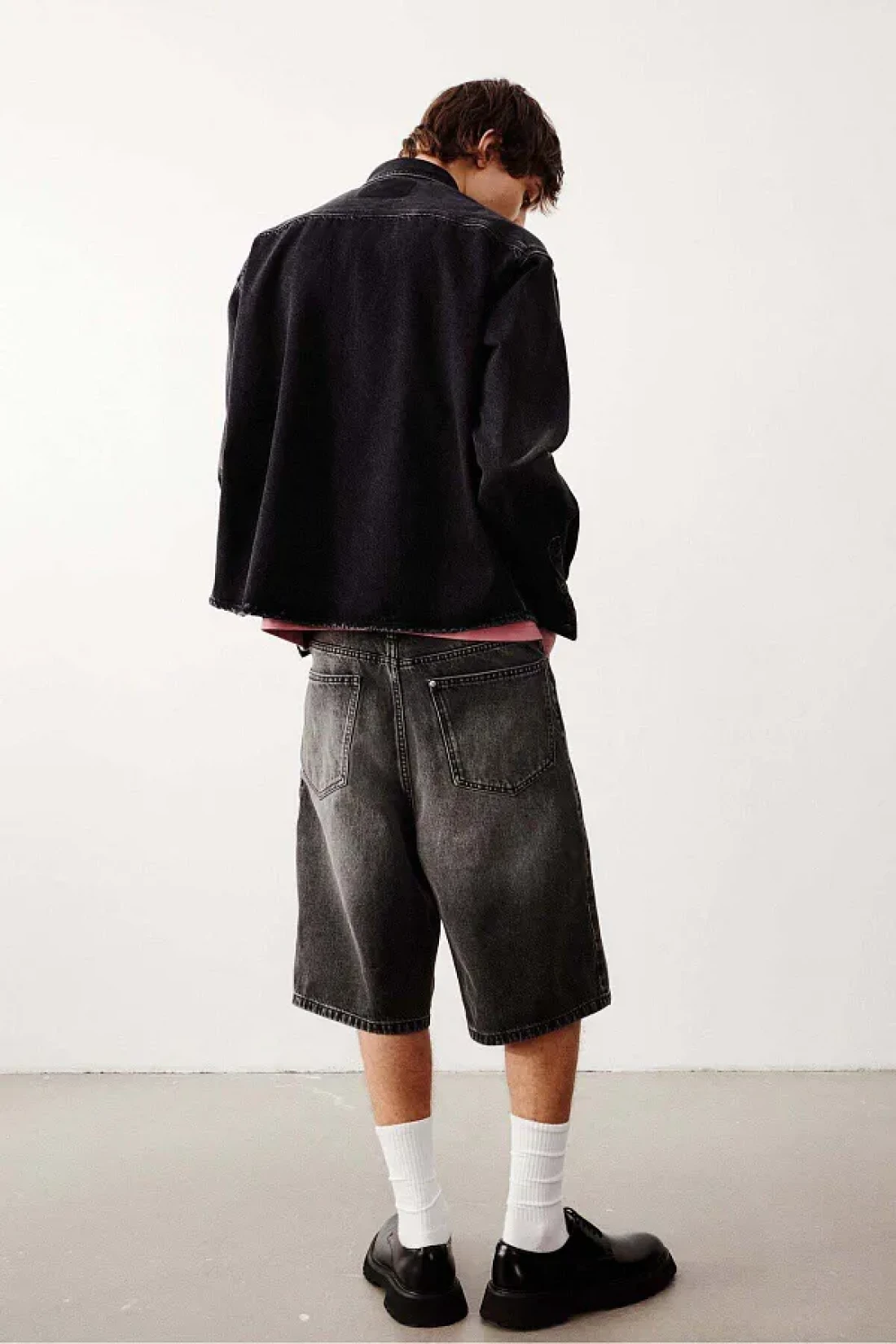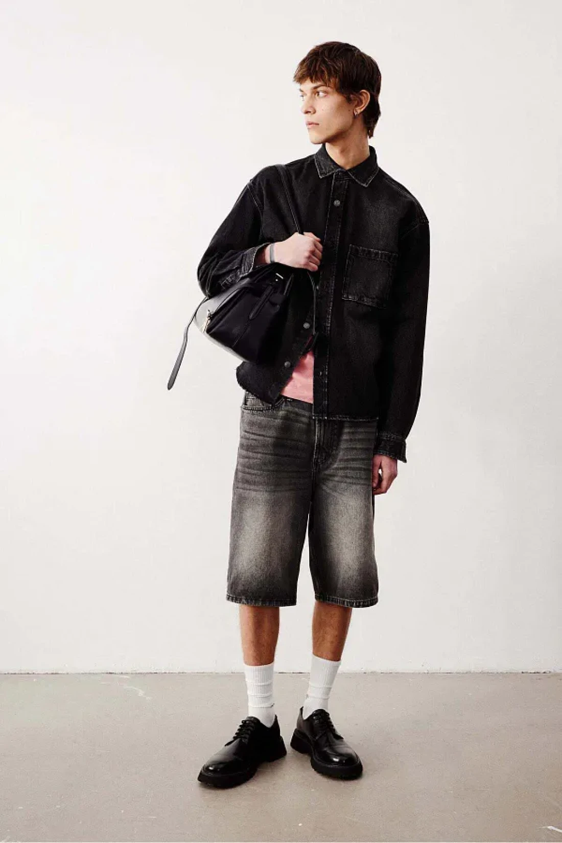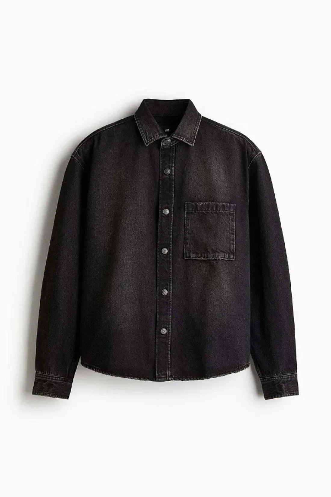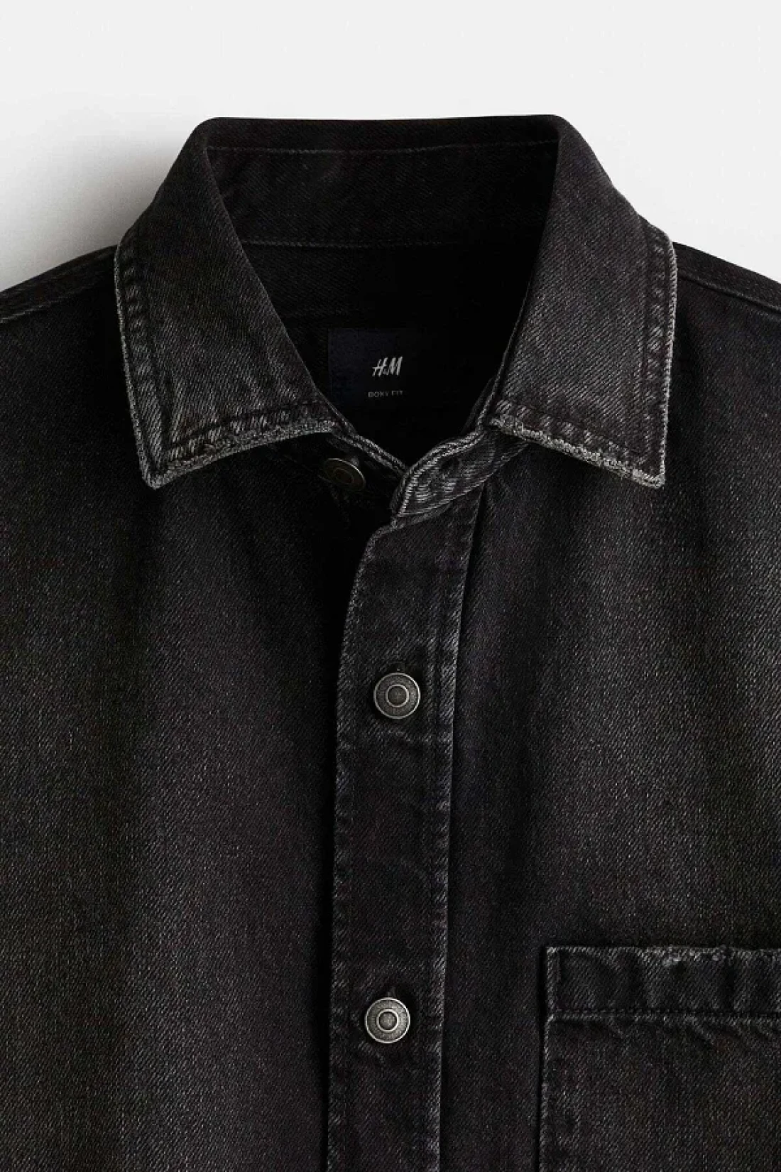 Shirt in rigid cotton denim with a turn-down collar, metal buttons down the front, a yoke at the back and a patch chest pocket.