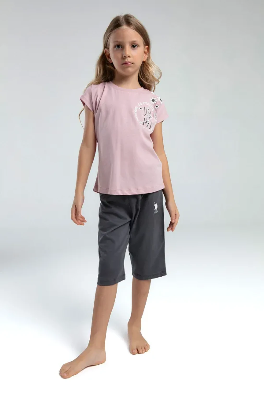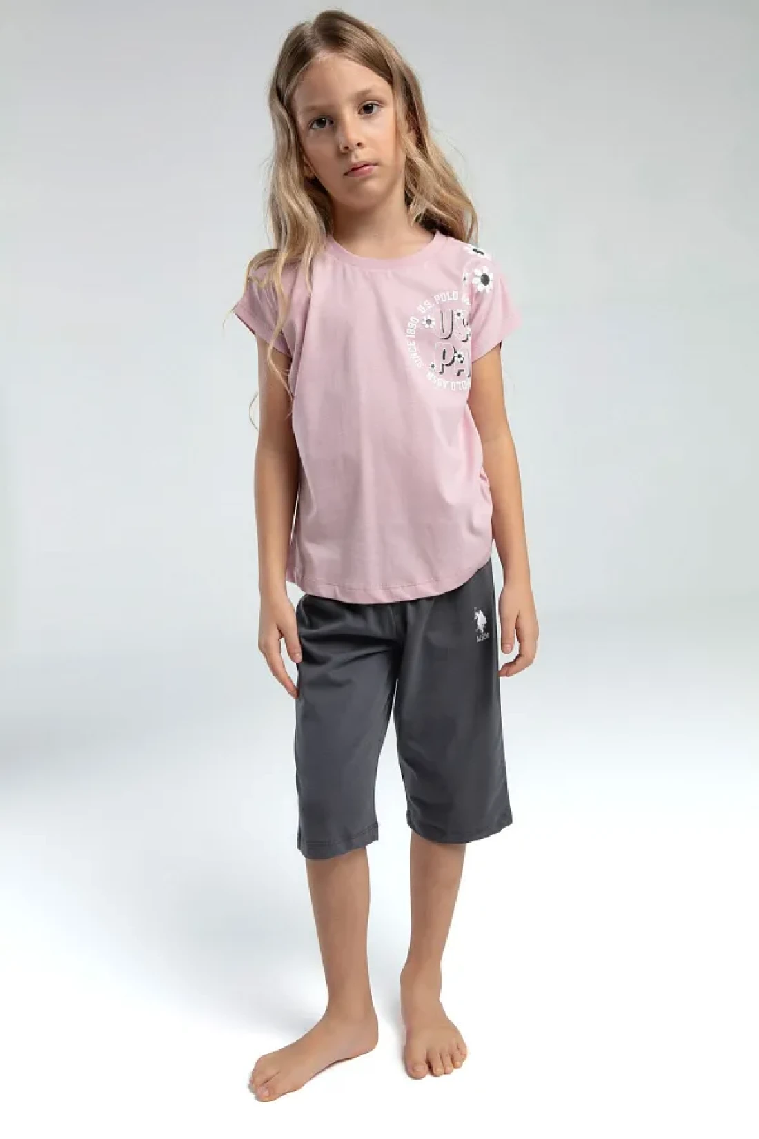 polo assn. Girl's pink capri set