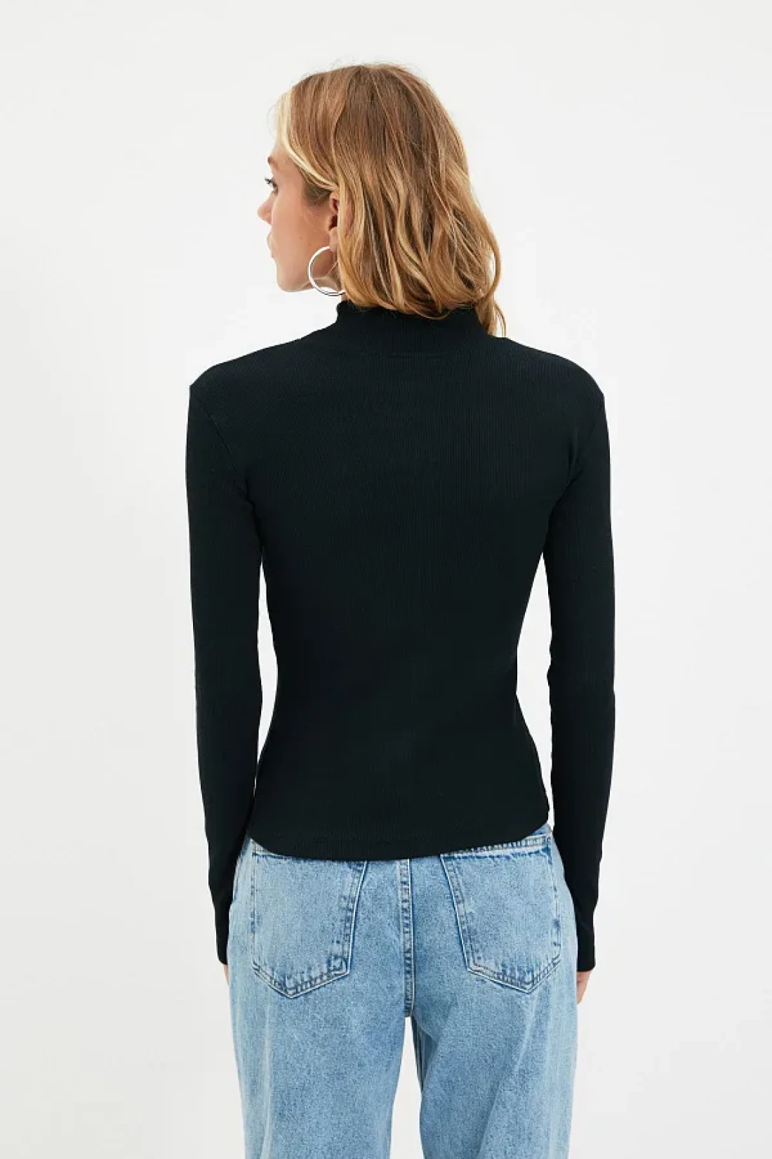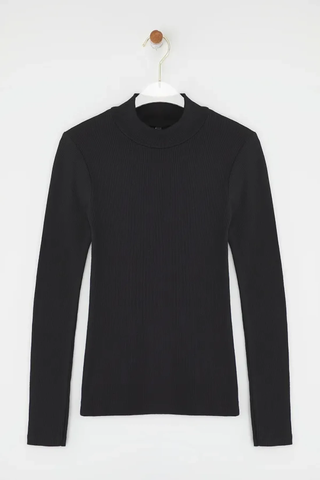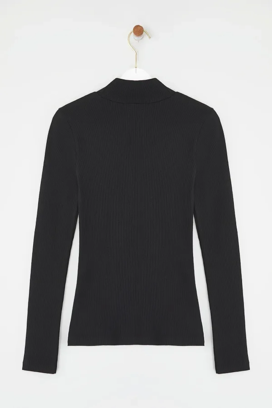 Collection Black Fitted High Collar Long Sleeve Ribbed Stretchy Knitted Blouse TWOAW21BZ0423