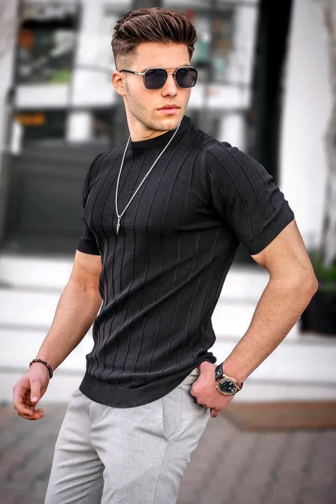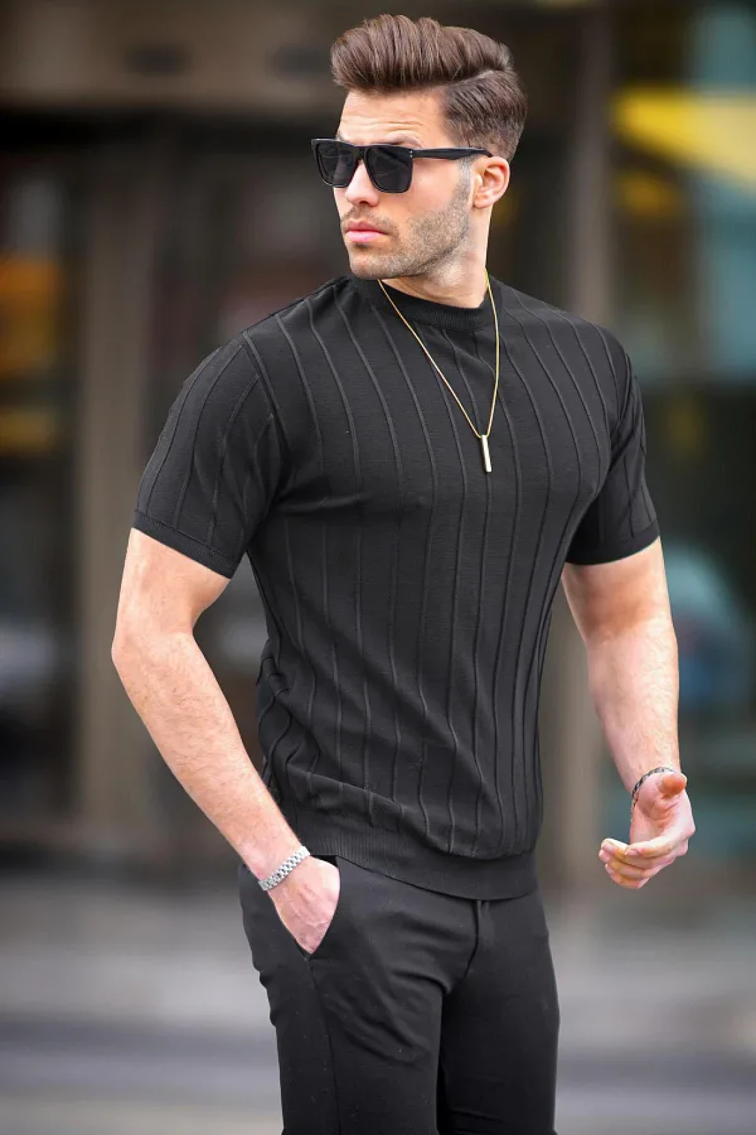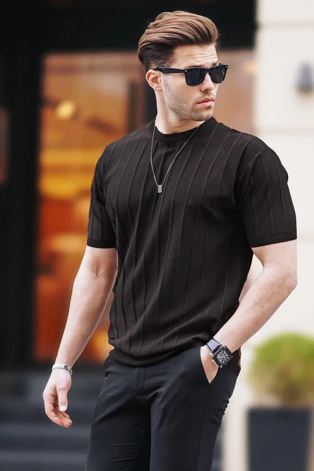 Black t-shirt that stands out with its comfortable and stylish design, ideal for daily use. - offers long-lasting comfort and durability thanks to its high-quality woven fabric - with its basic silhouette, it matches with any combination and creates a timeless style. - single jersey weave type provides comfort throughout the day with its breathable structure