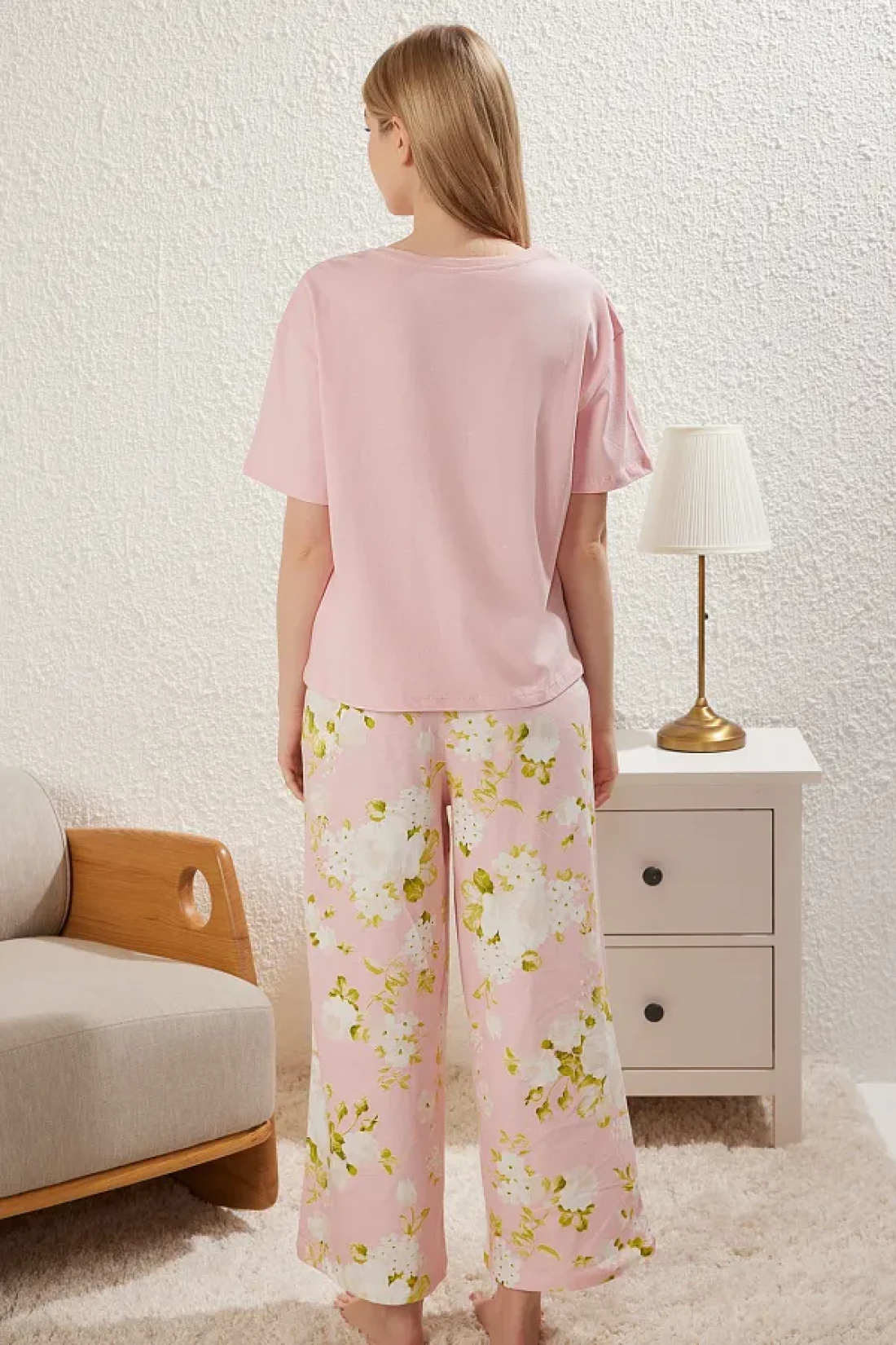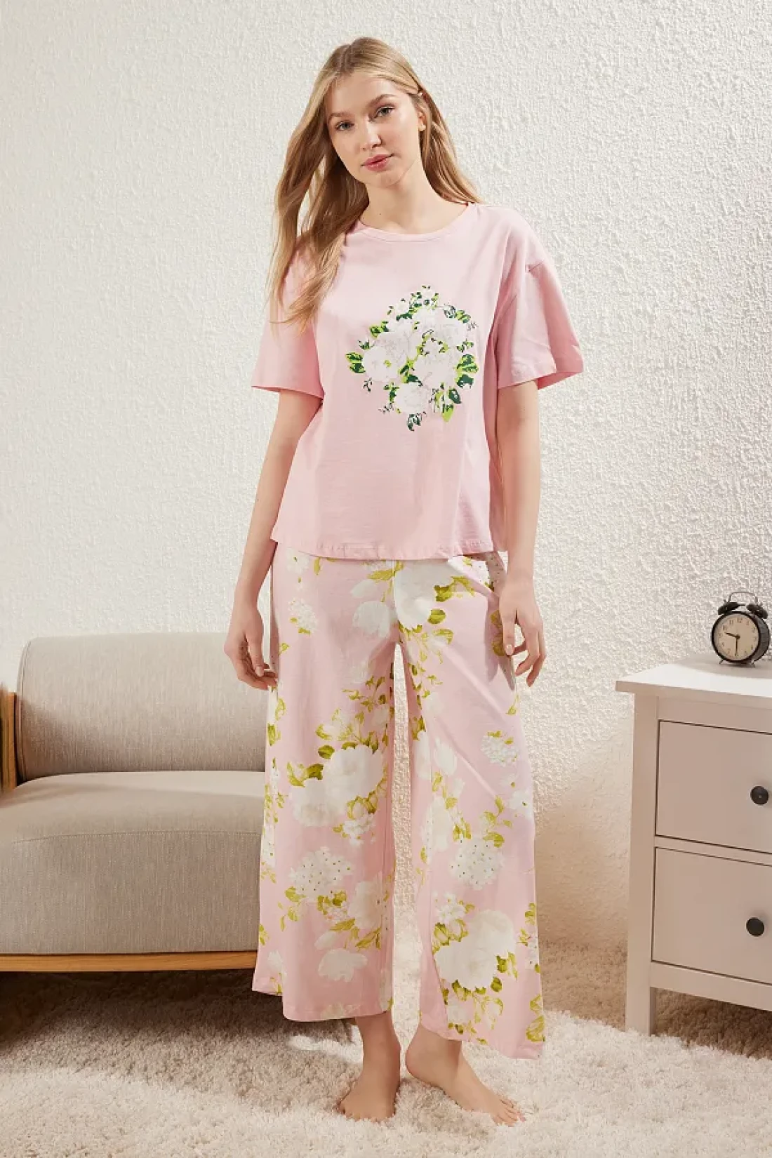 Collection Pink 100% Cotton Floral Knitted Pajamas Set Thmss25Pt00061