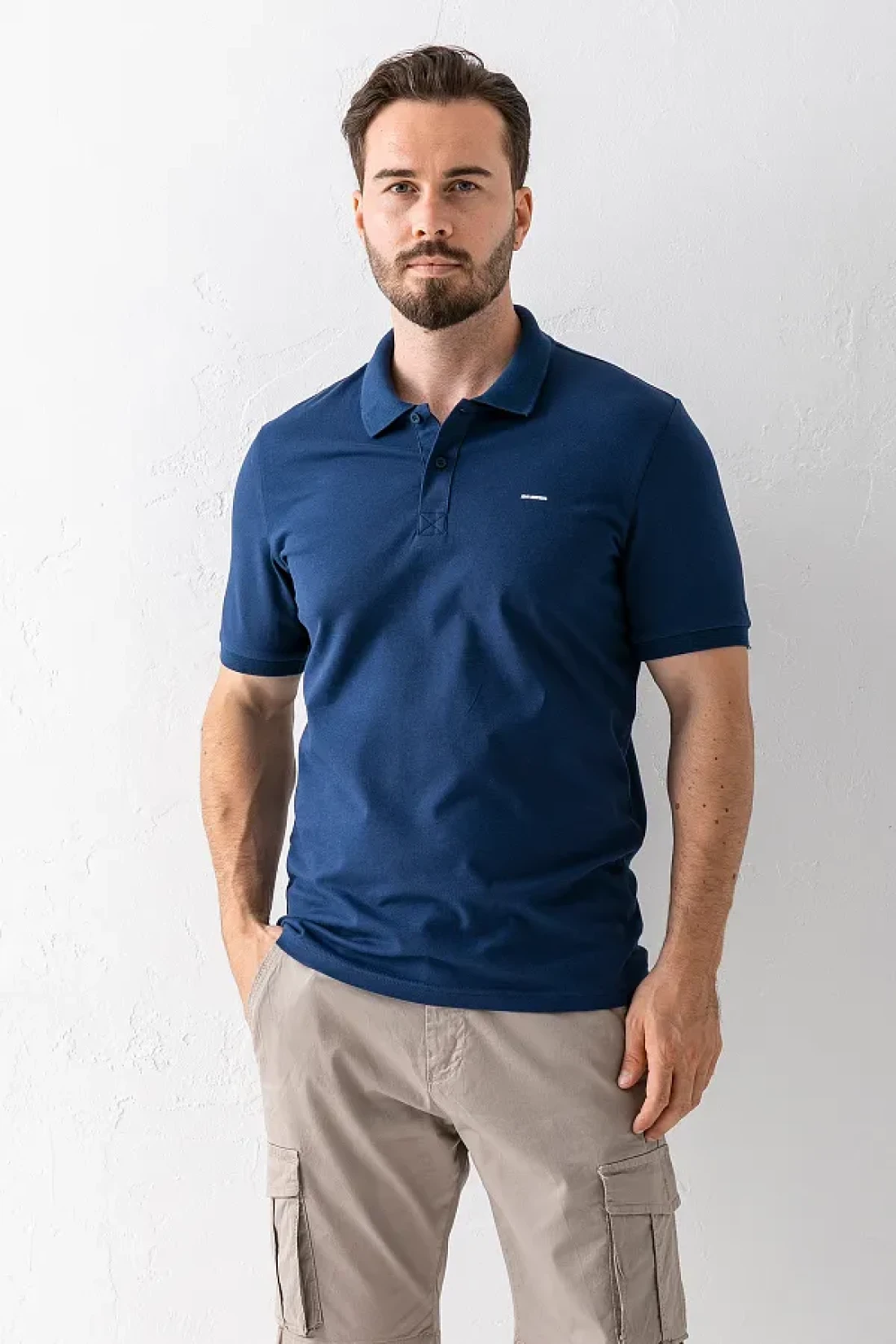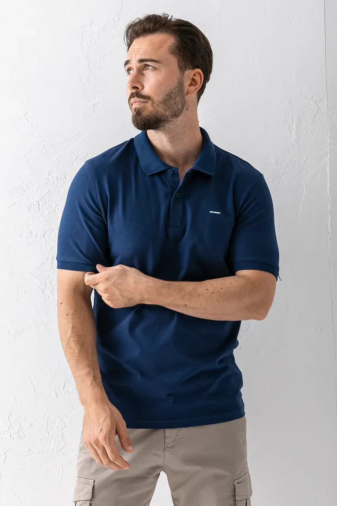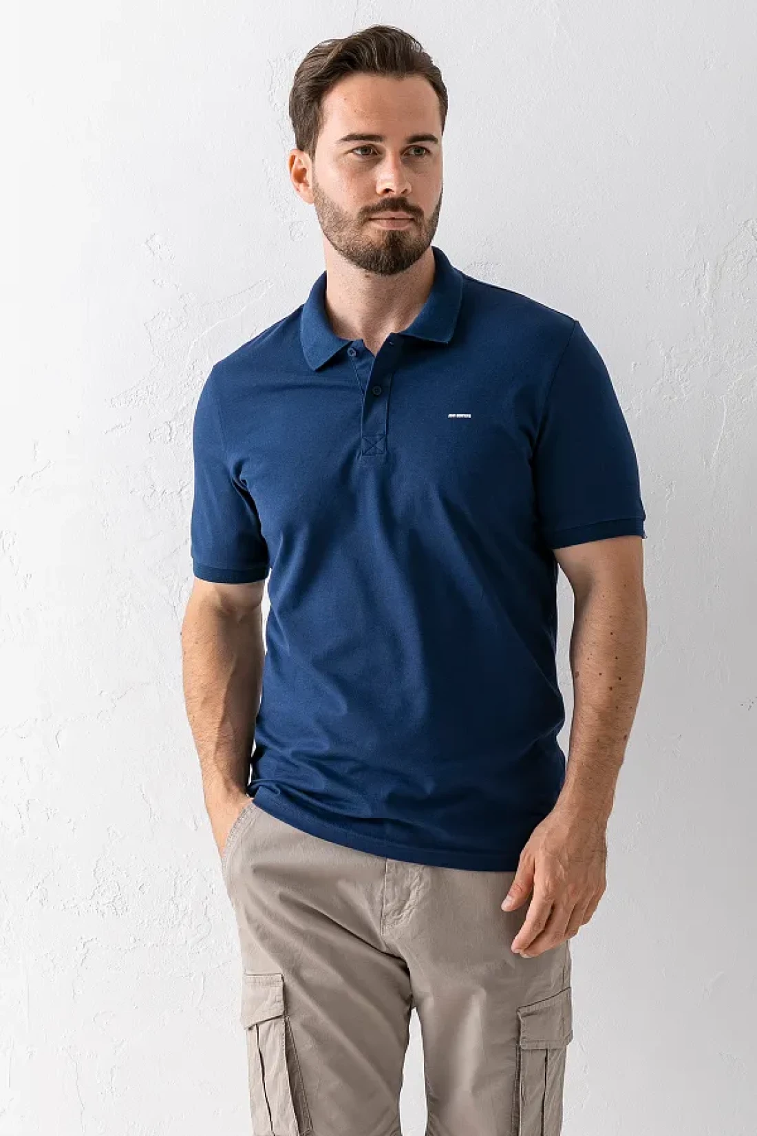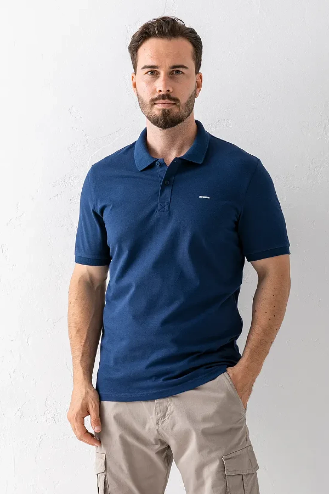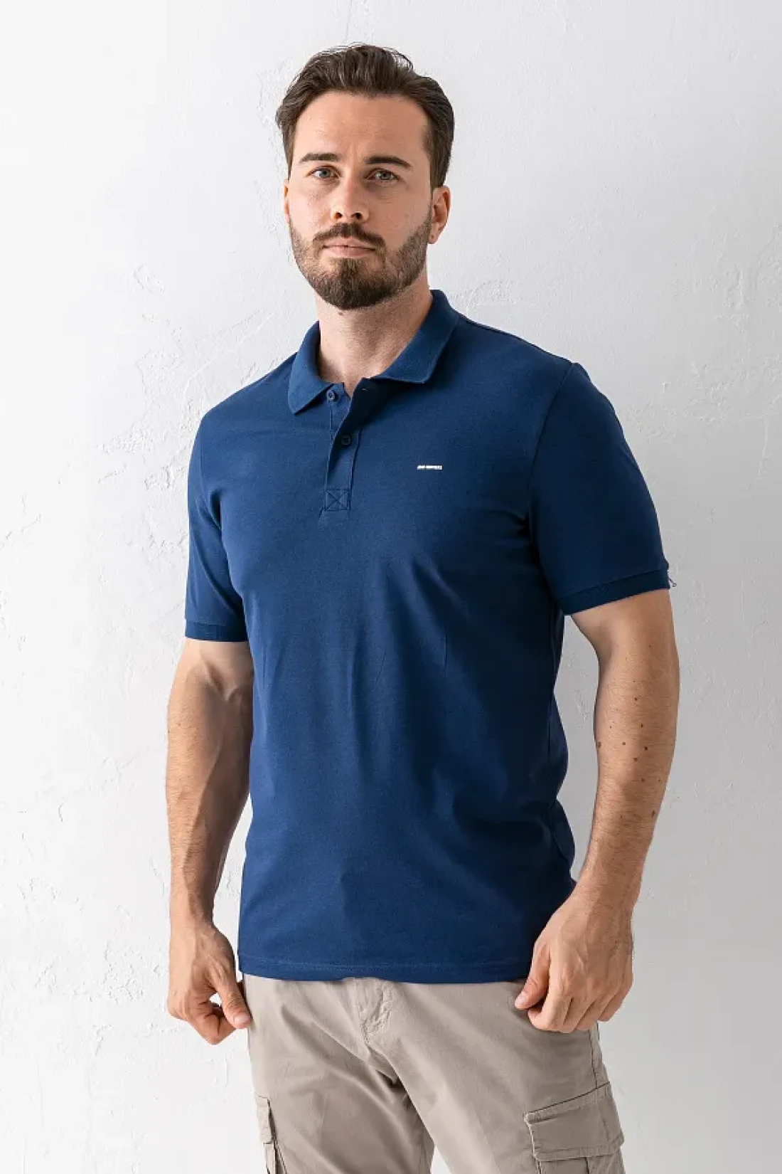 JB John Borners Men's Polo Neck Brand Printed Cotton T-Shirt Navy Blue - 25Y 2061