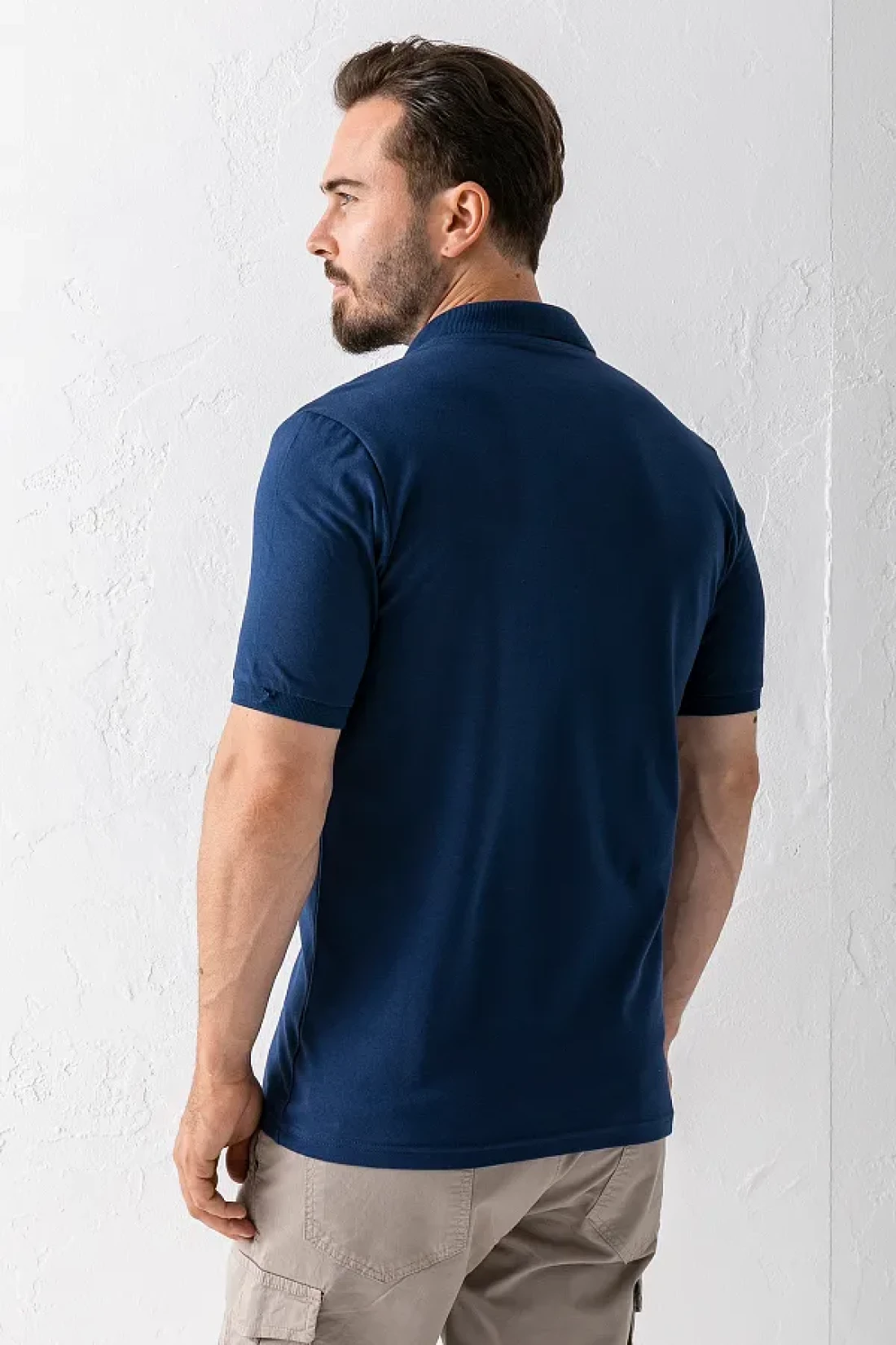 Men's Polo Neck Brand Printed Cotton T-Shirt Navy Blue - 25Y 2061