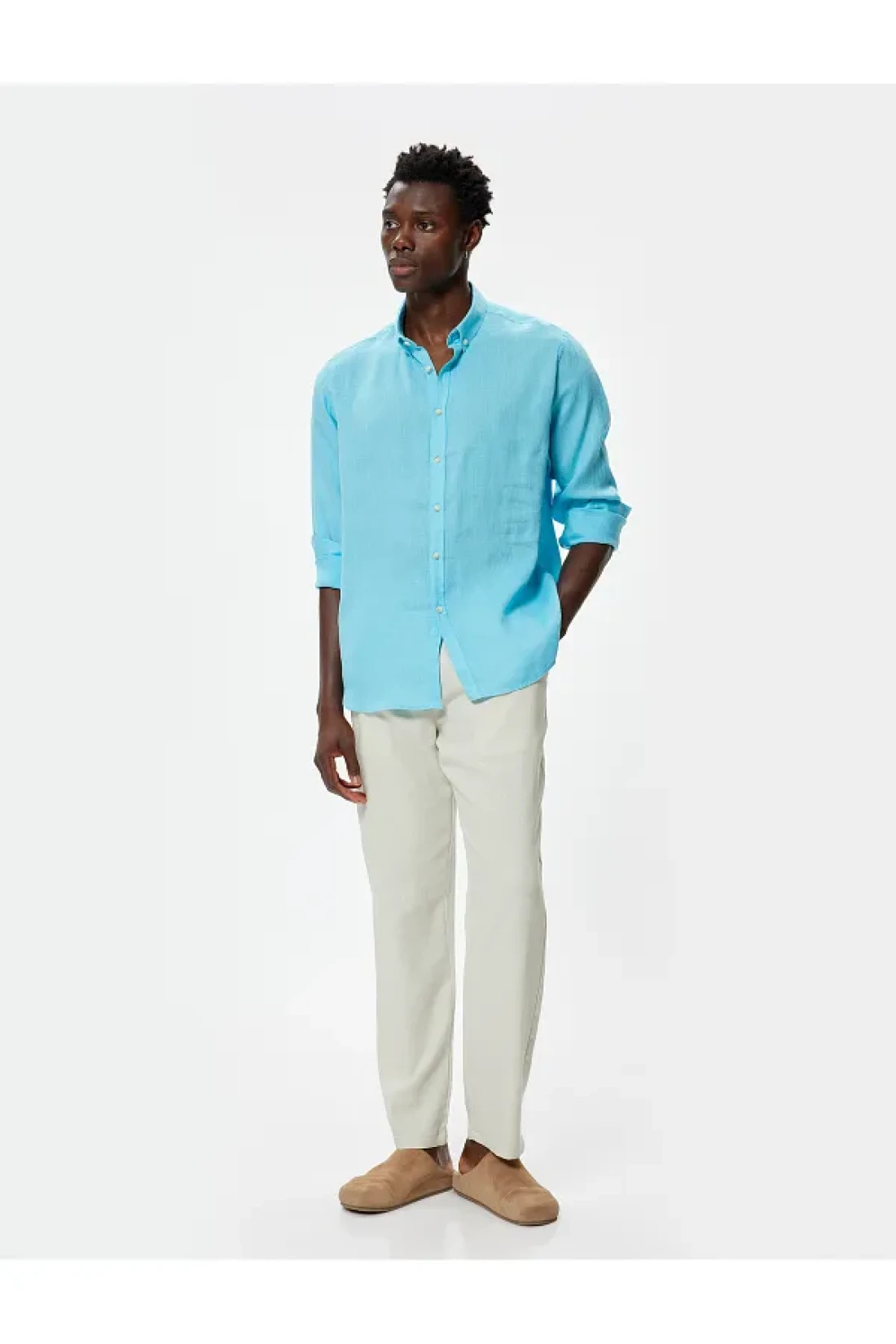 Complete your office or street style with a classic, button-down, linen shirt.