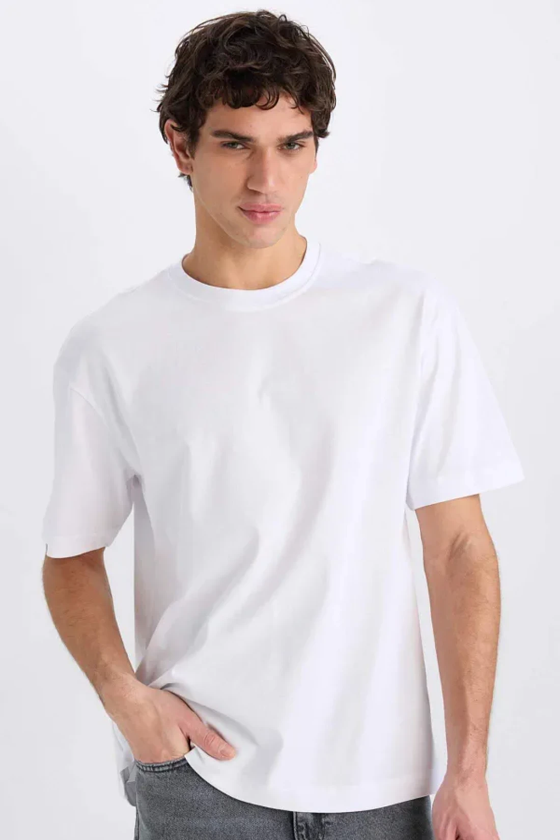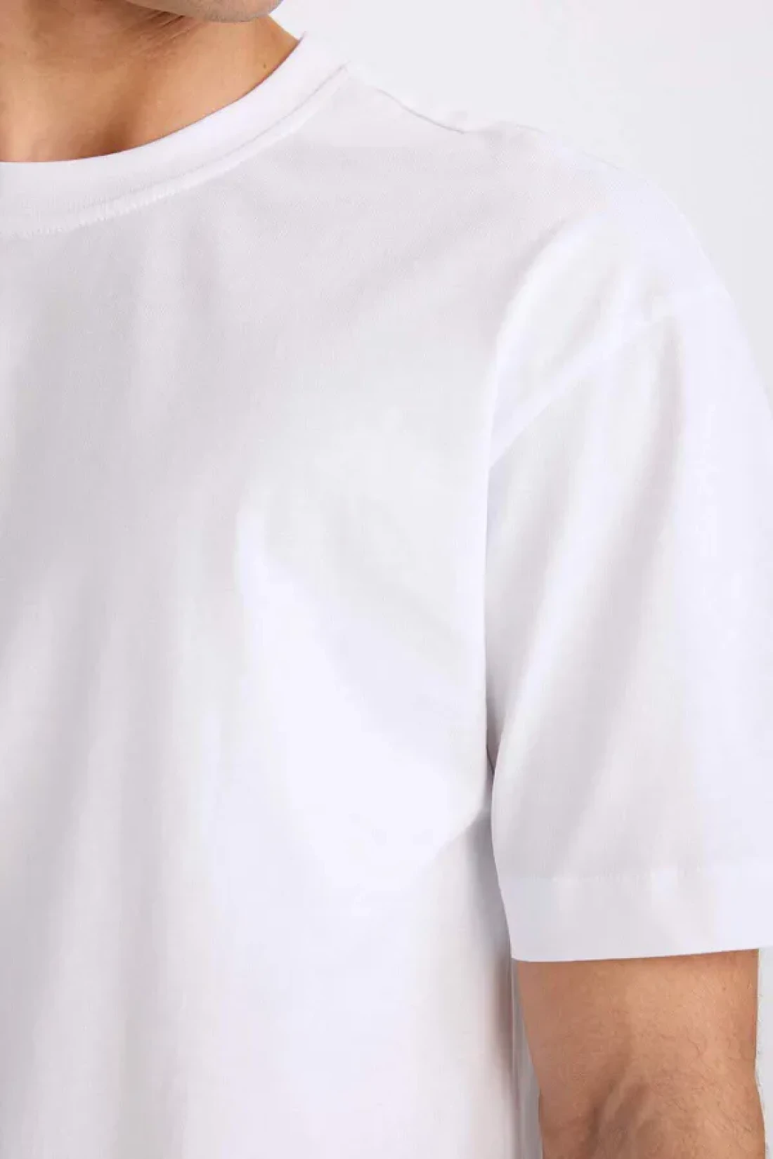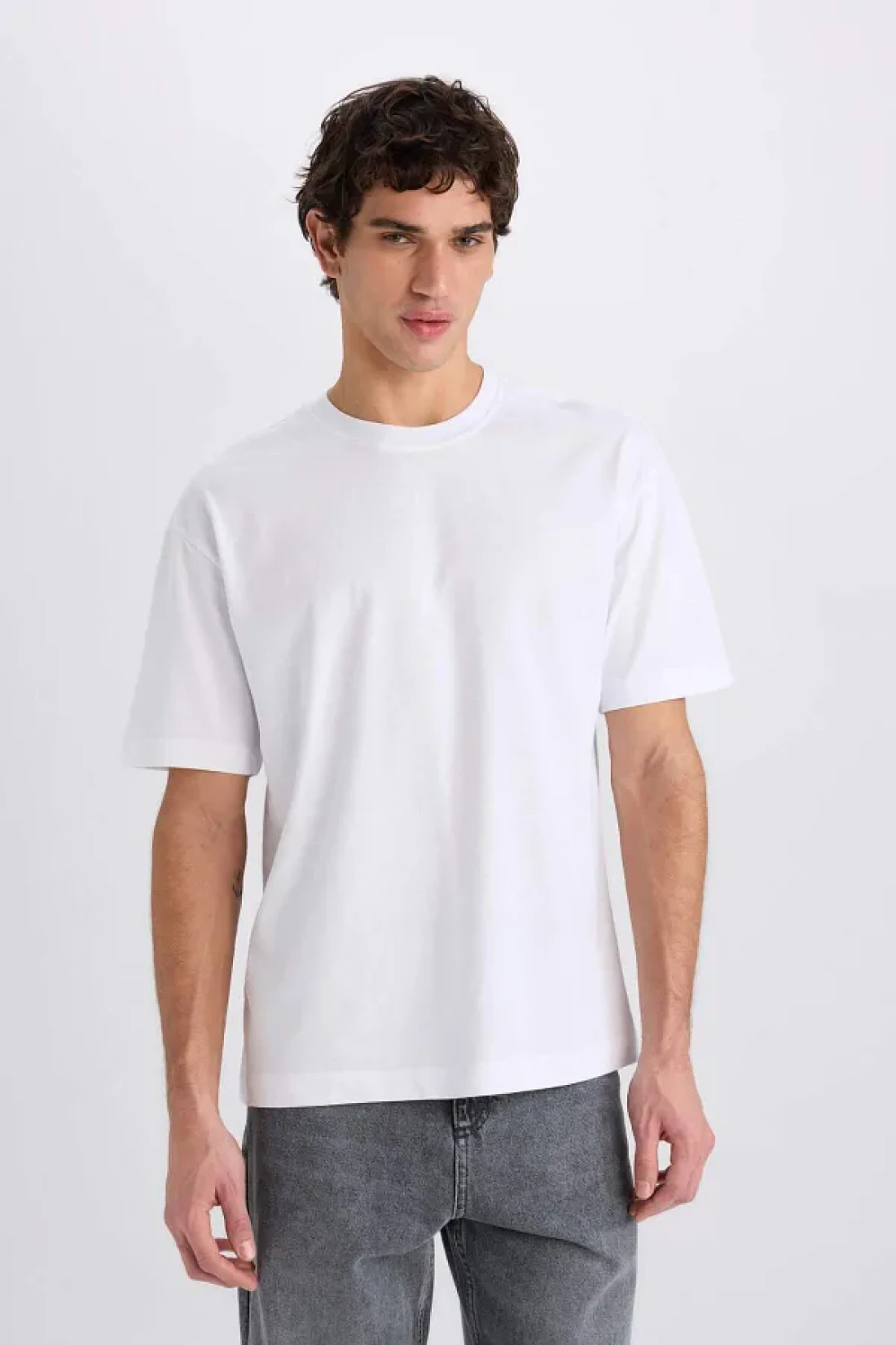Defacto Oversize Wide Fit Crew Neck Basic Plain Short Sleeve White T-Shirt E6885Axns