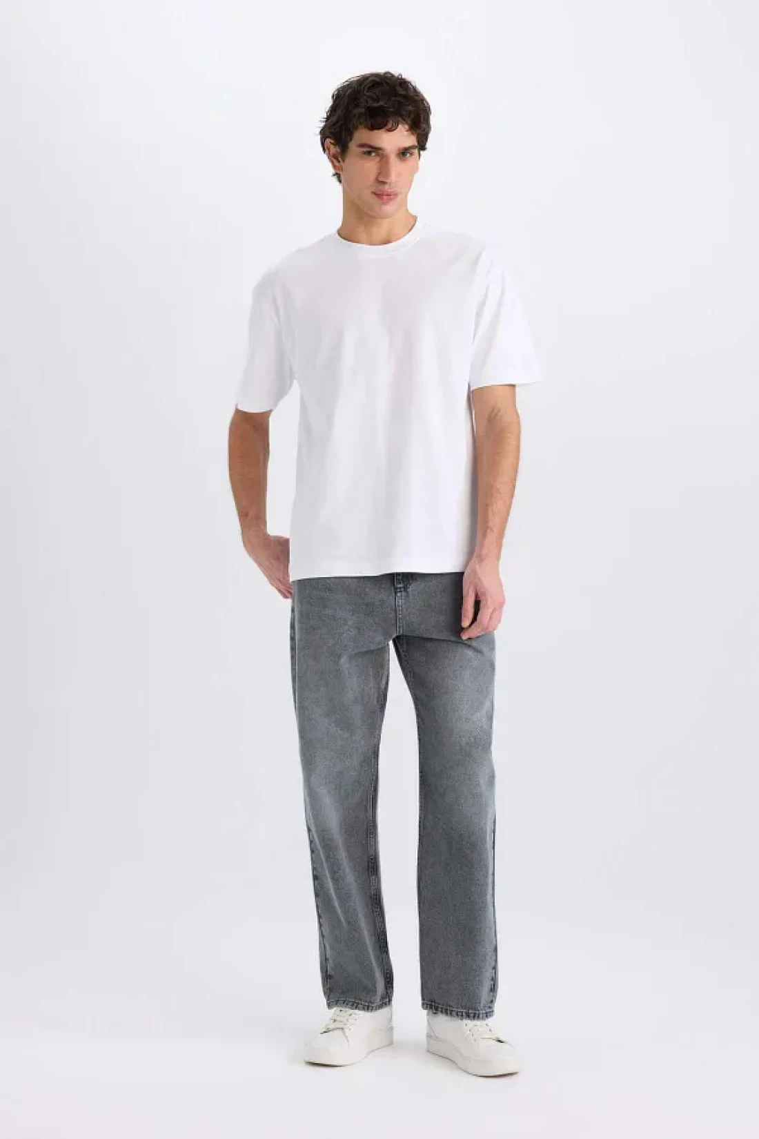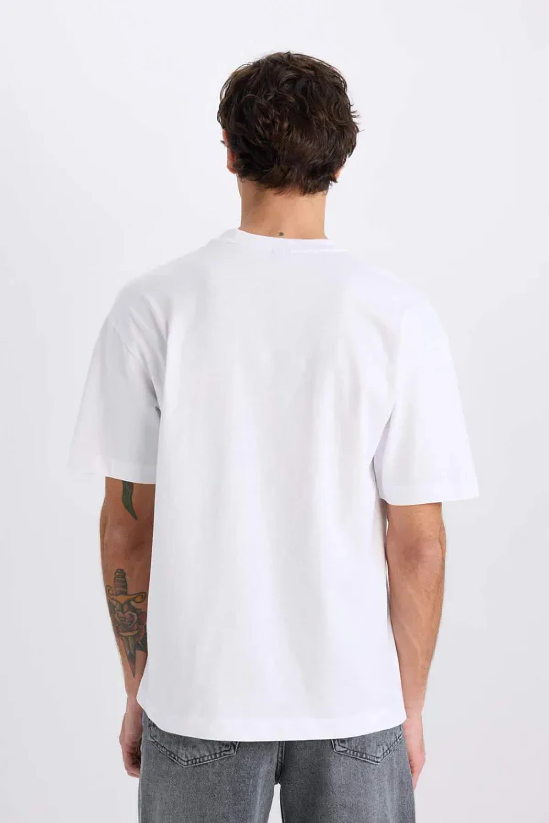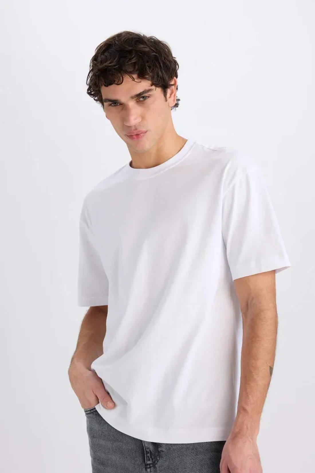 Defacto Oversize Wide Fit Crew Neck Basic Plain Short Sleeve White T-Shirt E6885Axns
