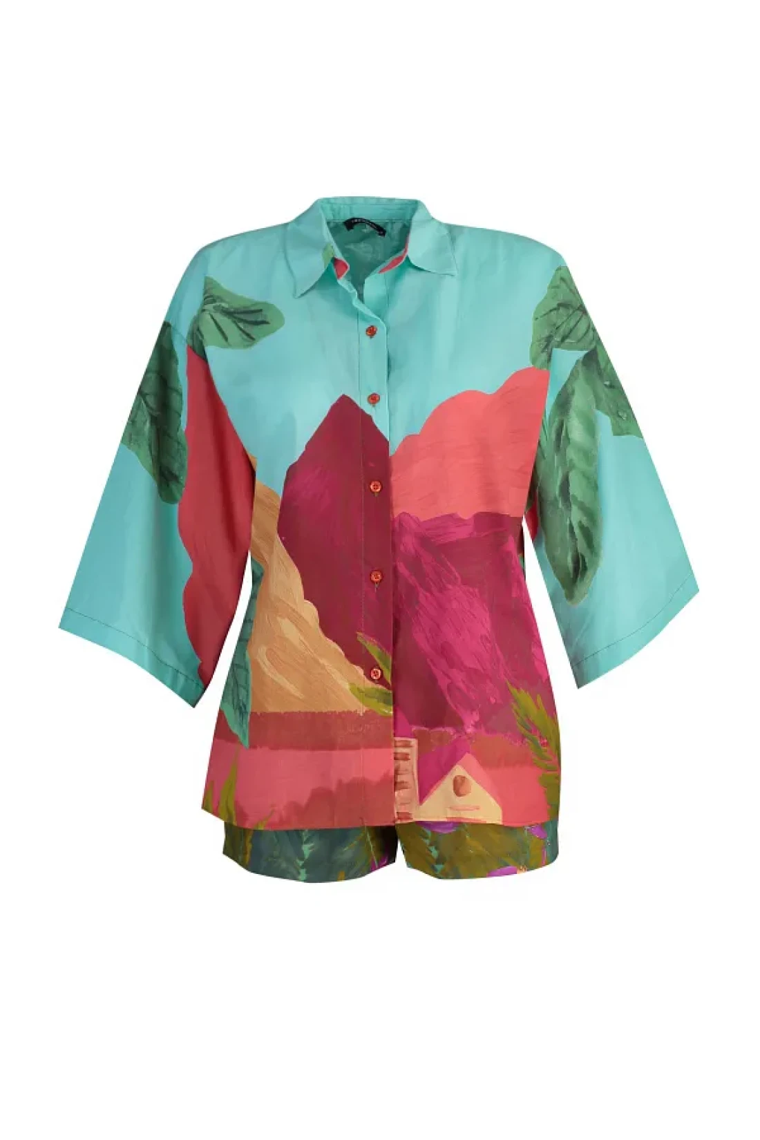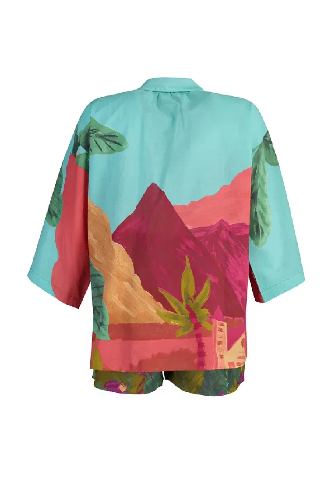 Collection Cotton Landscape Print Shirt and Shorts Beach Set - Tbess22Au0040