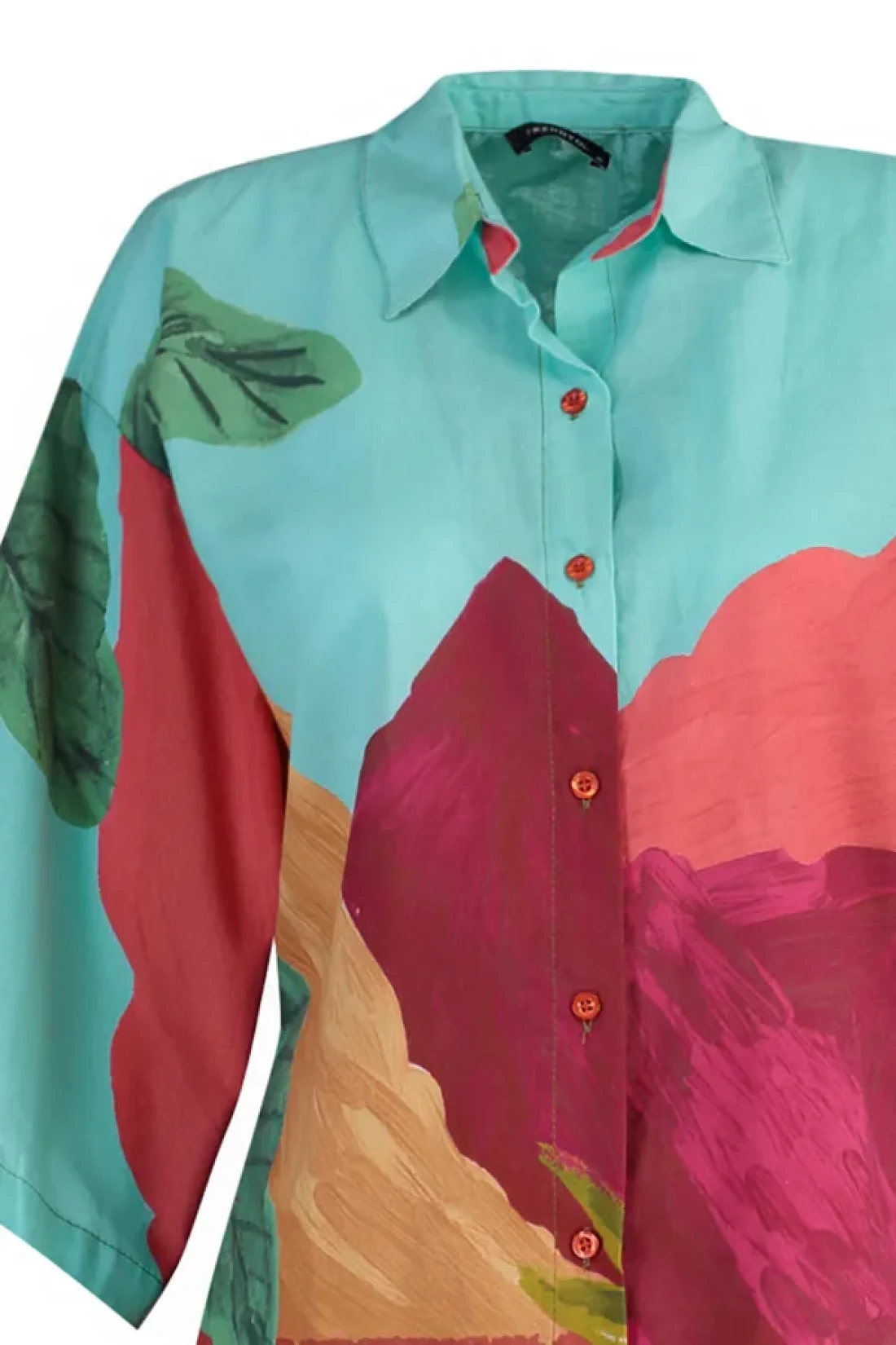 Ideal for daily use with its oversize silhouette that offers comfortable and free movement. Stylish and modern design that attracts attention with its natural landscape patterns Voile weave type, provides a light and soft touch feeling