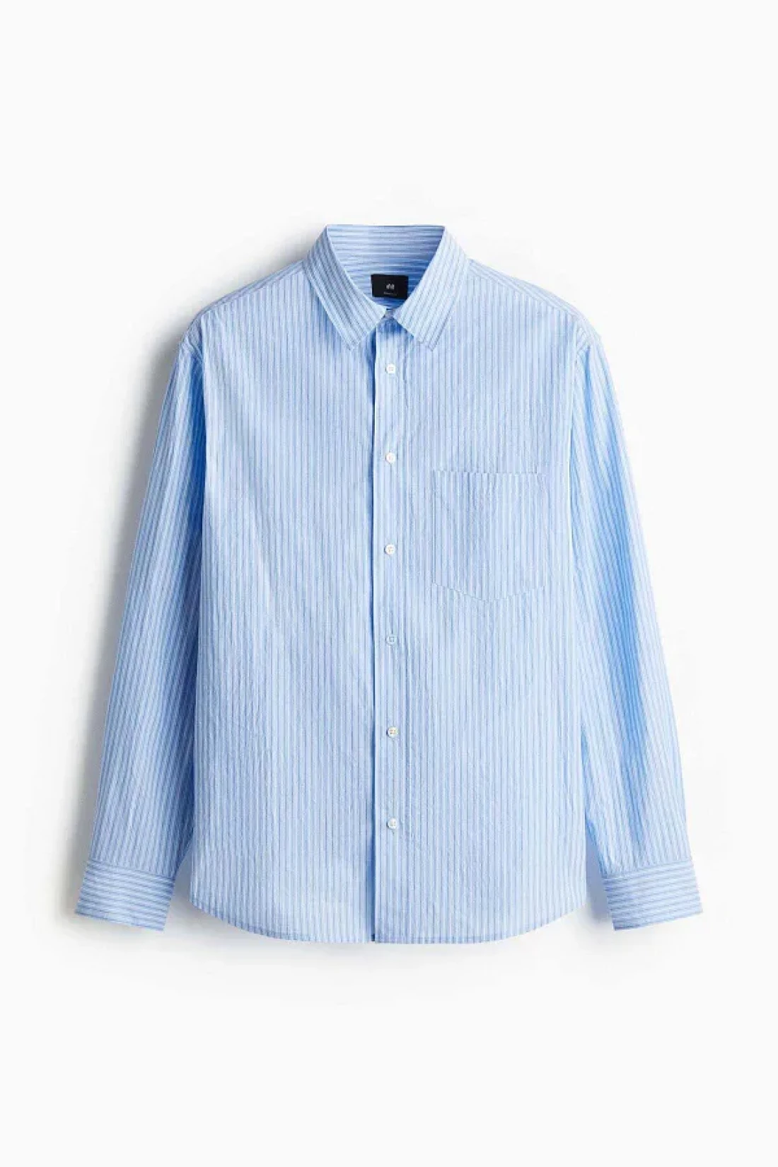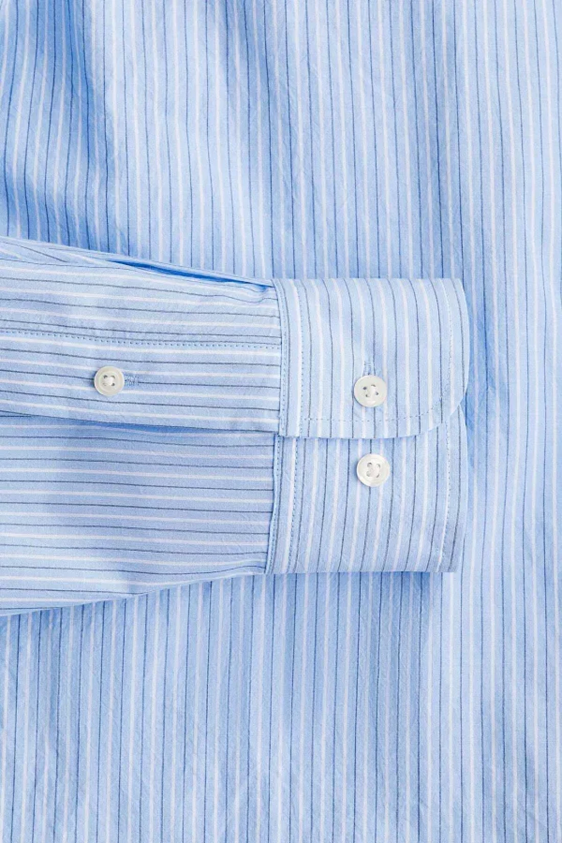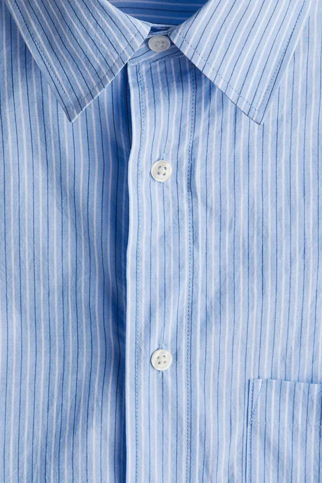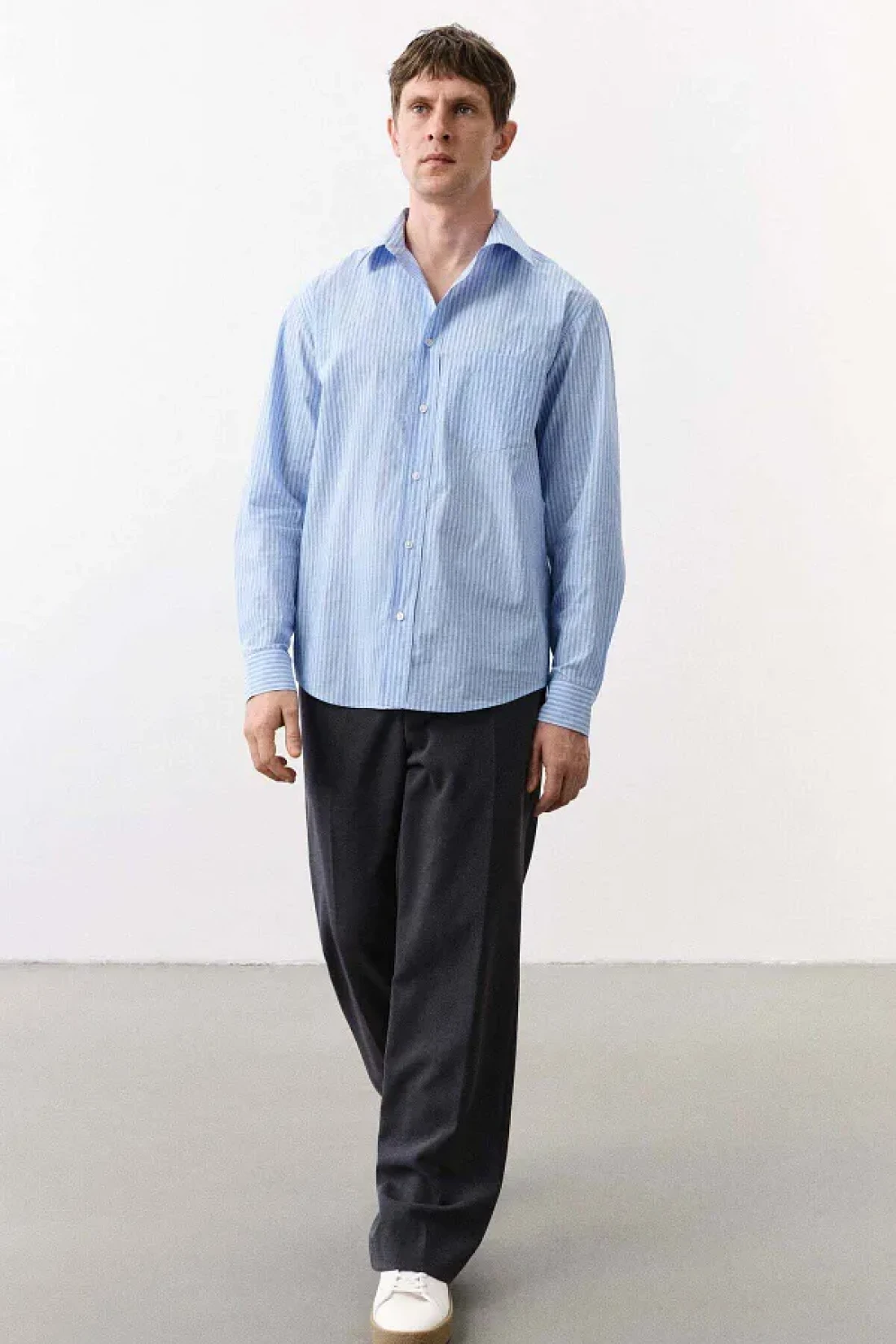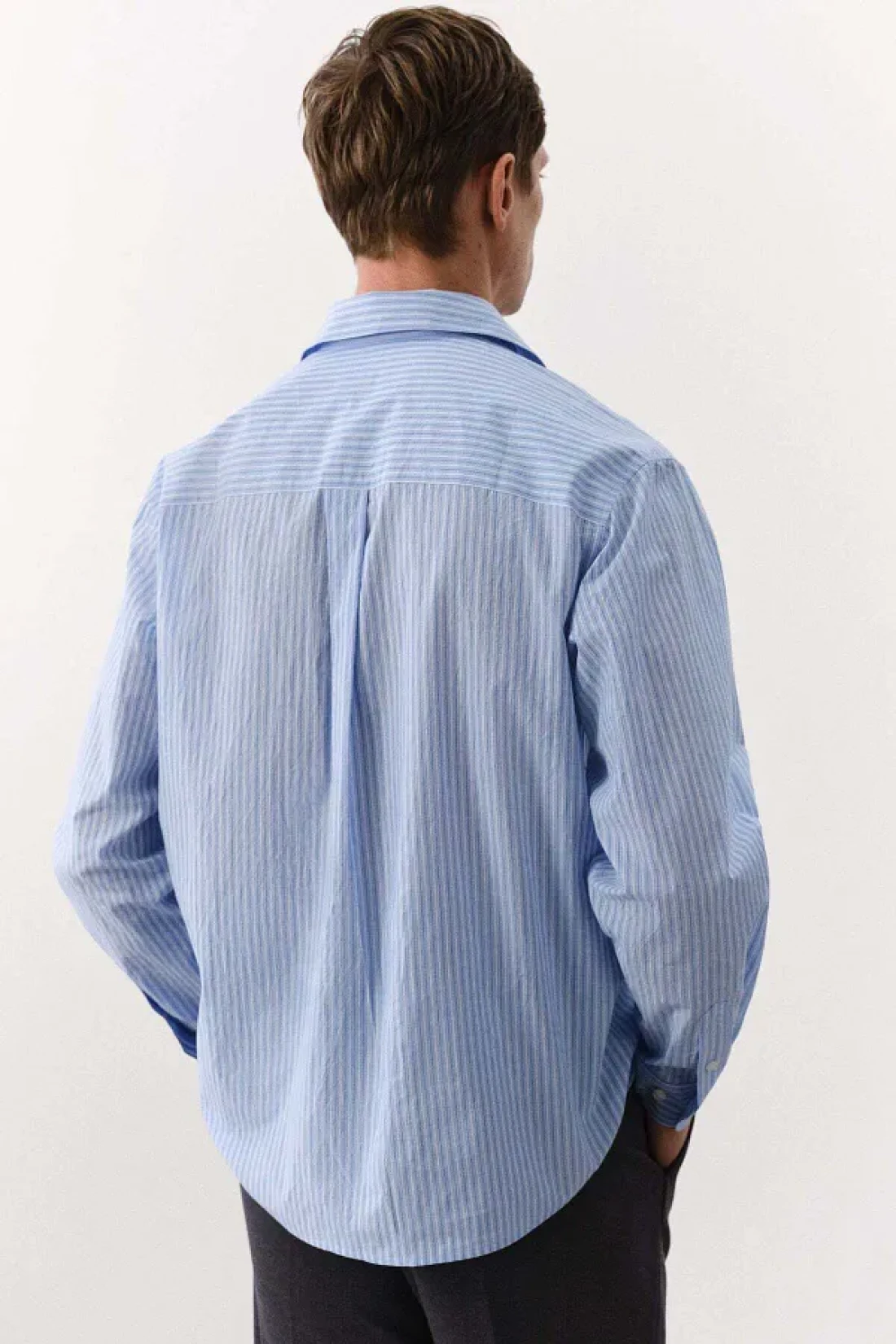 Shirt in cotton poplin with a turn-down collar, classic front and a yoke with a box pleat at the back.