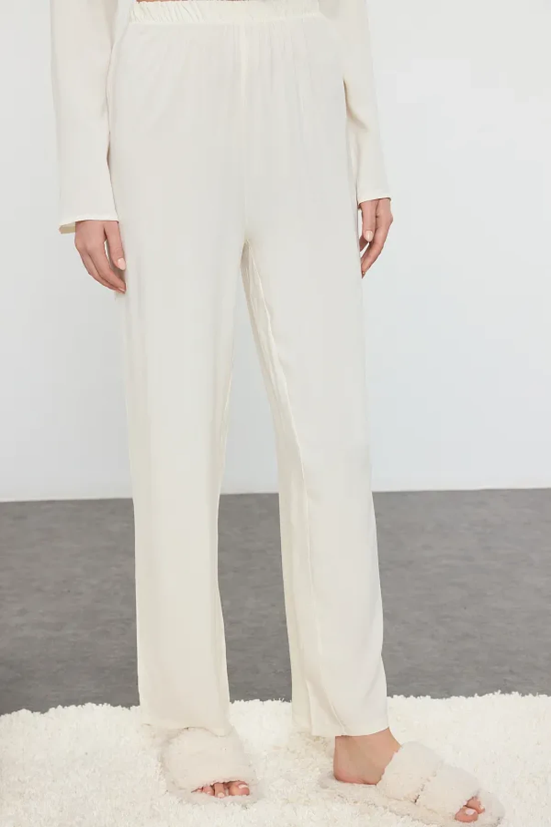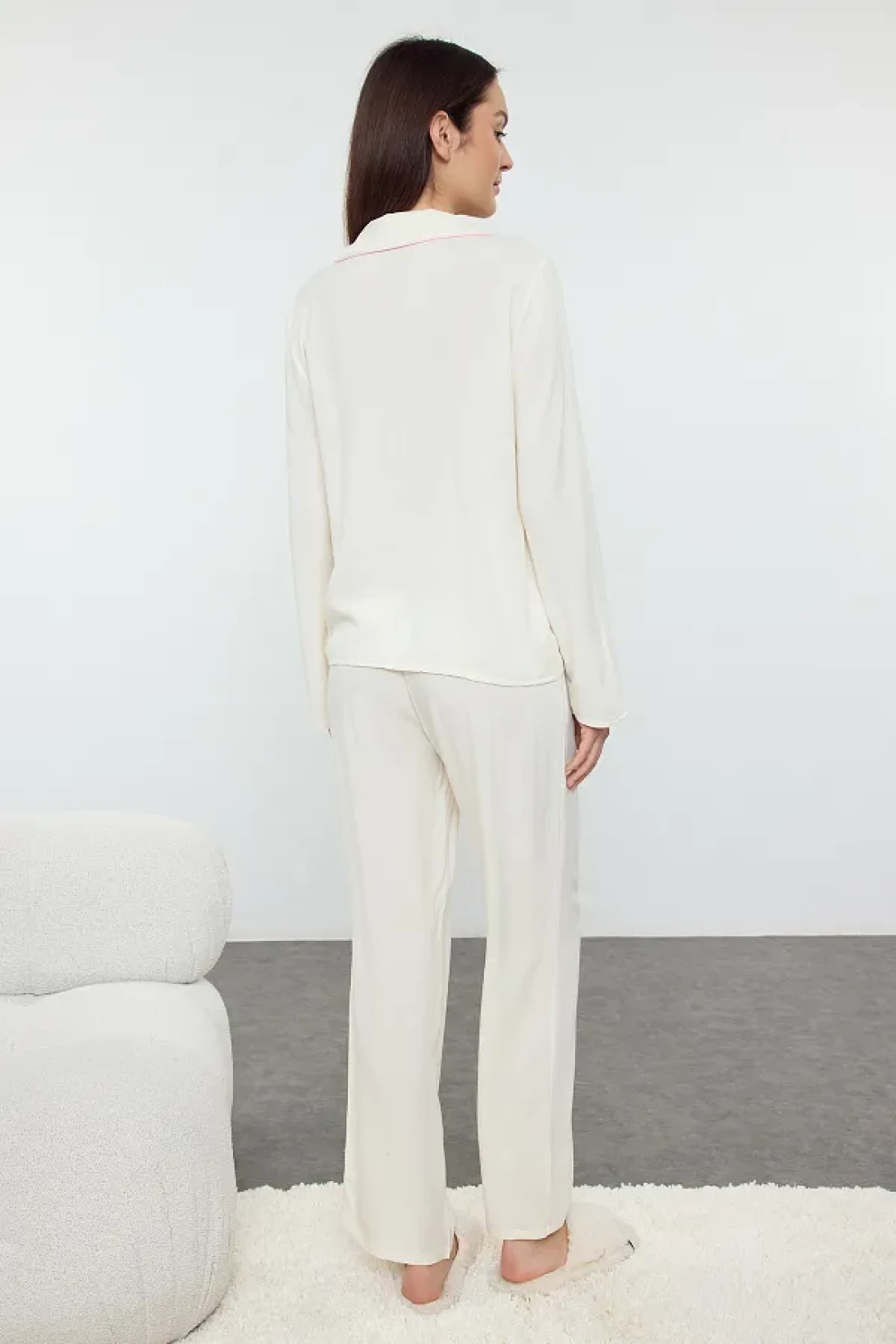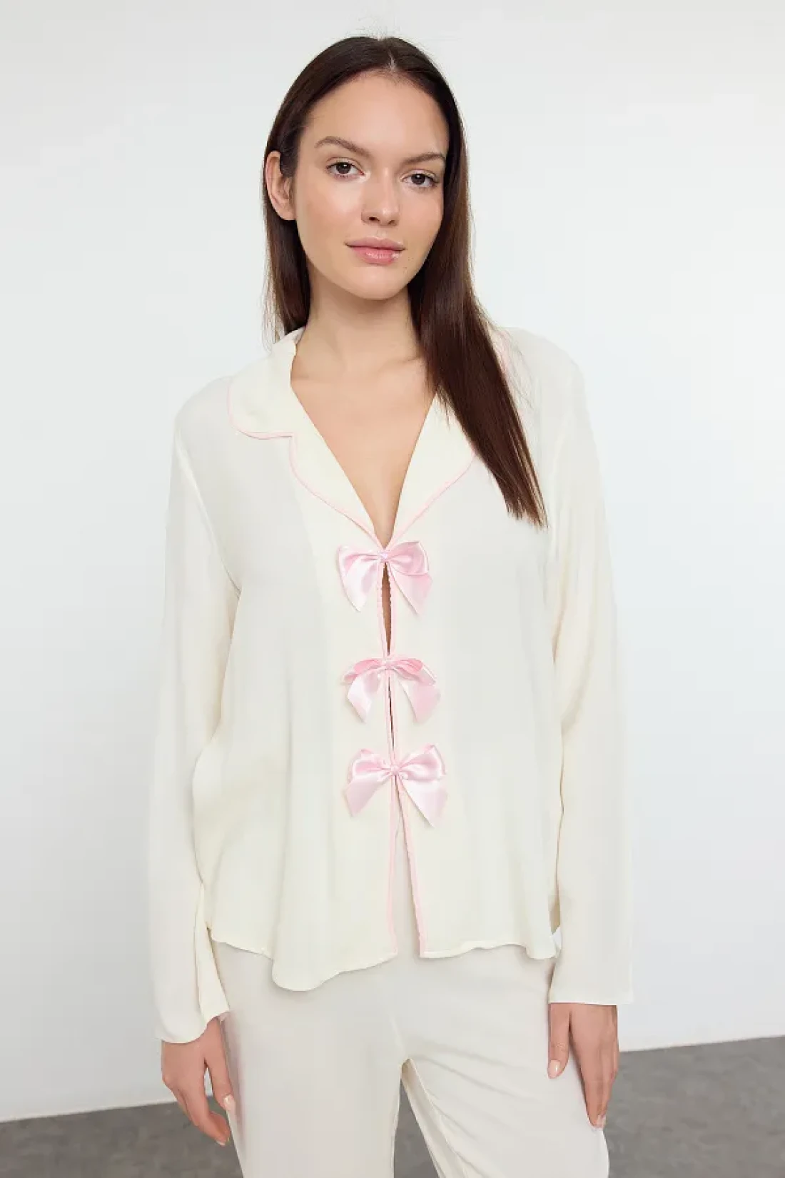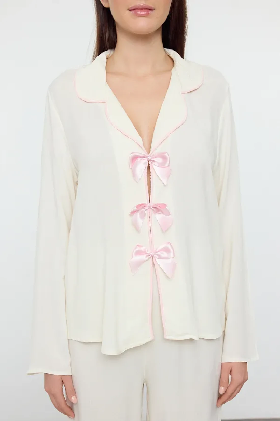 Collection Viscose Pajama Set - Ecru Ribbon, Bow and Piping Detail Thmaw25pt00032