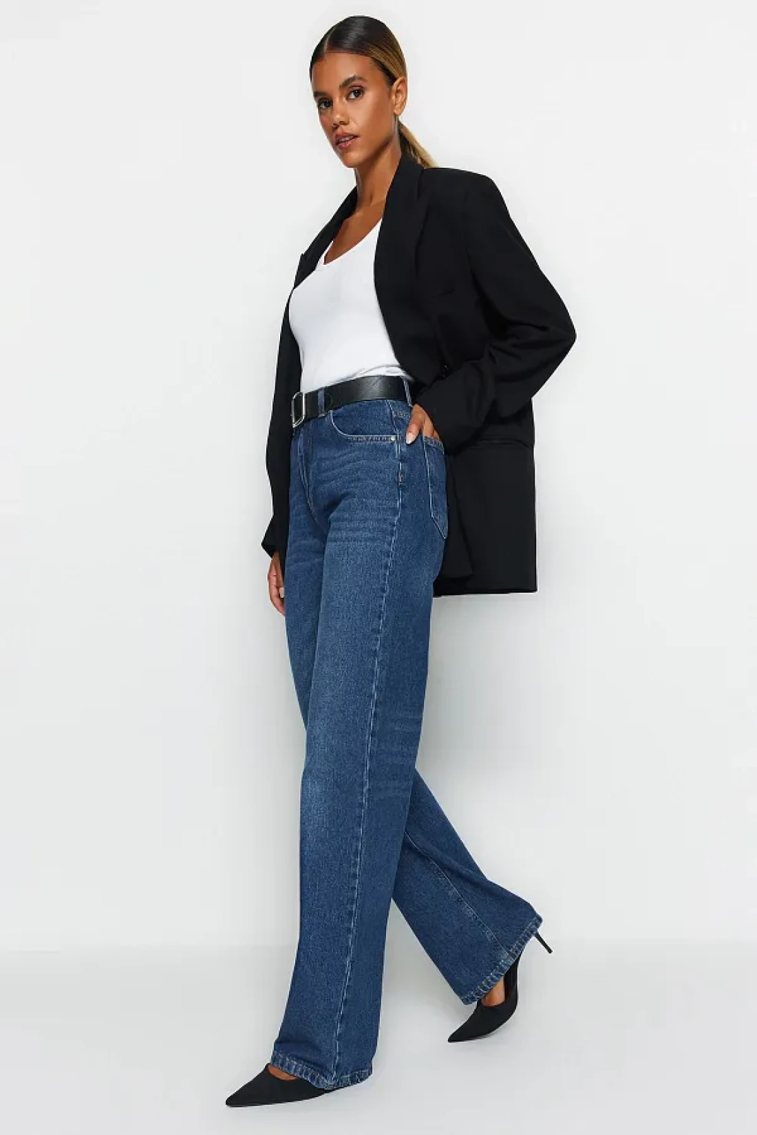 Collection Dark Blue High Waist Wide Leg Wide Leg Jeans Twoaw24Je00074